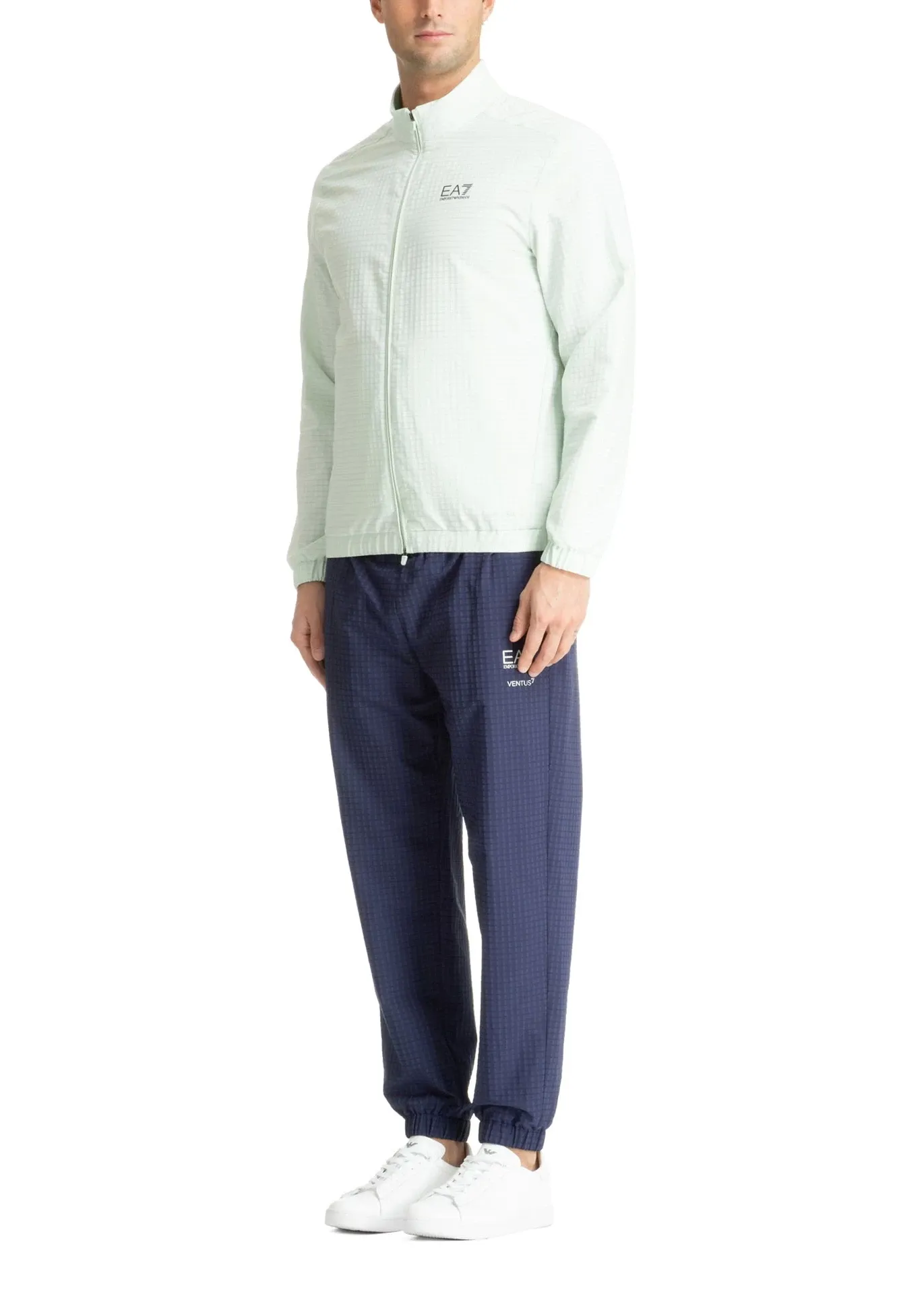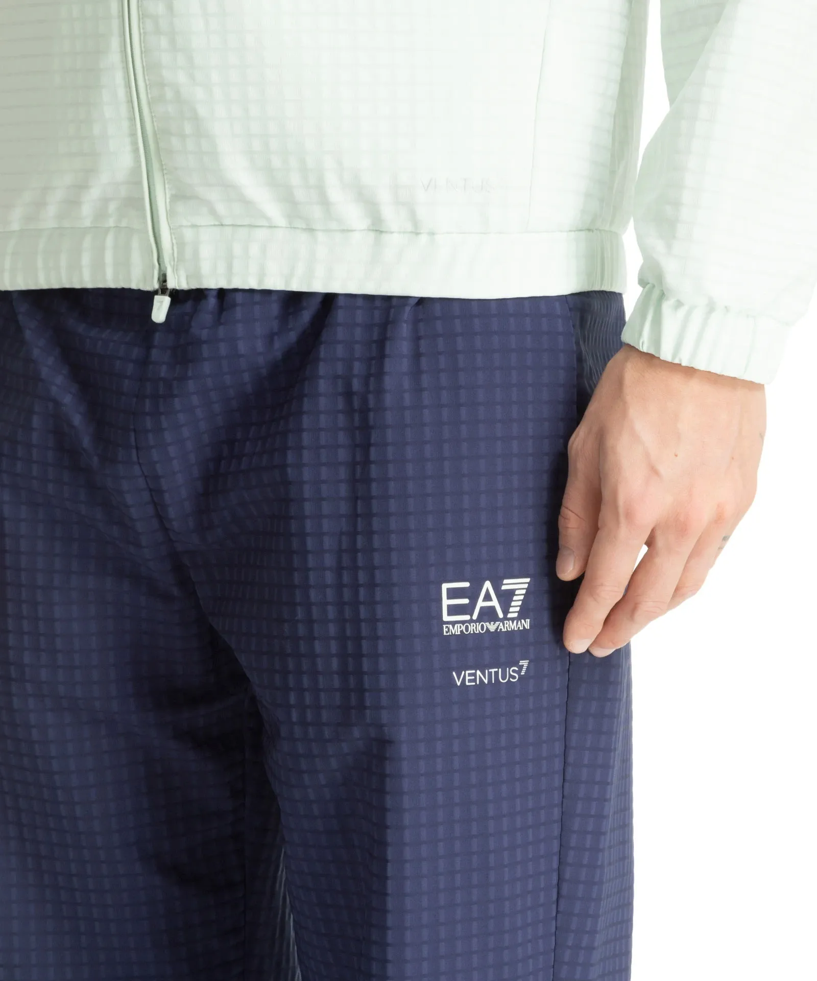 Мужской спортивный костюм EA7 обеспечивает отличную вентиляцию и поддерживает оптимальную температуру тела благодаря воздухопроницаемой технической ткани VENTUS7, что делает его идеальным для тренировок.