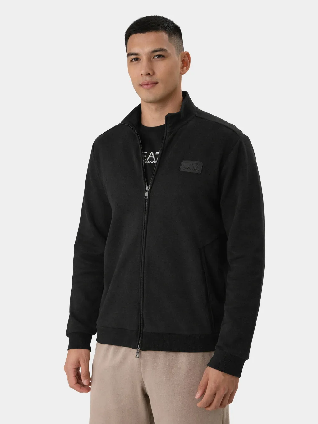 Мужская спортивная толстовка в лаконичном стиле подойдёт для тренировок и повседневных образов. Модель без капюшона застёгивается на молнию и украшена фирменной нашивкой на груди. Воротник-стойка, эластичные манжеты и подол формируют аккуратную и комфортную посадку. Боковые карманы дополняют дизайн.
