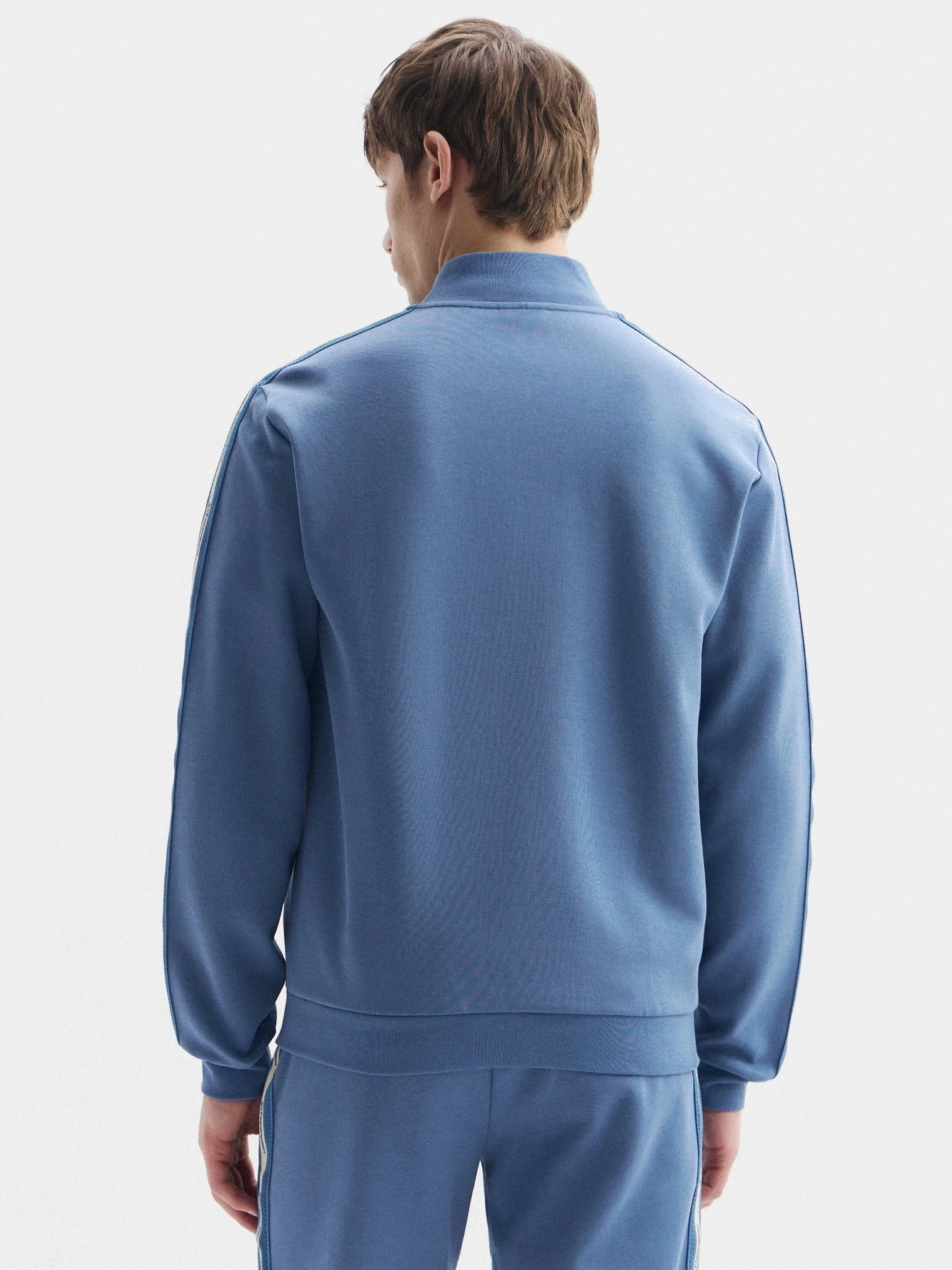 Мужская спортивная толстовка на молнии с воротником-стойкой. Фирменные лампасы на рукавах и нашивка бренда на груди. Карманы кенгуру. Подходит для тренировок и повседневной носки. Дополните спортивными брюками из коллекции для создания единого комплекта.