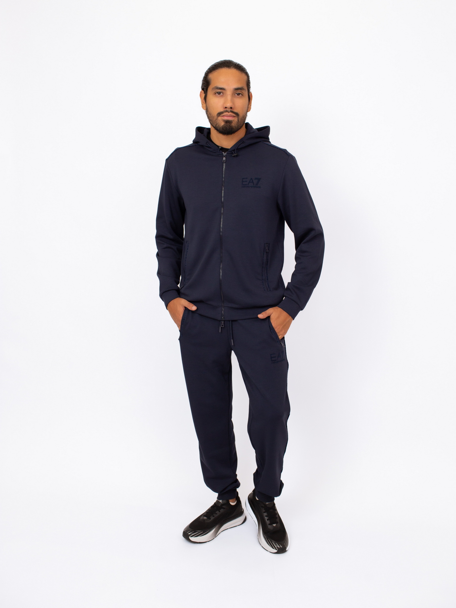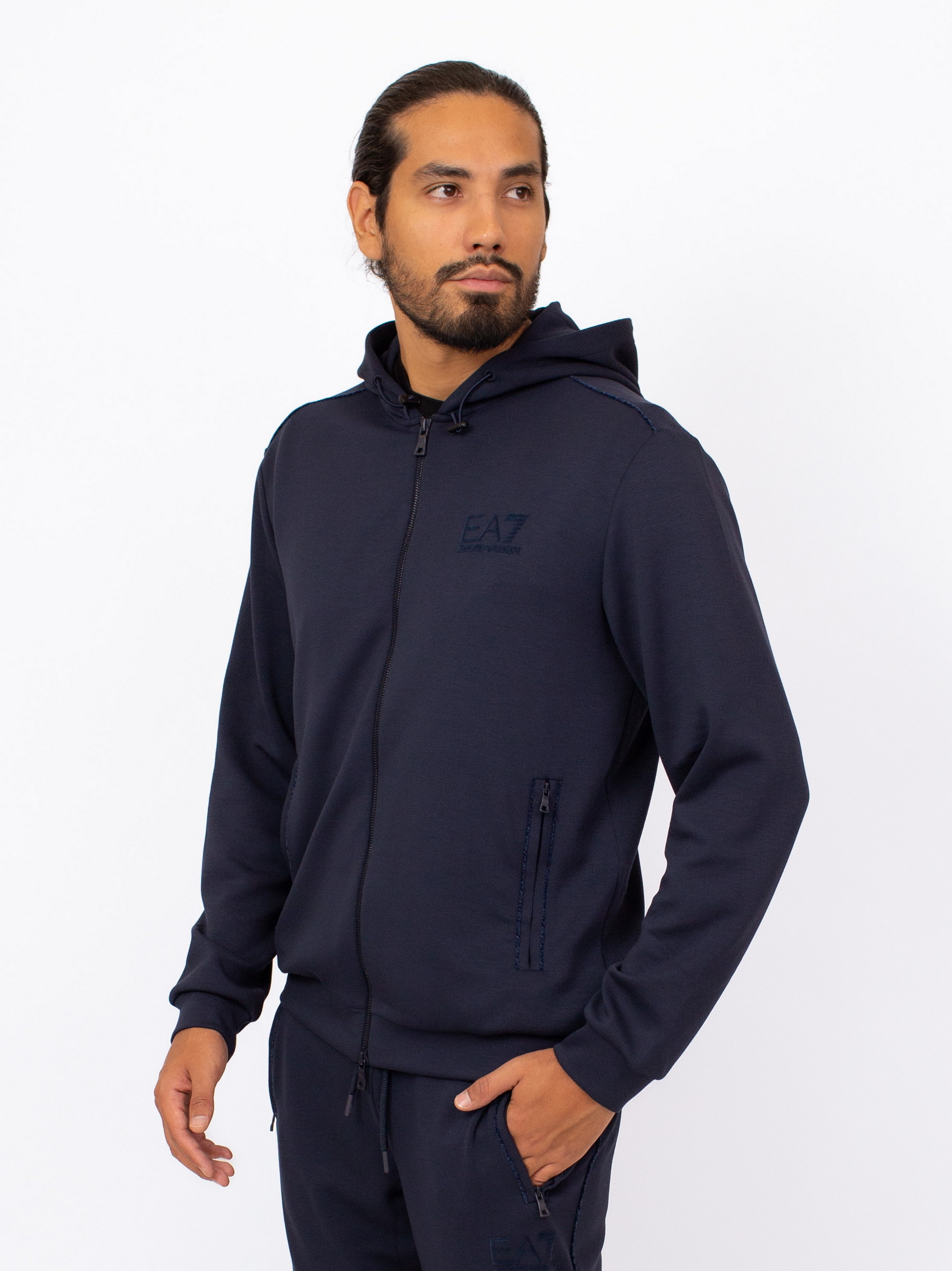 Мужская спортивная толстовка с капюшоном EA7 Emporio Armani темно-синего цвета — стильная и функциональная модель прямого кроя, которая идеально сочетается с брюками из коллекции LUX IDENTITY. Изготовлена из смеси полиэстера, модала и эластана, застёгивается на молнию и дополнена удобными боковыми карманами. Отличный выбор для тренировок и активного отдыха.