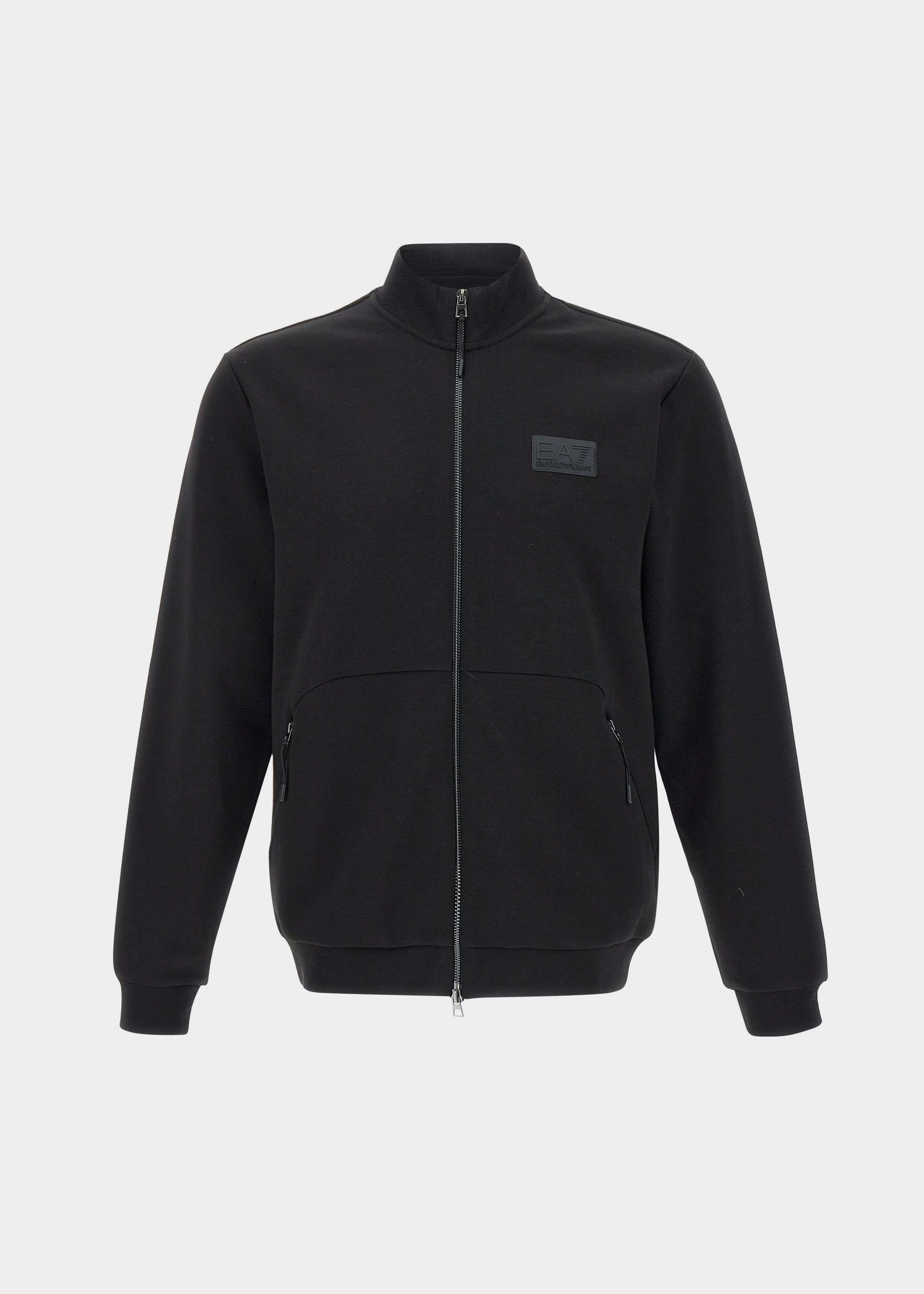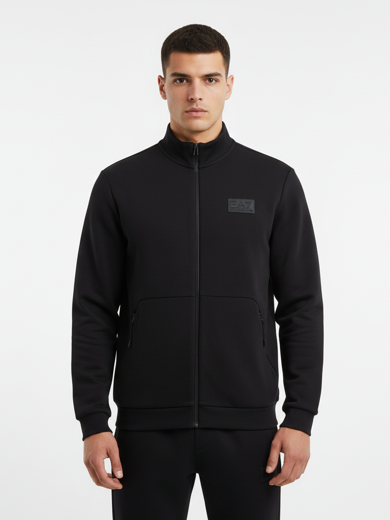 Мужская толстовка на молнии EA7 черного цвета, выполнена из смесового хлопка. Украшена нашивкой с логотипом EA7 на груди, оснащена боковыми карманами на молнии. Идеально подходит как для занятий спортом, так и для создания повседневных непринужденных образов.