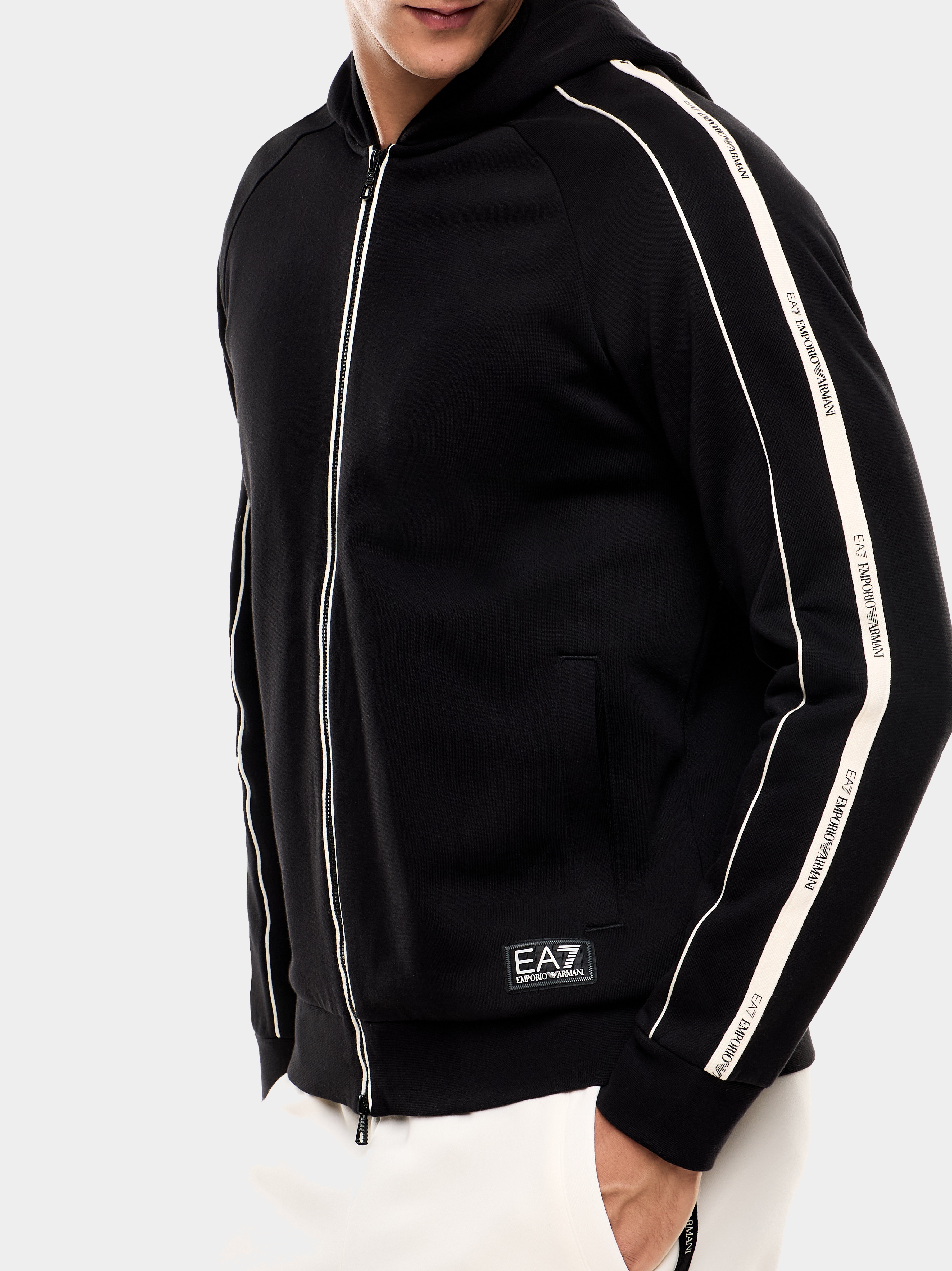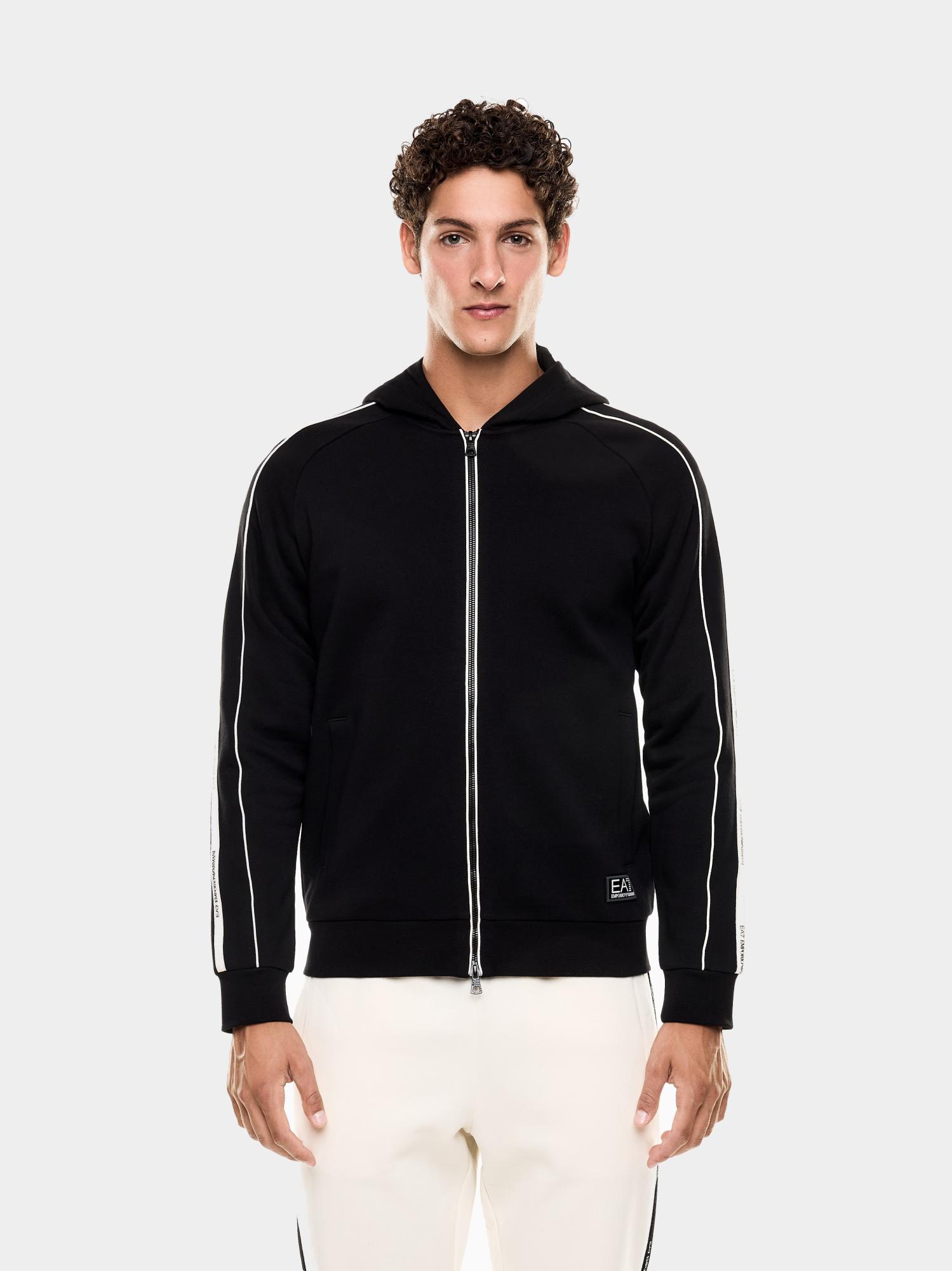 Мужская спортивная толстовка с капюшоном из мягкой смесовой ткани с хлопком. Прямой крой, логотипы на плечах и груди, два боковых кармана. Комфортная и универсальная модель для активного отдыха и повседневных городских образов.