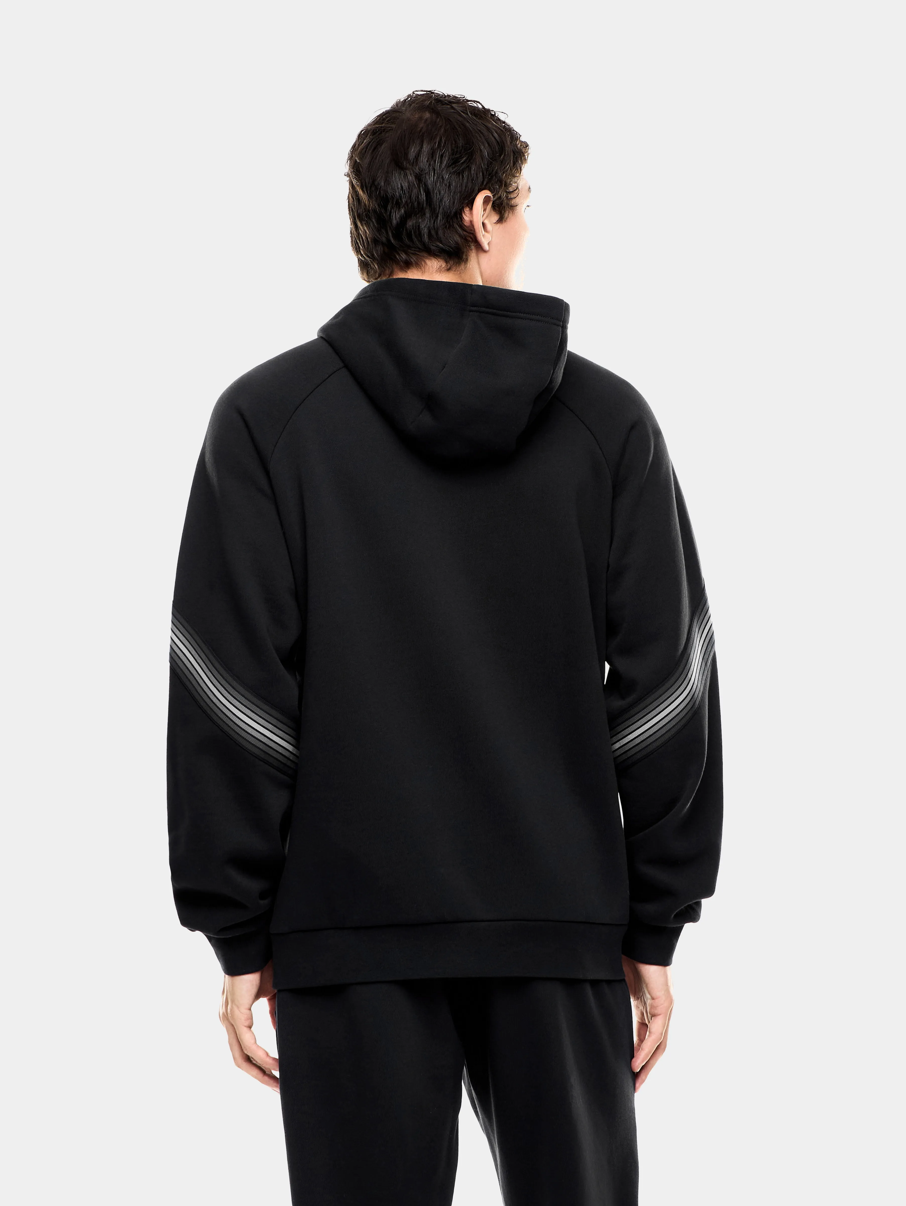 Мужская толстовка с капюшоном 7 Lines из смесового хлопка. Свободный крой, рукава реглан, эластичные манжеты и застёжка на молнию обеспечивают комфорт и свободу движений. Контрастный логотип и фирменная лента с семью полосами на рукавах подчёркивают спортивный стиль бренда. Модель дополнена боковыми карманами.