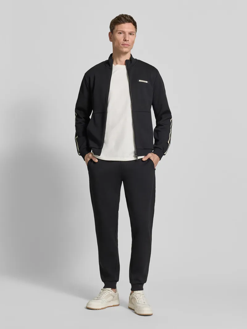 Мужская спортивная толстовка на молнии с воротником-стойкой. Фирменные лампасы на рукавах и нашивка бренда на груди. Карманы кенгуру. Подходит для тренировок и повседневной носки. Дополните спортивными брюками из коллекции для создания единого комплекта.