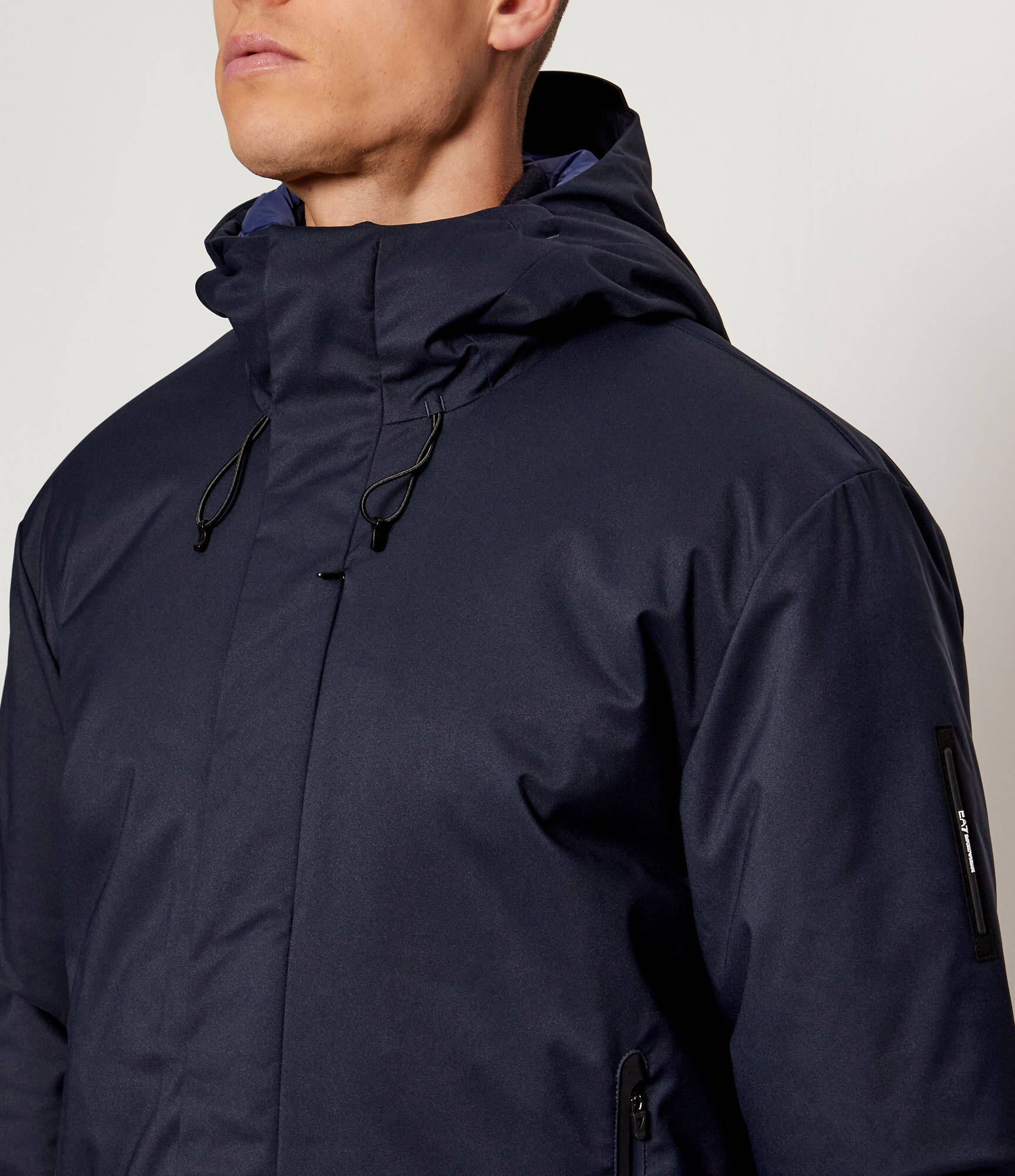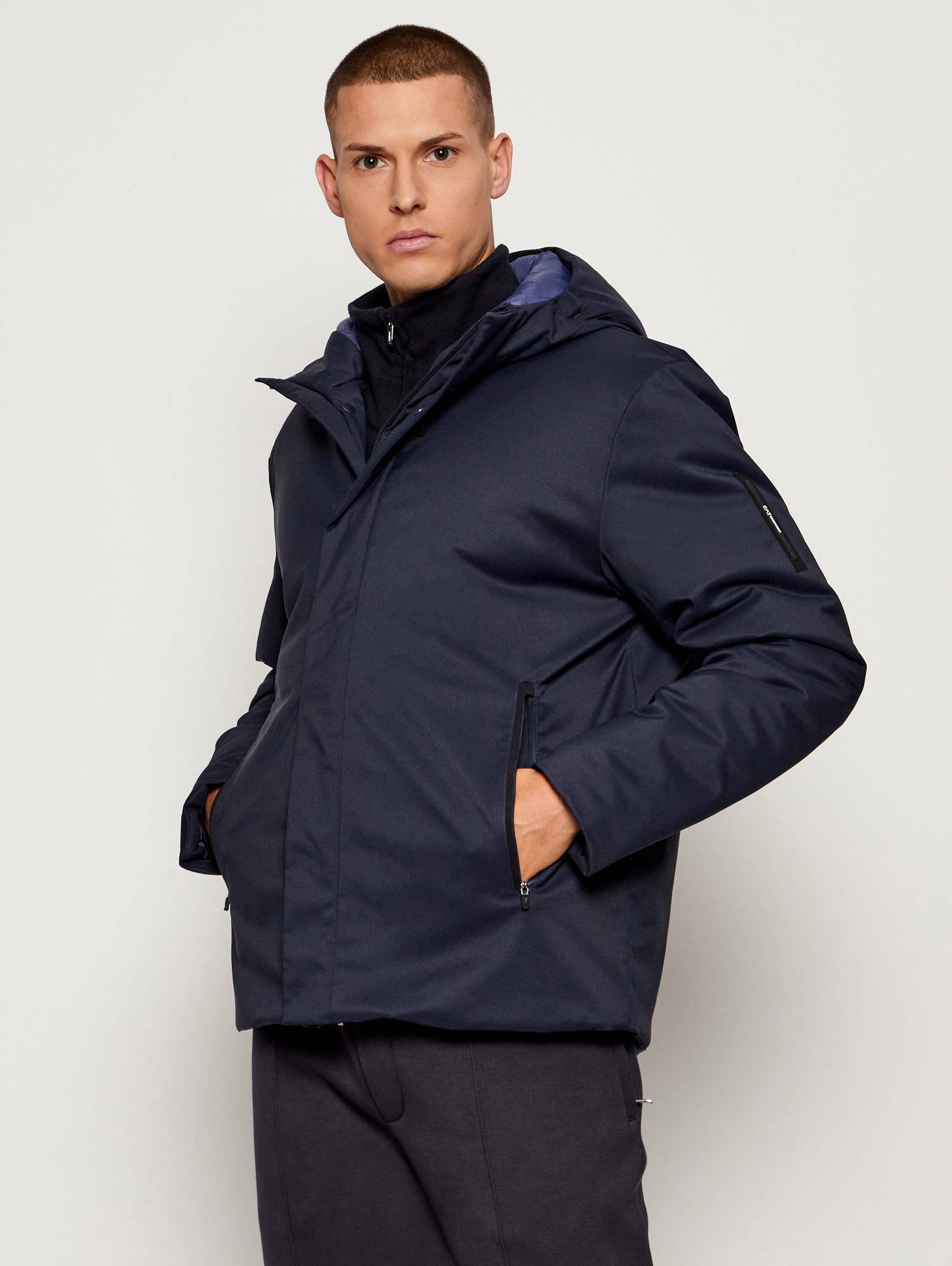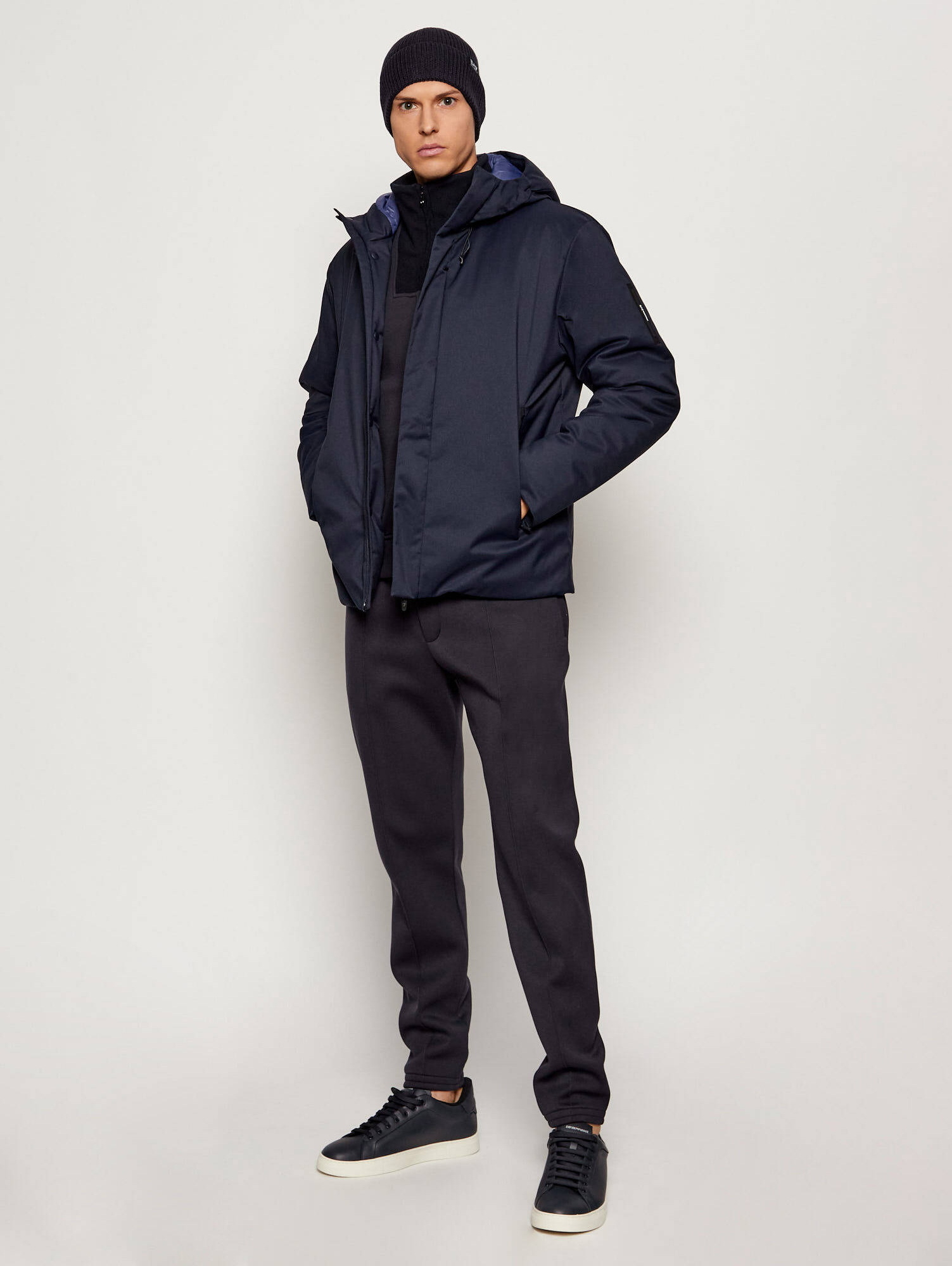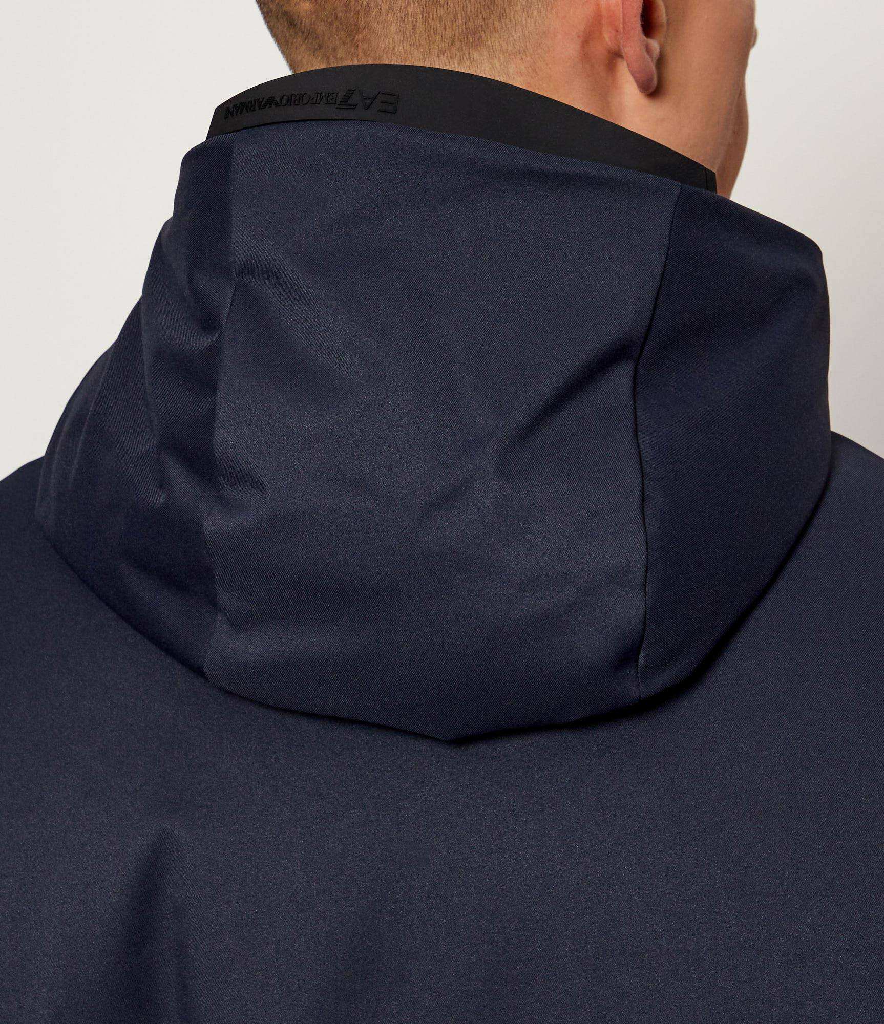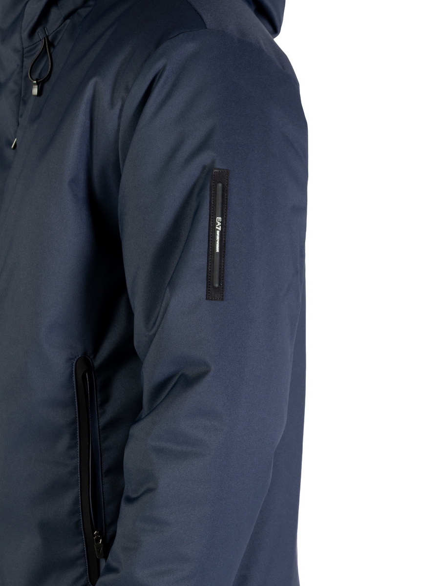 Мужская зимняя куртка с капюшоном EA7 Mountain Tech — сочетание технологичности и спортивного стиля. Матовая ткань тёмно-синего цвета с контрастной подкладкой и утеплителем надёжно защищает от холода. Модель застёгивается на молнию с ветрозащитной планкой, дополнена боковыми карманами на молнии, скрытым нагрудным и внутренним карманами.