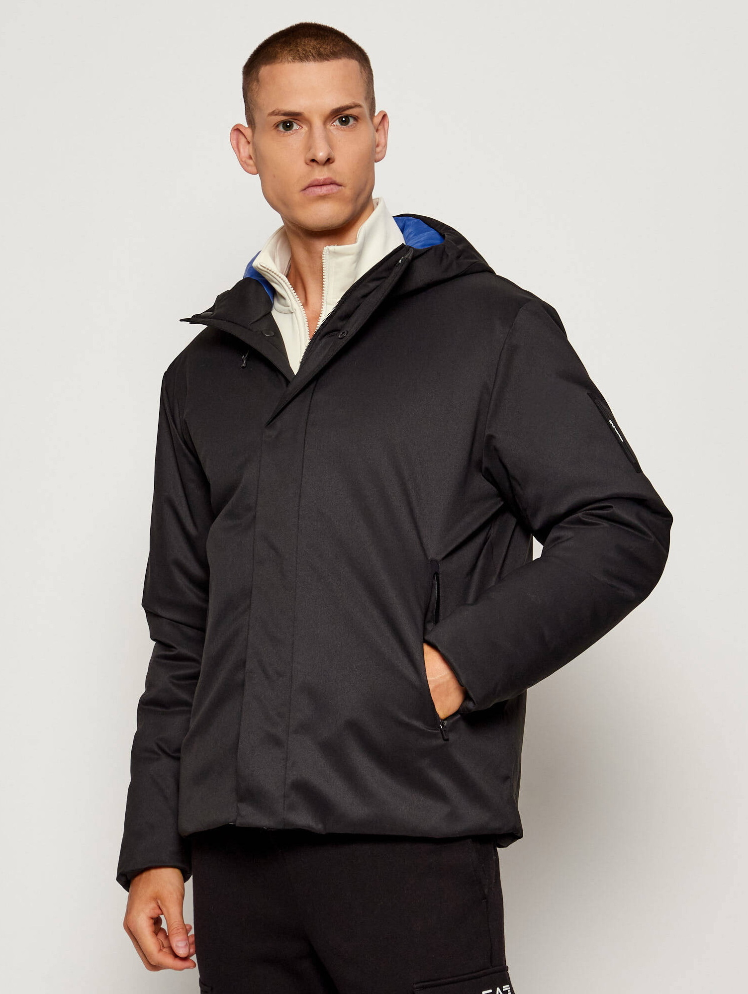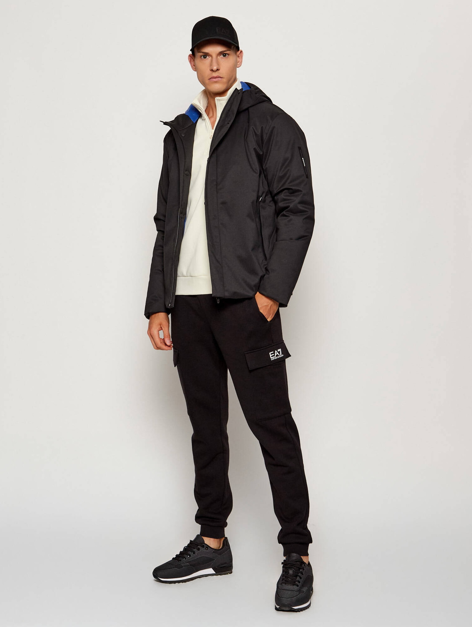 Мужская демисезонная куртка с капюшоном EA7 Mountain Tech — сочетание технологичности и спортивного стиля. Матовая ткань черного цвета с контрастной подкладкой и утеплителем надёжно защищает от холода. Модель застёгивается на молнию с ветрозащитной планкой, дополнена боковыми карманами на молнии, скрытым нагрудным и внутренним карманами.