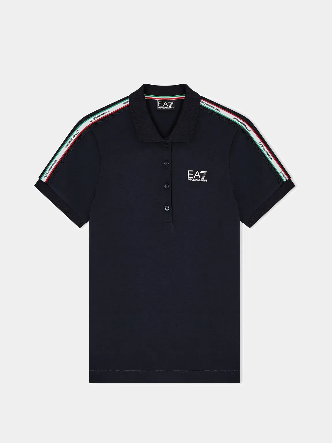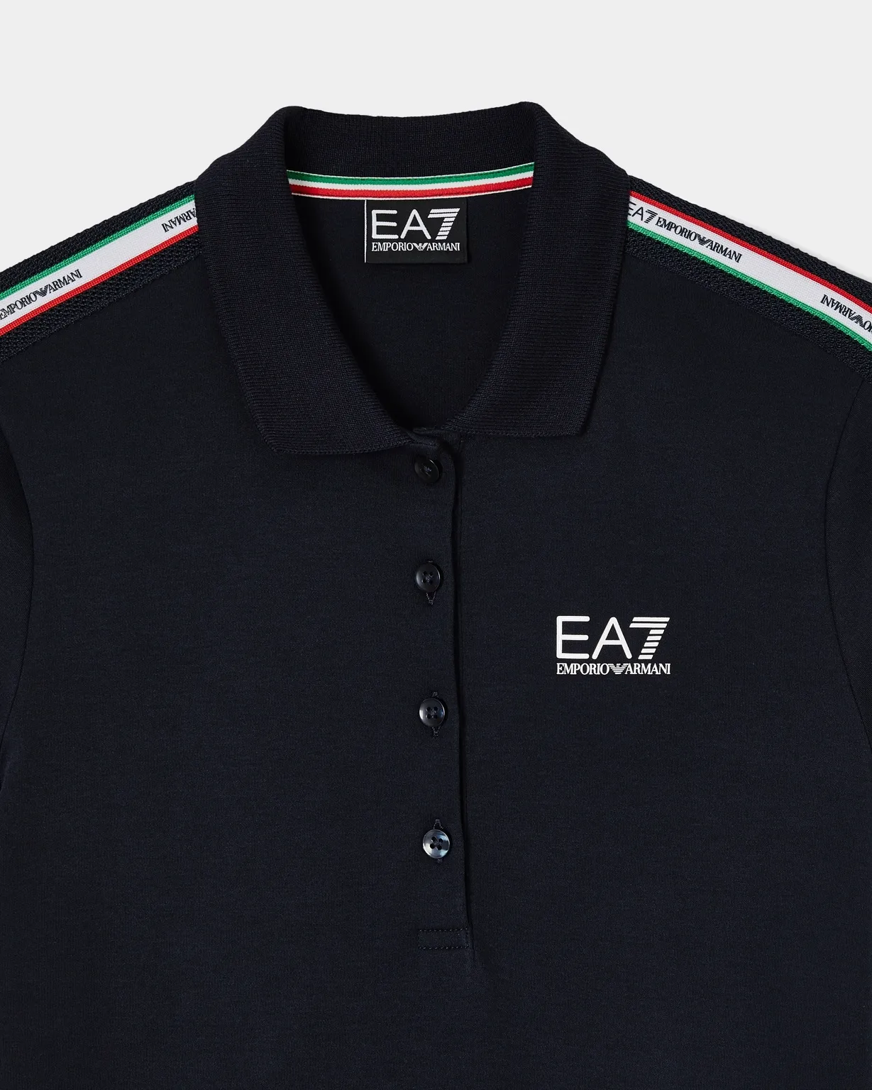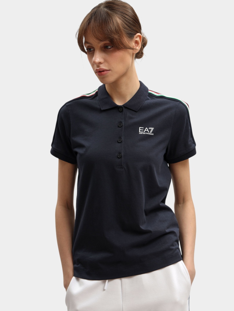 Классический воротник-поло с застёжкой на пуговицы придаёт модели аккуратный и элегантный вид. Контрастные полосы на плечах и фирменный логотип бренда на груди и спине подчёркивают спортивный стиль, делая эту модель отличным выбором для активного образа жизни.