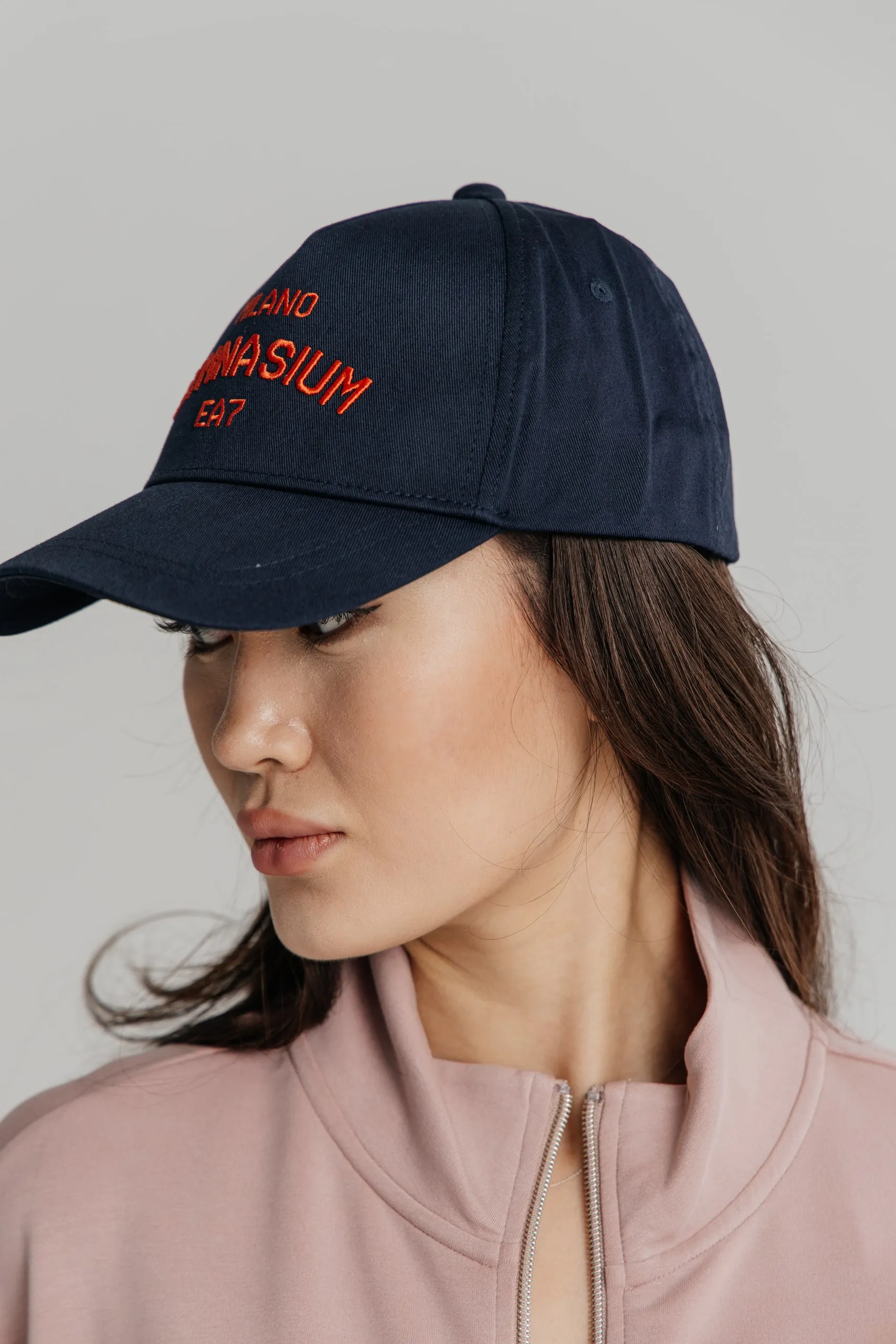 Женская бейсболка EA7 тёмно-синего цвета — в духе активного ритма. Лёгкий дышащий хлопок и фирменная вышивка логотипа спереди — ставка на комфорт и узнаваемый стиль. Идеальна для спорта, прогулок и динамичных дней. Сзади регулируется металлической пряжкой.