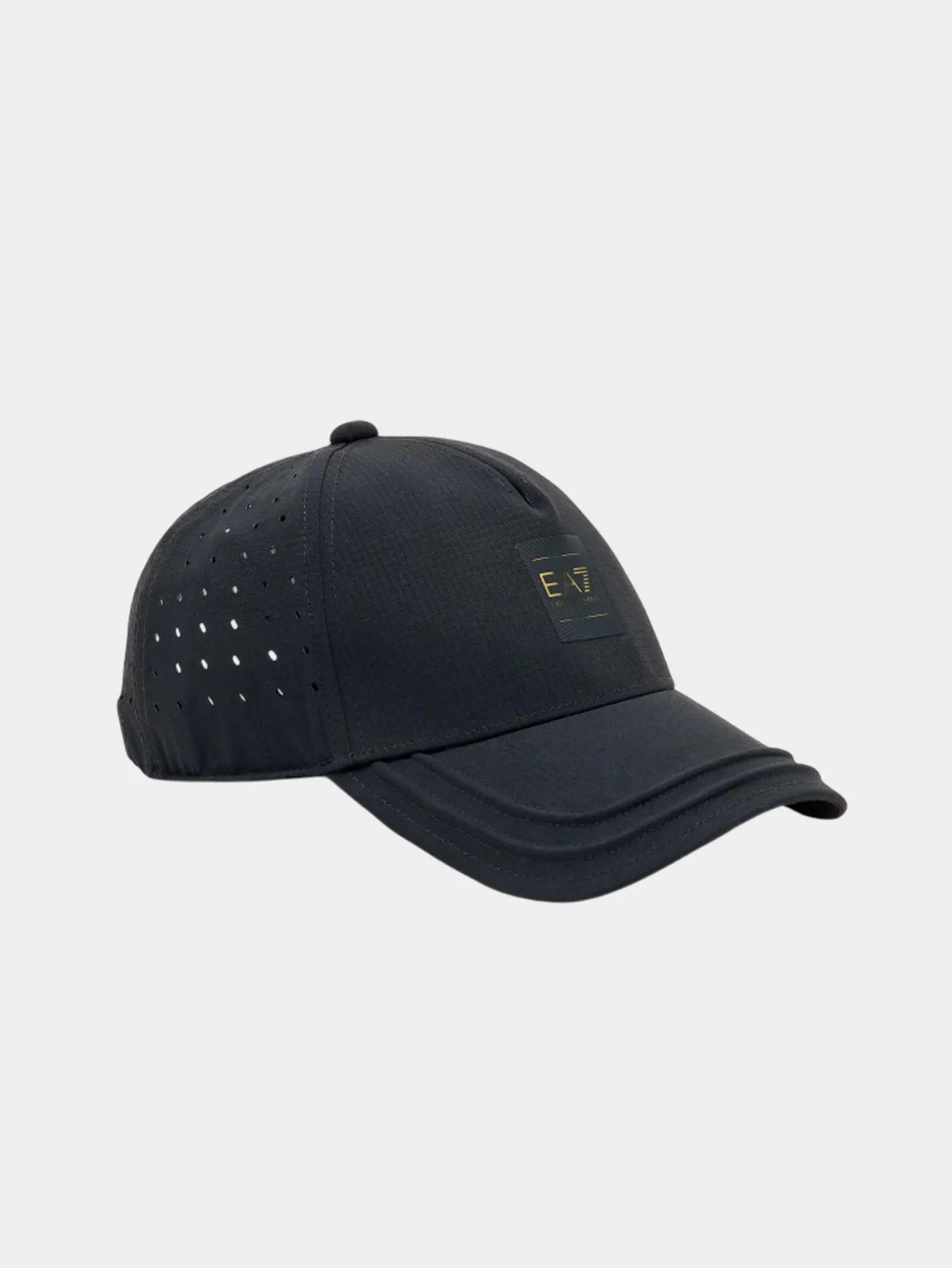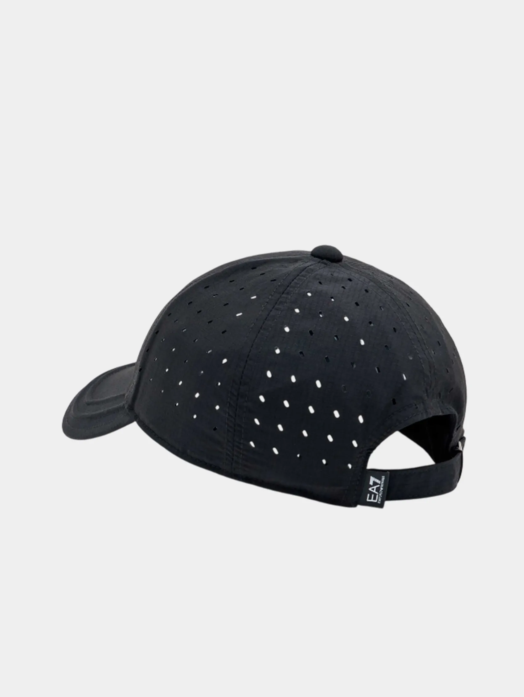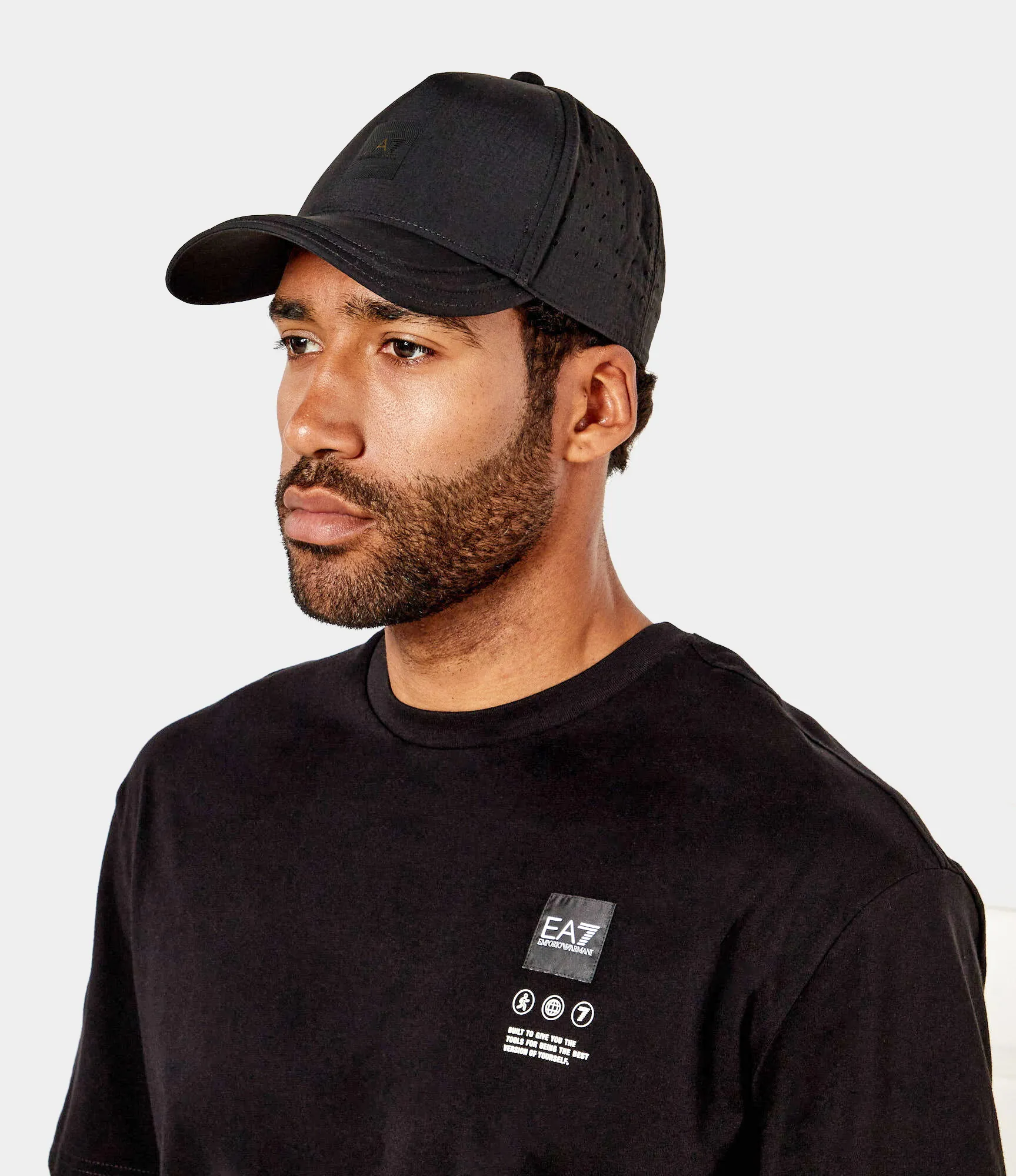 Стильная чёрная кепка EA7 Emporio Armani — идеальный аксессуар для активного ритма. Лёгкий дышащий материал с перфорацией по бокам обеспечивает вентиляцию, а регулируемый ремешок сзади гарантирует комфортную посадку. Лаконичный дизайн дополнен фирменным логотипом EA7 спереди.
