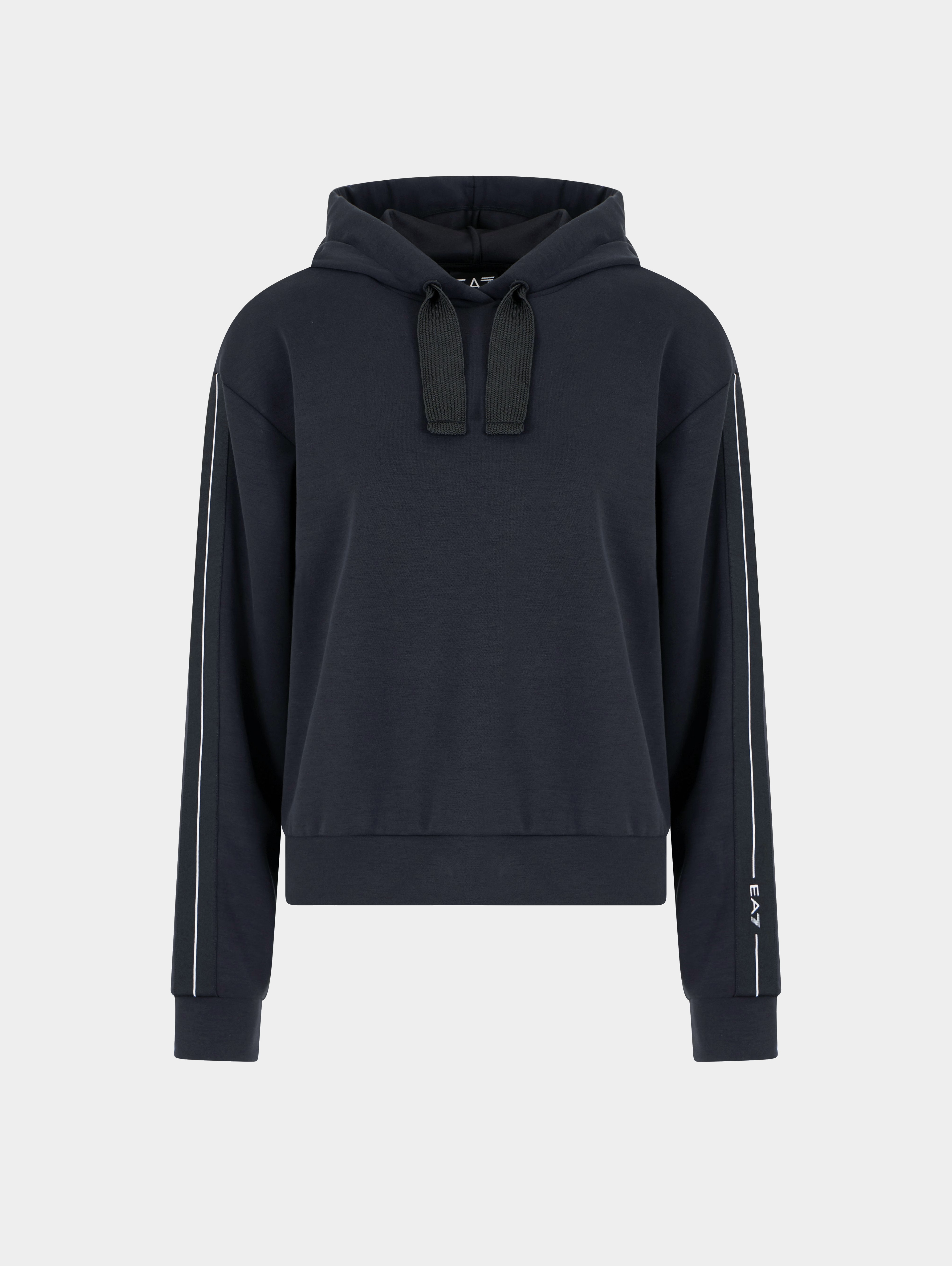 Женское худи EA7 сочетает стиль и комфорт, идеально подходя как для тренировок, так и для повседневного отдыха. Мягкий эластичный материал обеспечивает свободу движений и приятные тактильные ощущения. Свободный крой, спущенные плечи и укороченная длина делают модель актуальной и удобной. Декоративная полоска на рукавах добавляет стильный акцент.