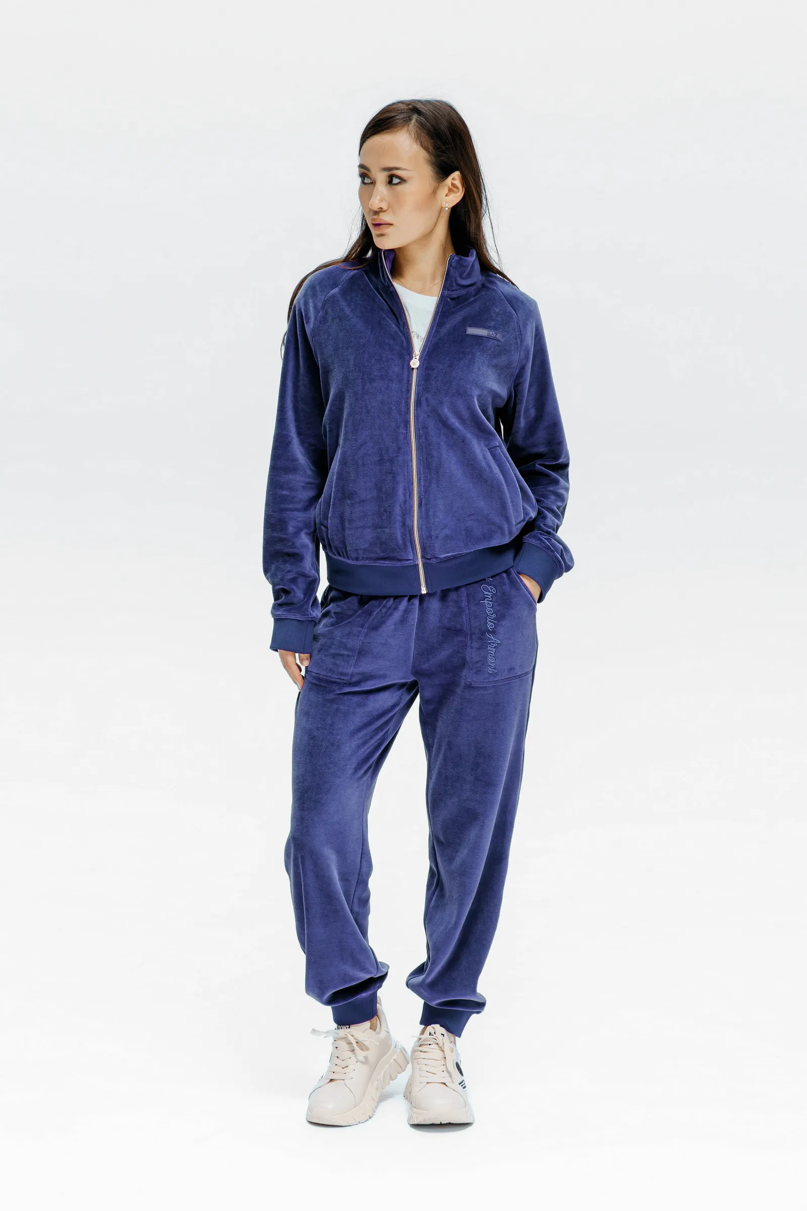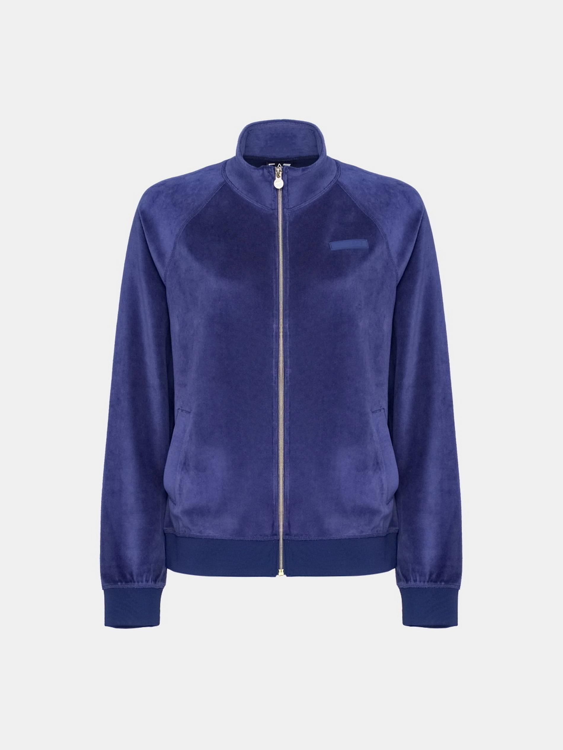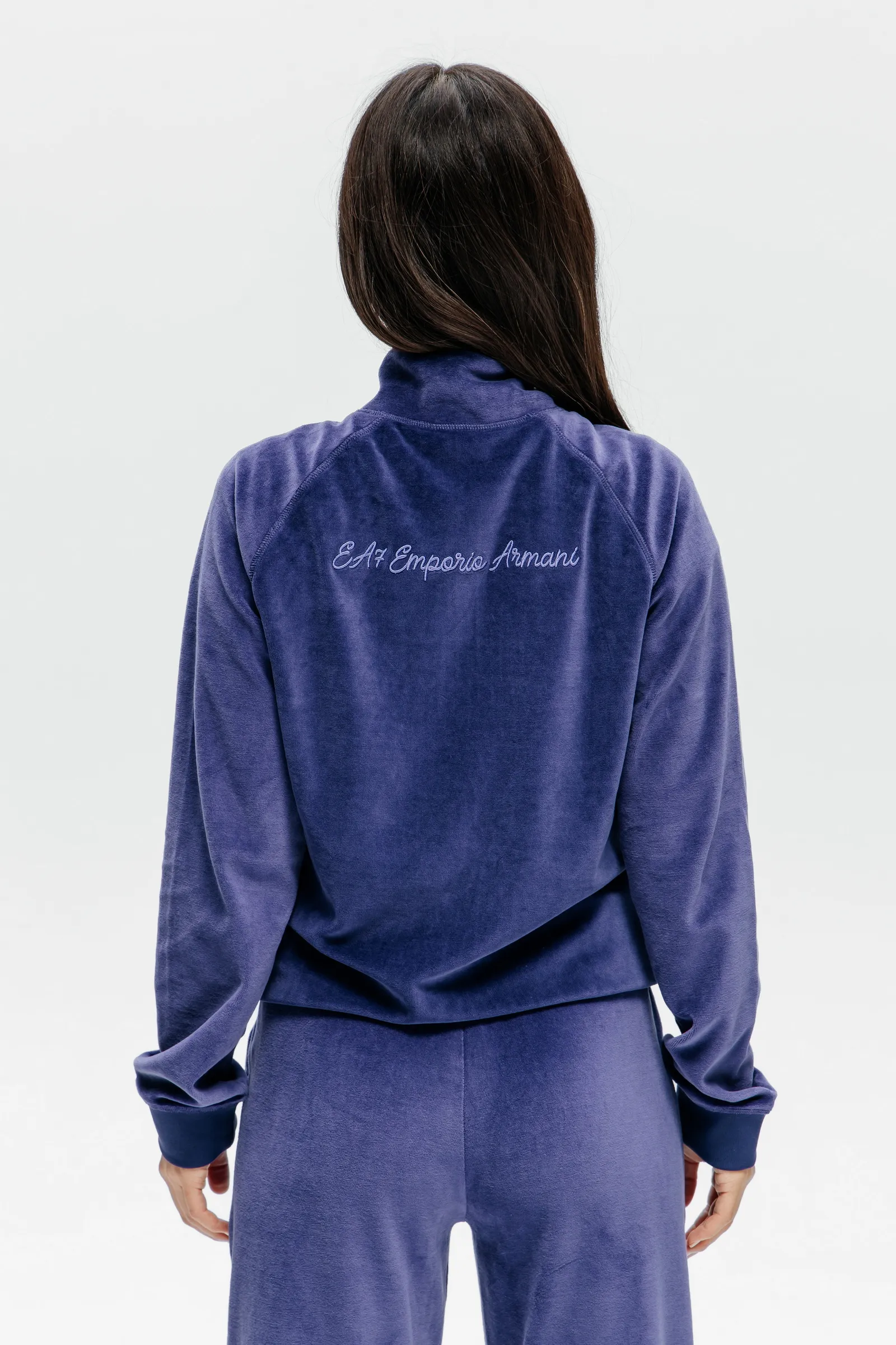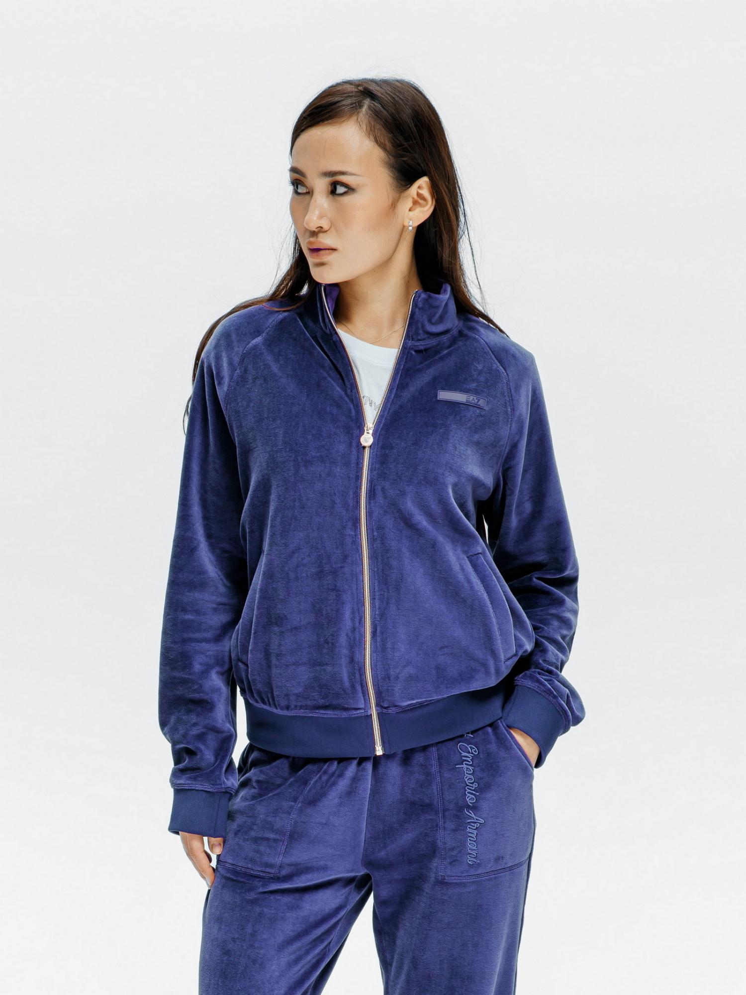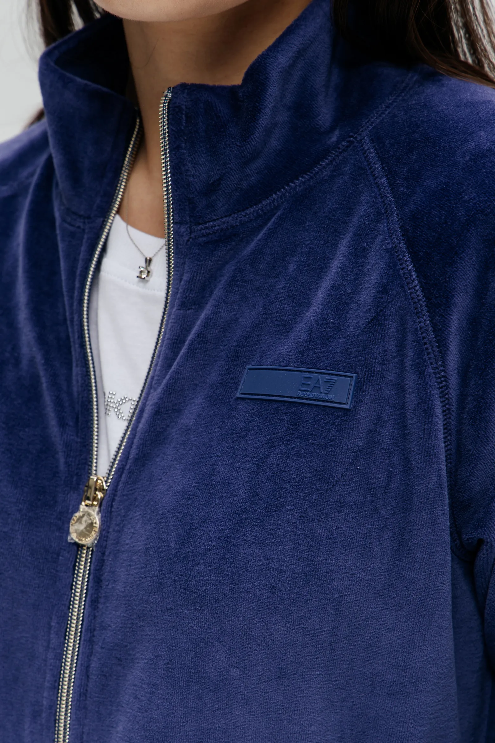 Женская толстовка EA7 из мягкого велюра в синем цвете — стильная интерпретация комфорта в духе Emporio Armani. Модель на молнии с воротником-стойкой и рукавами-реглан дополнена боковыми карманами. Декорирована нашивкой на груди и вышитым логотипом EA7 на спине.
