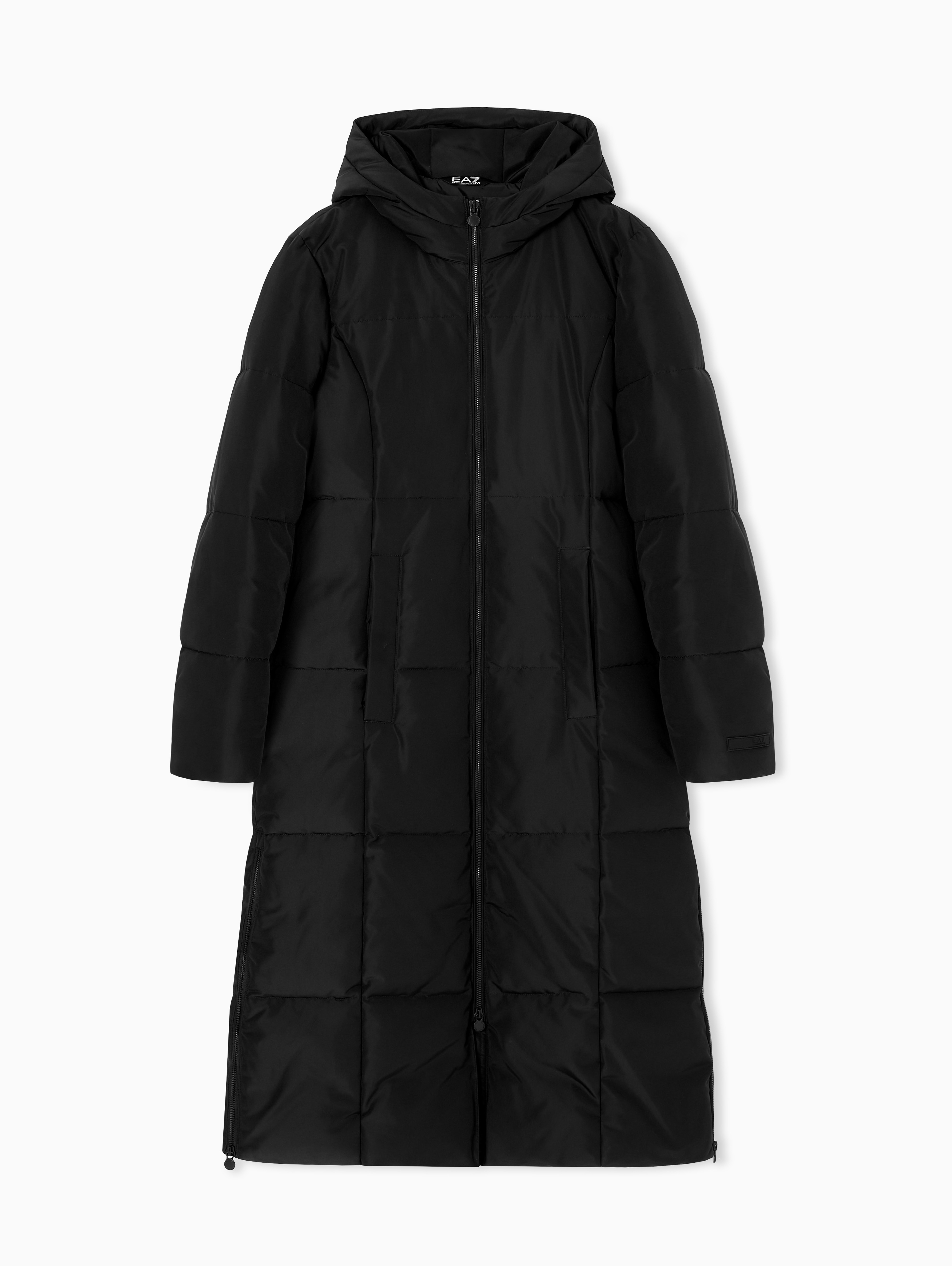 Длинная утеплённая куртка EA7 из нейлона слегка приталенного кроя — стильное решение для зимы. Модель с капюшоном и застёжкой-молнией дополнена боковыми карманами и разрезами на молнии. Прорезиненная нашивка с логотипом EA7 на рукаве подчёркивает современный спортивный стиль.