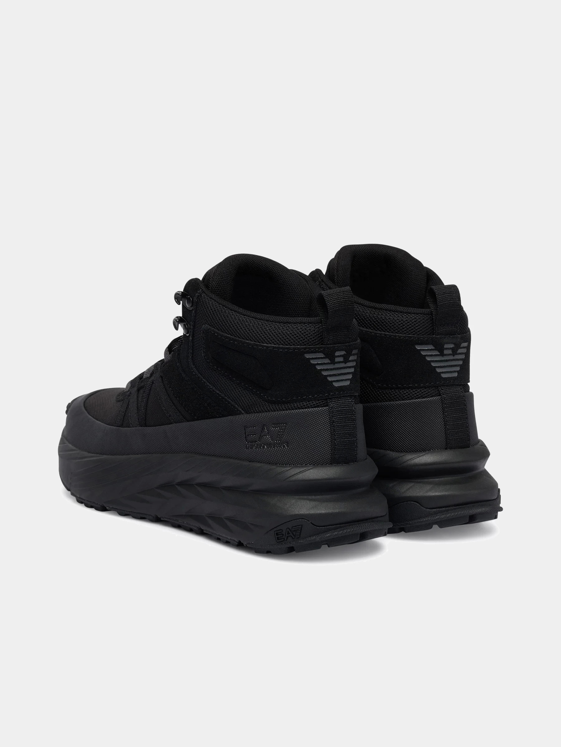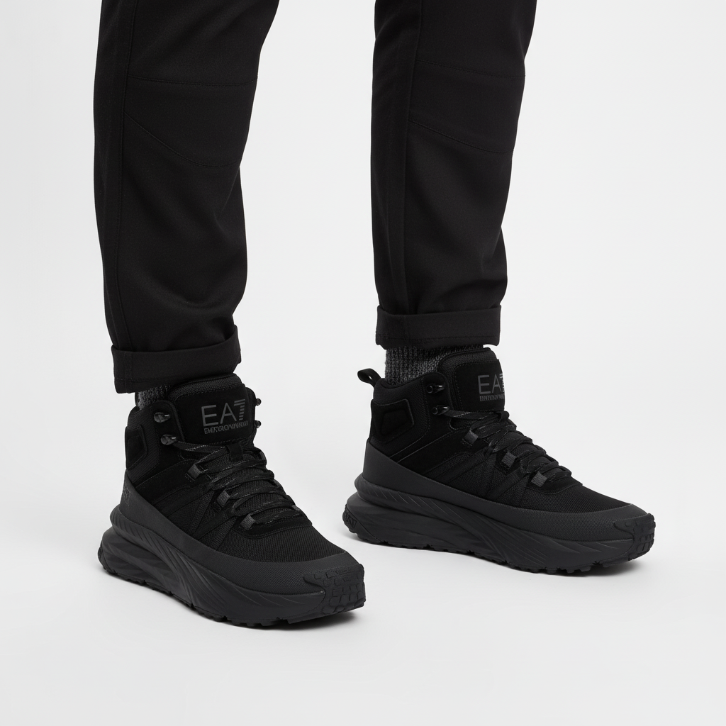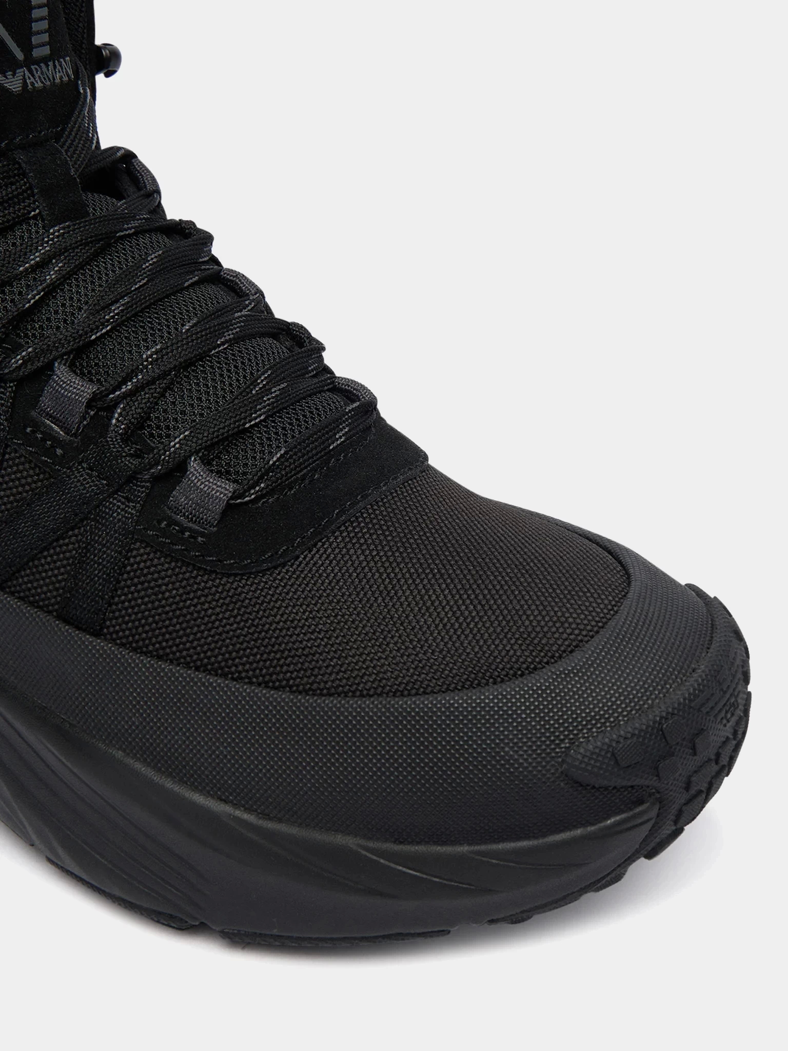 Унисекс ботинки EA7 Emporio Armani выполнены из комбинации текстиля, замши и синтетических материалов. Рифлёная резиновая подошва устойчива к повреждениям и обеспечивает надёжное сцепление. Технология Distance Crusher отвечает за мягкую амортизацию, приподнятый верх и усиленные элементы стабилизируют стопу. Текстильная внутренняя часть и съёмная стелька дарят комфорт при каждом шаге.