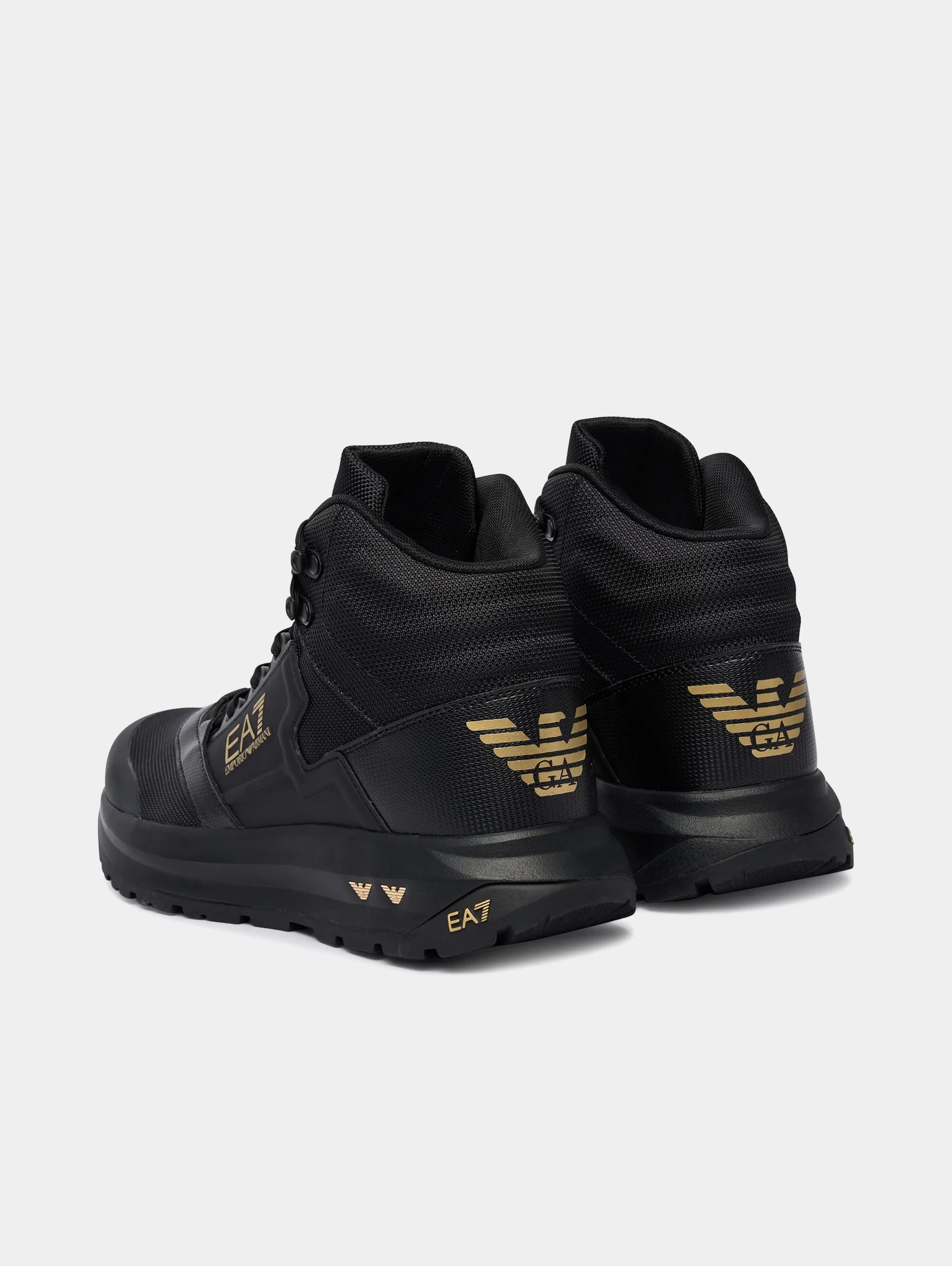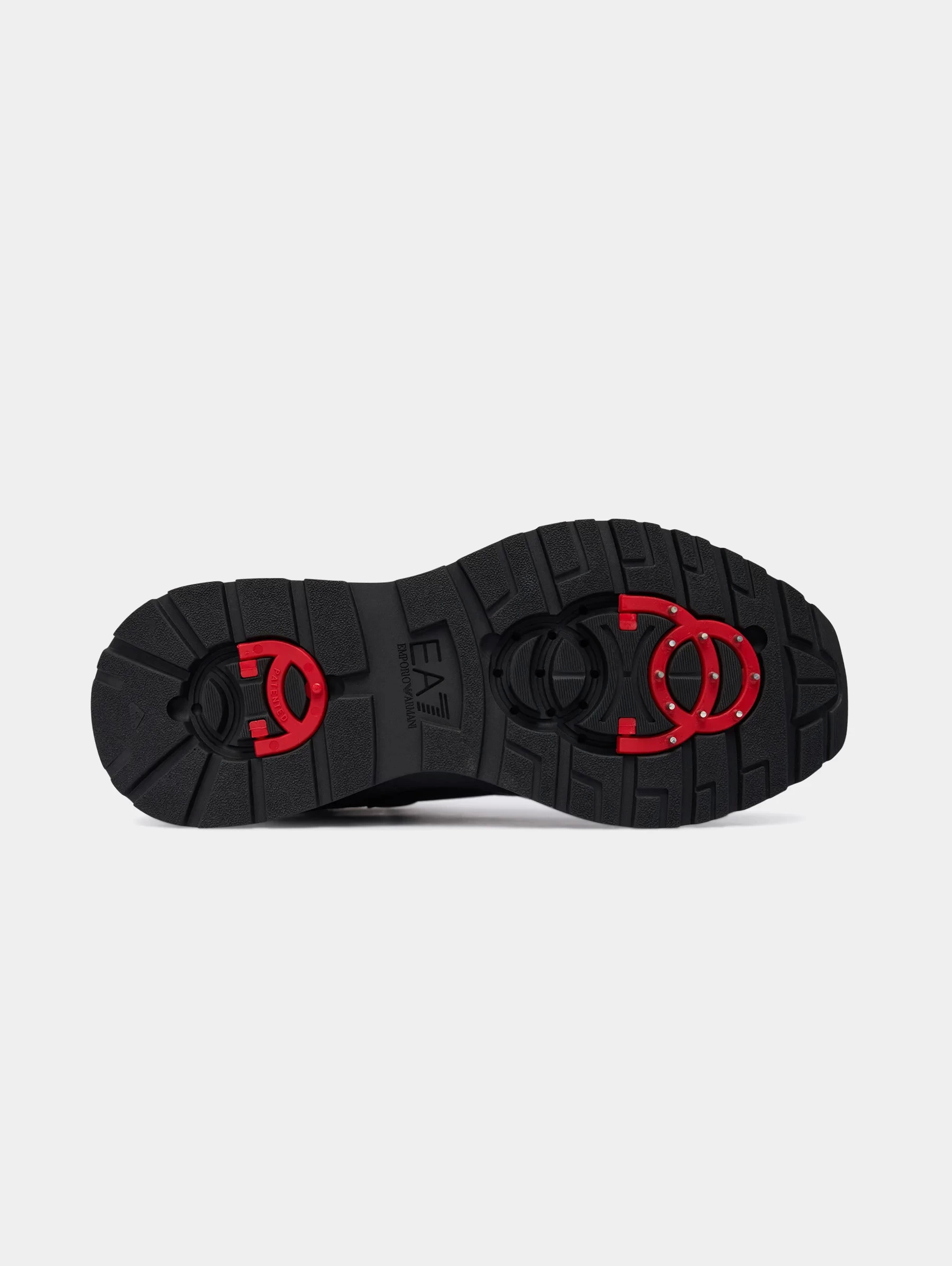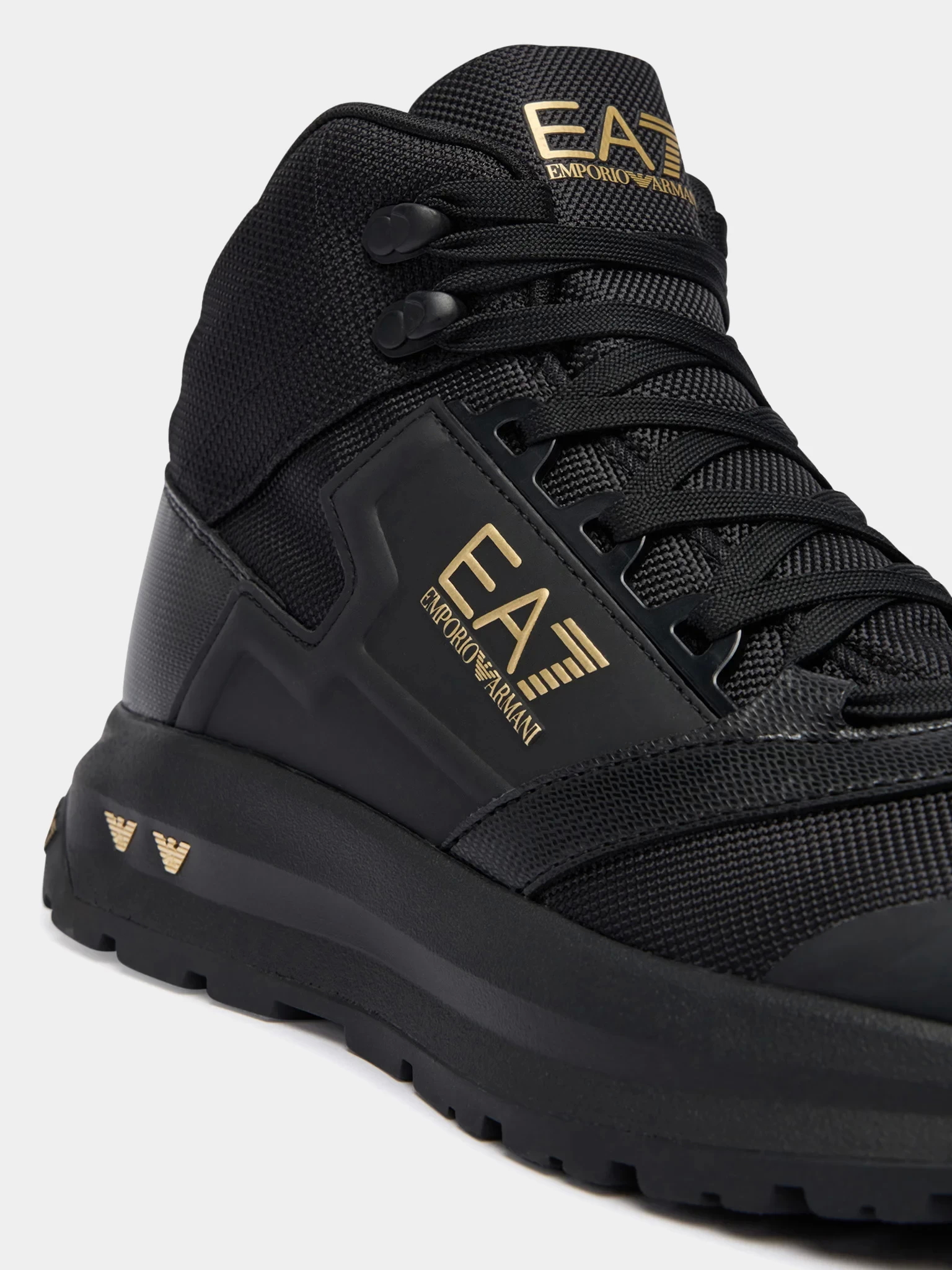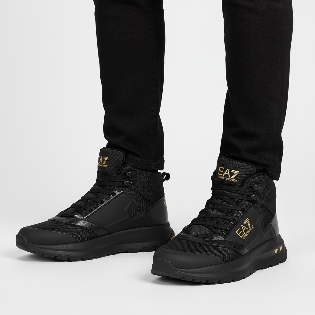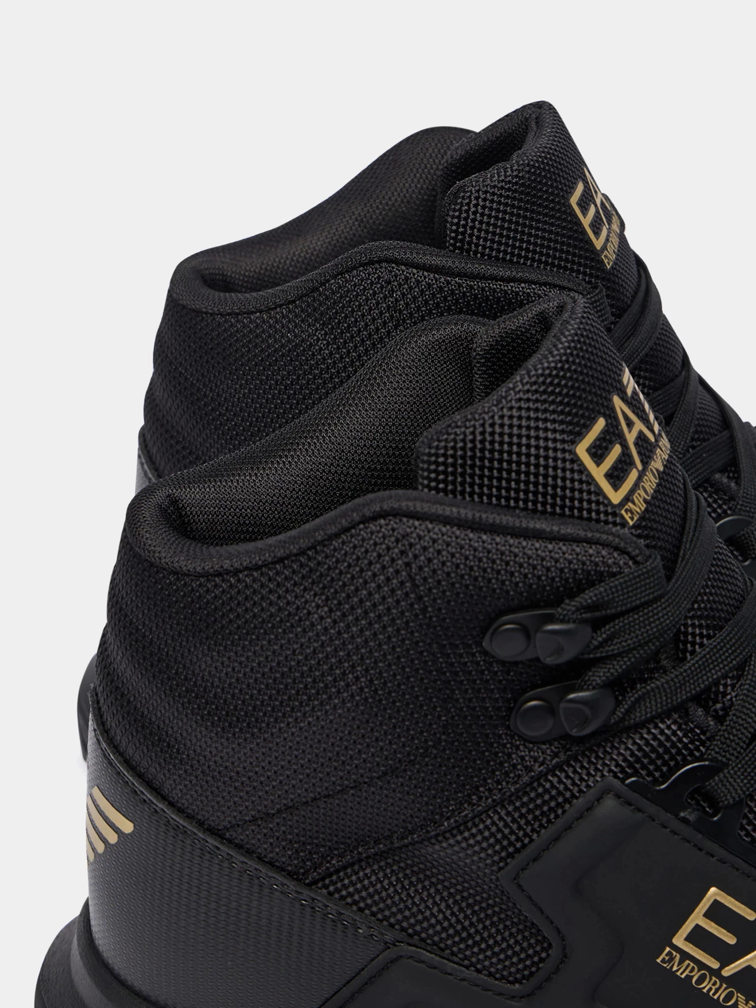 Унисекс ботинки анти гололёд EA7 из нейлона и сетчатого материала с водоотталкивающей пропиткой надёжно фиксируют стопу, обеспечивая максимальный комфорт. Специальные протекторы на подошве гарантируют уверенное сцепление даже на обледенелых поверхностях. Модель украшена фирменными логотипами EA7 и светоотражающими деталями.