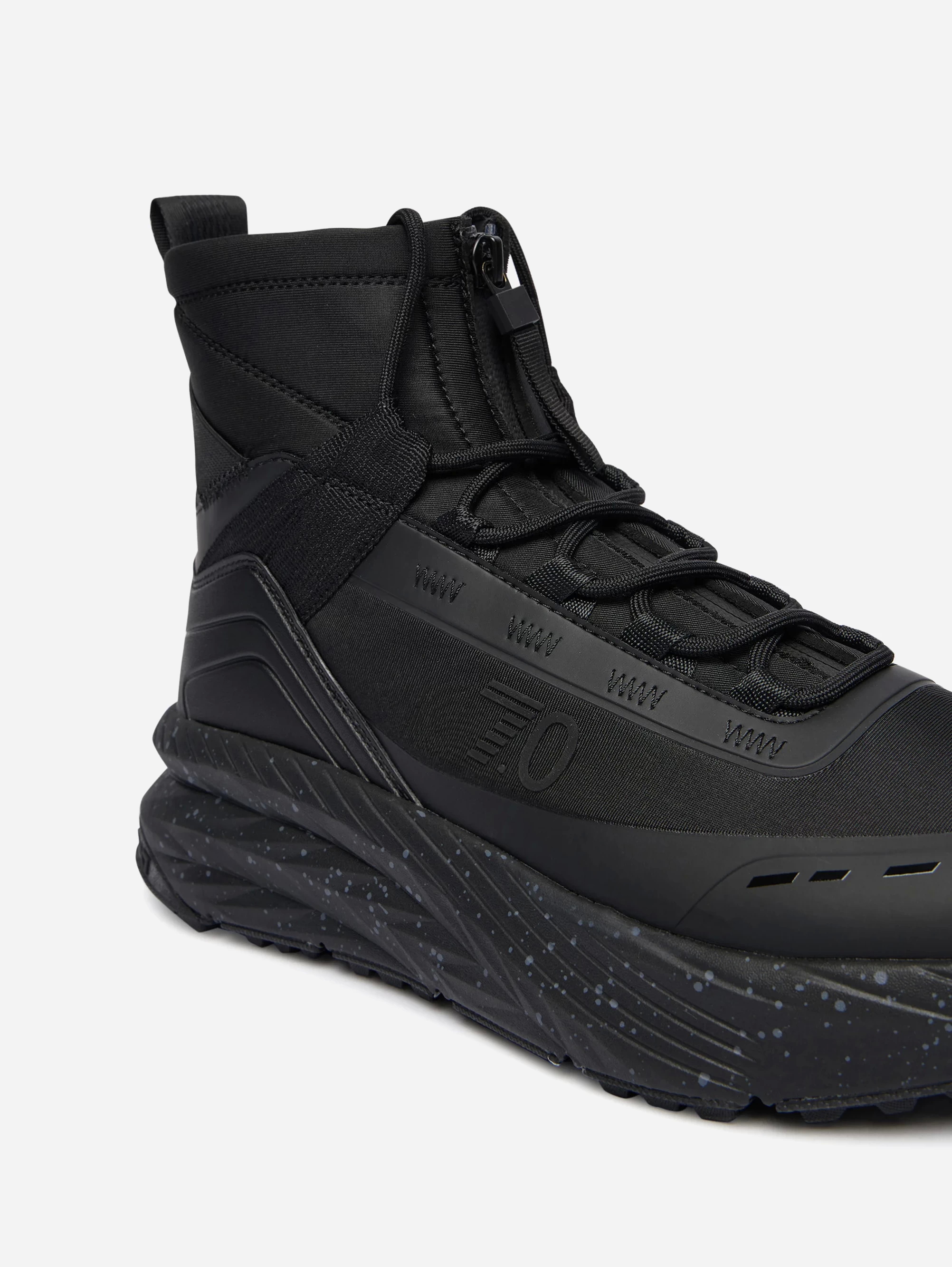 Унисекс ботинки EA7 с логотипом 7.0 в авангардном дизайне. Верх из неопрена и полиуретана подчёркивает динамичный стиль, а технология Crusher Sonic обеспечивает двойную амортизацию и мощный возврат энергии. Удобная комбинация молнии и шнуровки, средневысокая трендовая подошва. Отличный выбор для активного ритма.