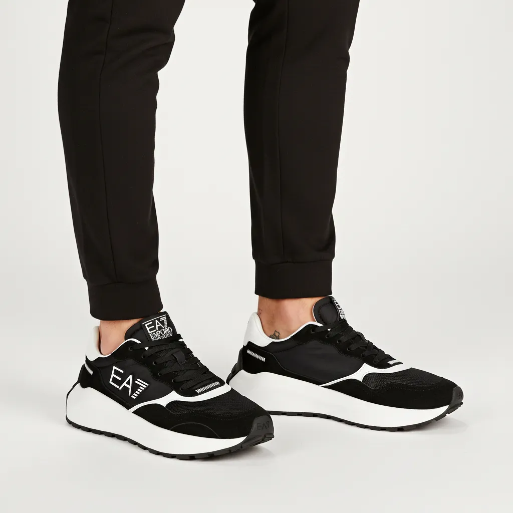 Черные унисекс кроссовки EA7 с контрастными вставками — идеальный выбор для тех, кто ценит стиль и комфорт. Верх из качественного текстиля и кожи, удобная шнуровка и прочная подошва обеспечивают максимальный комфорт при носке. Логотип бренда придает модели уникальный характер.