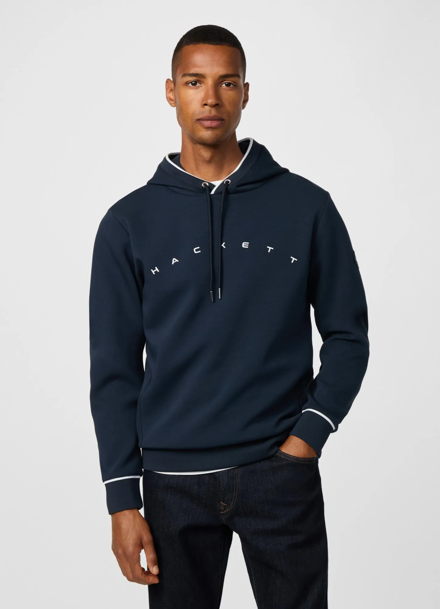 Мужское худи Hackett London из мягкого смесового трикотажа дарит комфорт и отличную посадку. Фирменное лого на груди и эмблема бренда на рукаве подчёркивают узнаваемый стиль. Универсальная модель легко сочетается с джинсами, классическими или спортивными брюками, создавая современный повседневный образ.