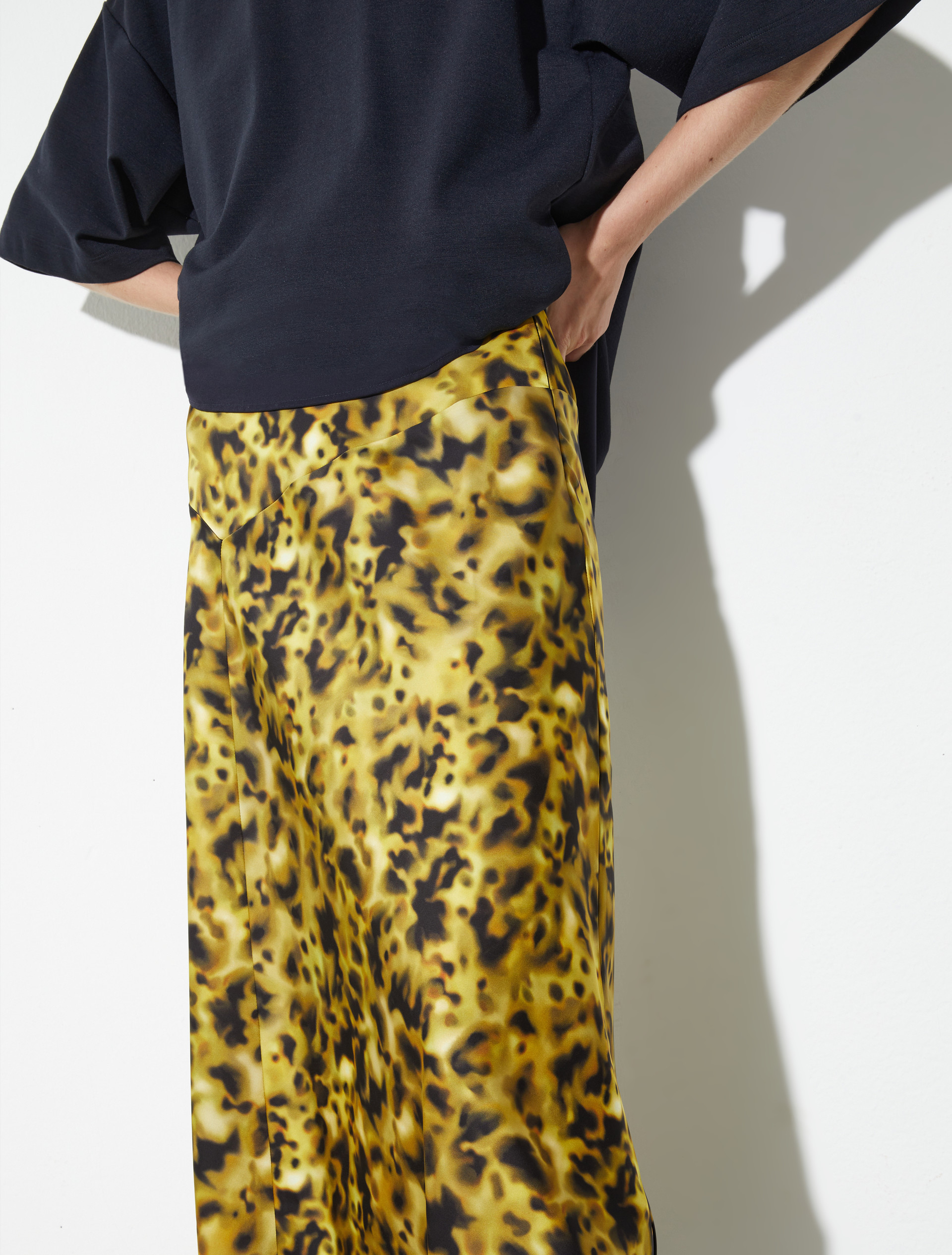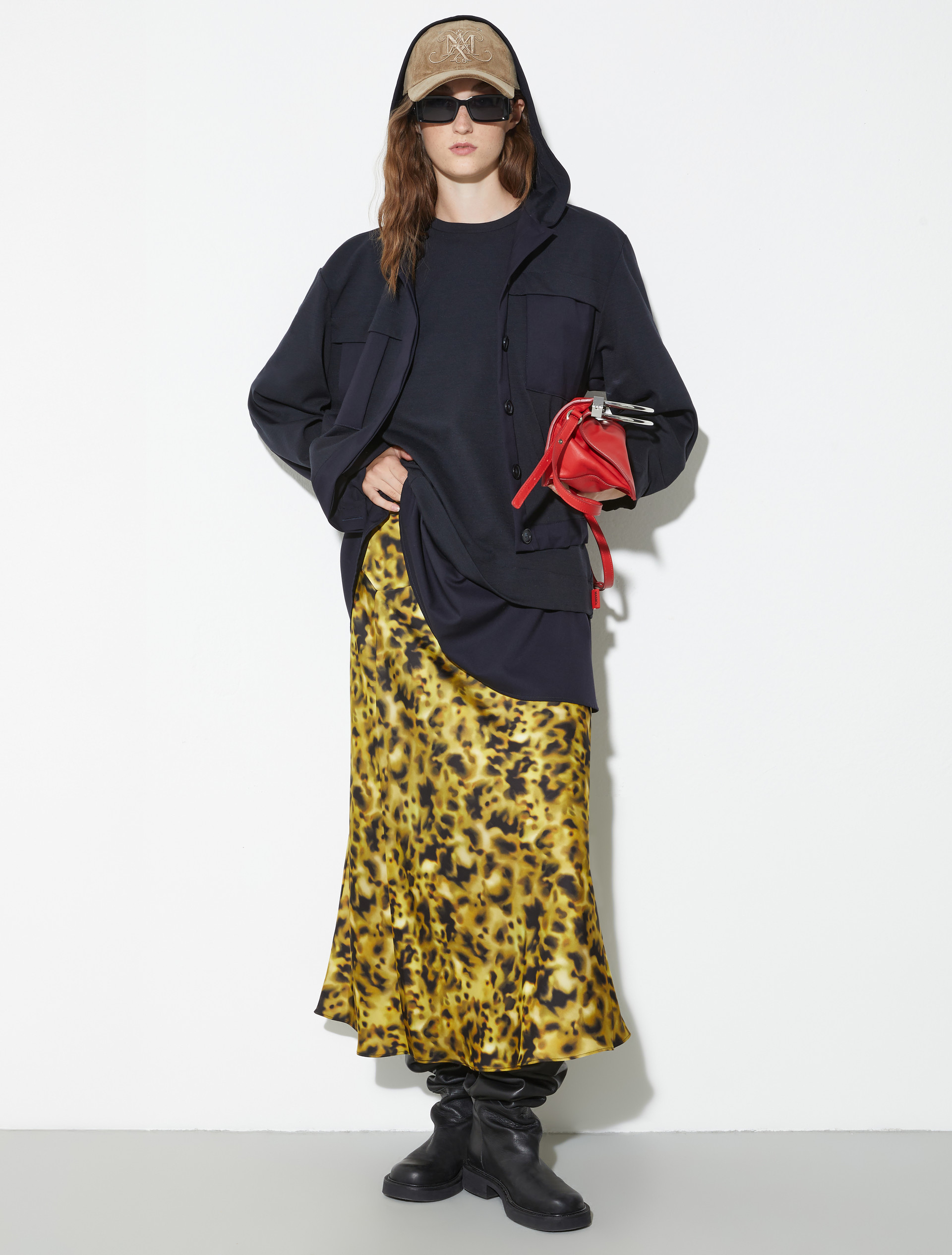 Юбка средней длины NABIL от MAX&Co из лёгкого атласа с абстрактным принтом — элегантный акцент в образе. Расклёшенный крой и асимметричная заострённая кокетка добавляют динамику, а невидимая застёжка-молния сбоку обеспечивает аккуратную посадку. Модель без подкладки подчёркивает лёгкость и воздушность ткани.