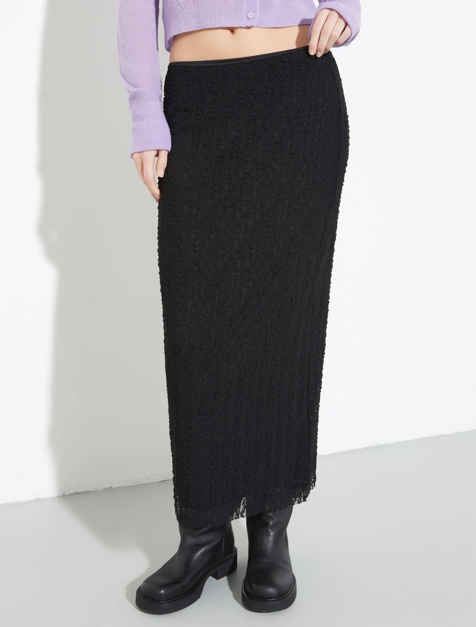Юбка-карандаш TANICA от MAX&Co из кружевного джерси в бельевом стиле создаёт ультрасовременный силуэт. Эластичный пояс средней высоты и съёмная подюбка из гладкого джерси обеспечивают комфорт и универсальность, позволяя сочетать модель как с предметами уличной моды, так и с классическими элементами гардероба.