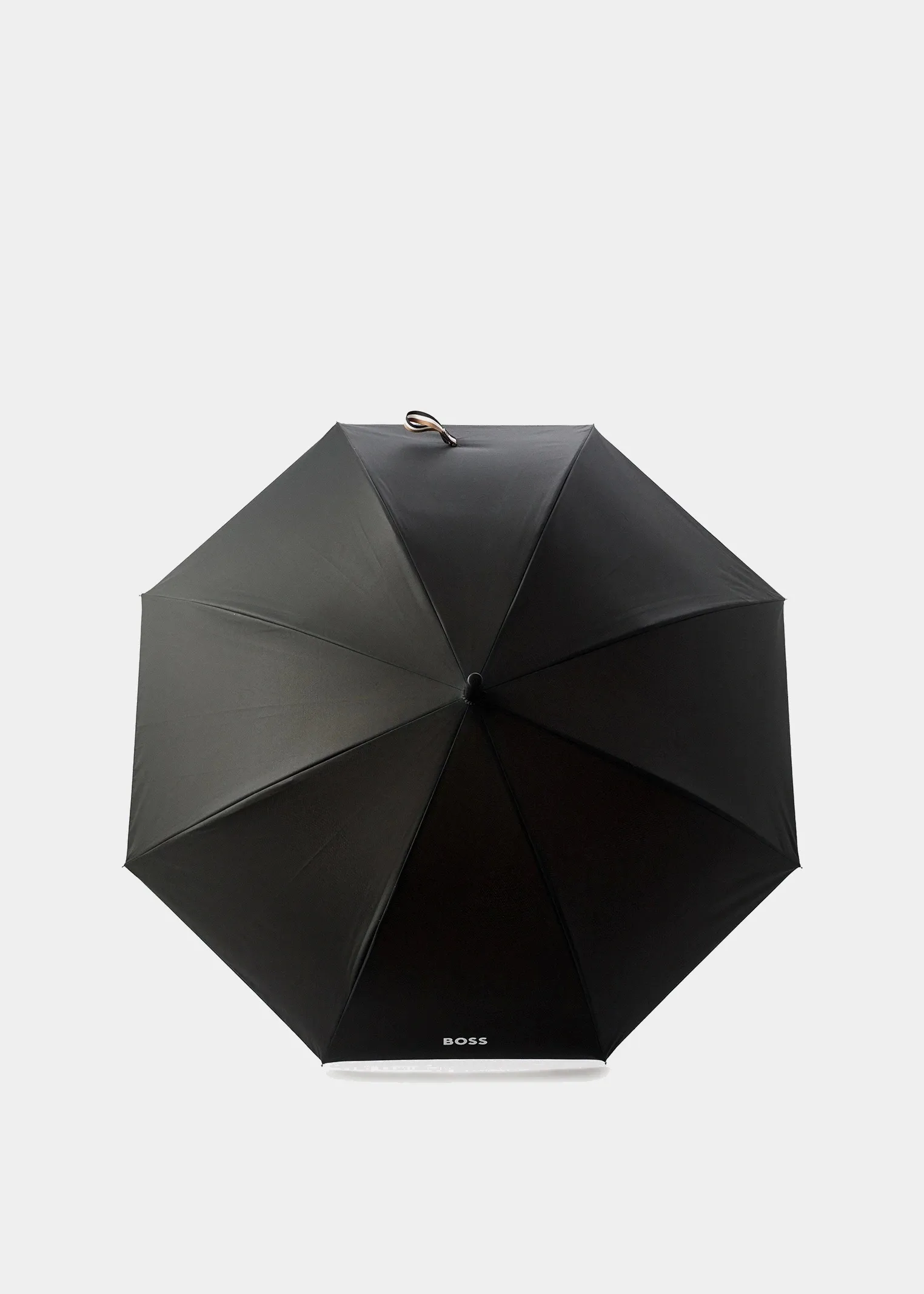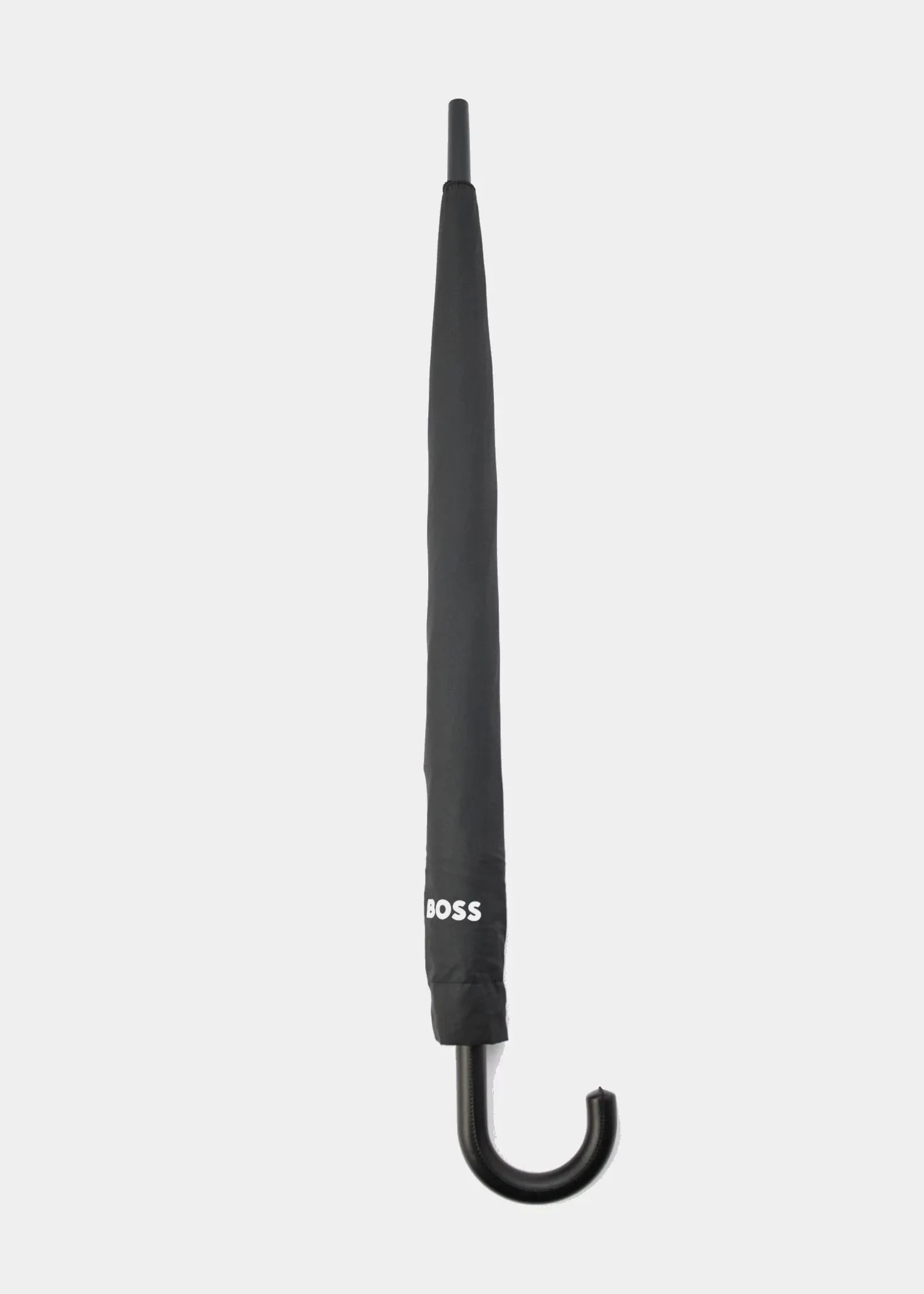 Черный мужской зонт-трость HUGO BOSS с диаметром купола 112 см — стильная и надежная защита от дождя. Прочный каркас и водоотталкивающий полиэстер обеспечивают долговечность.