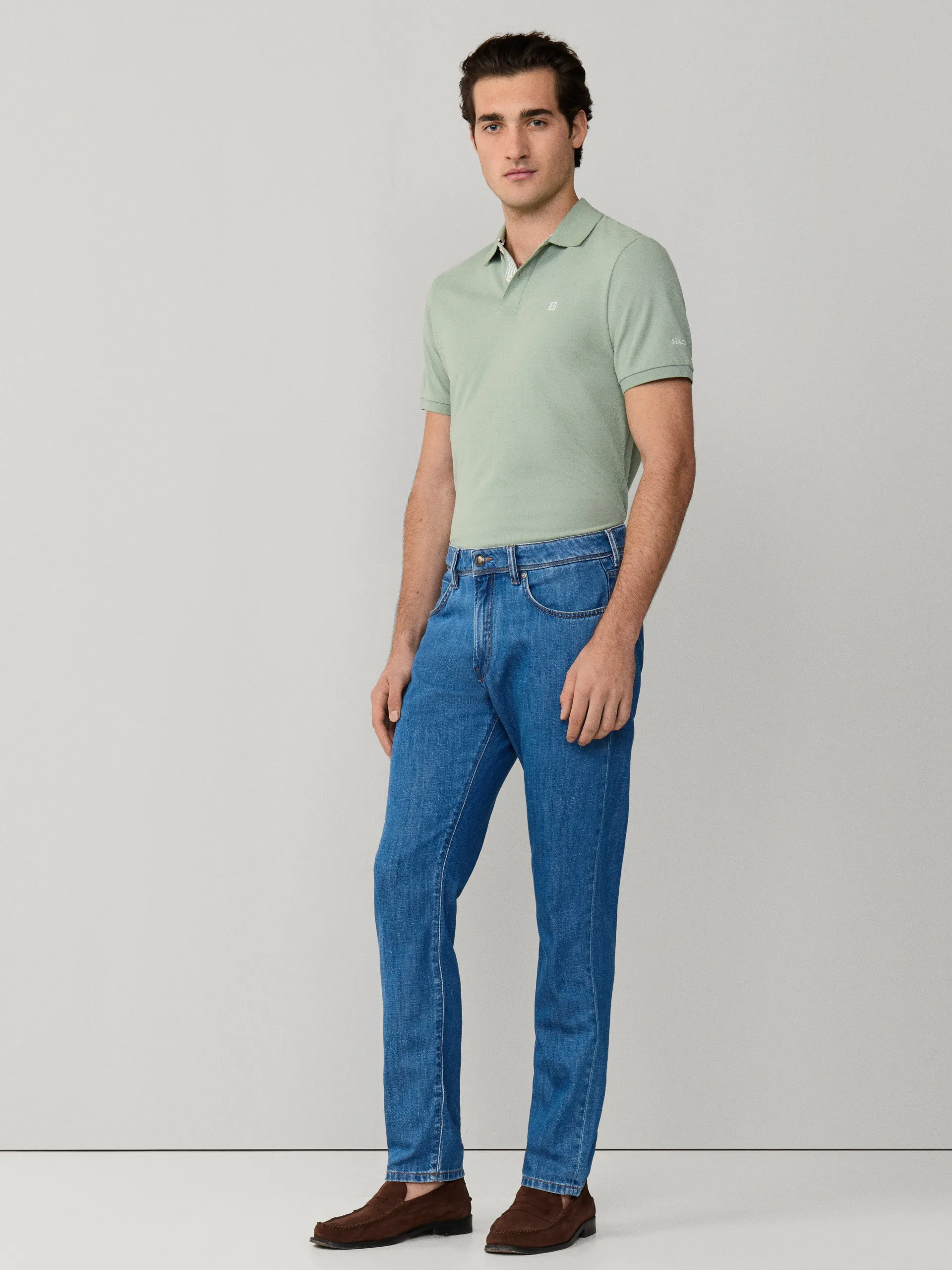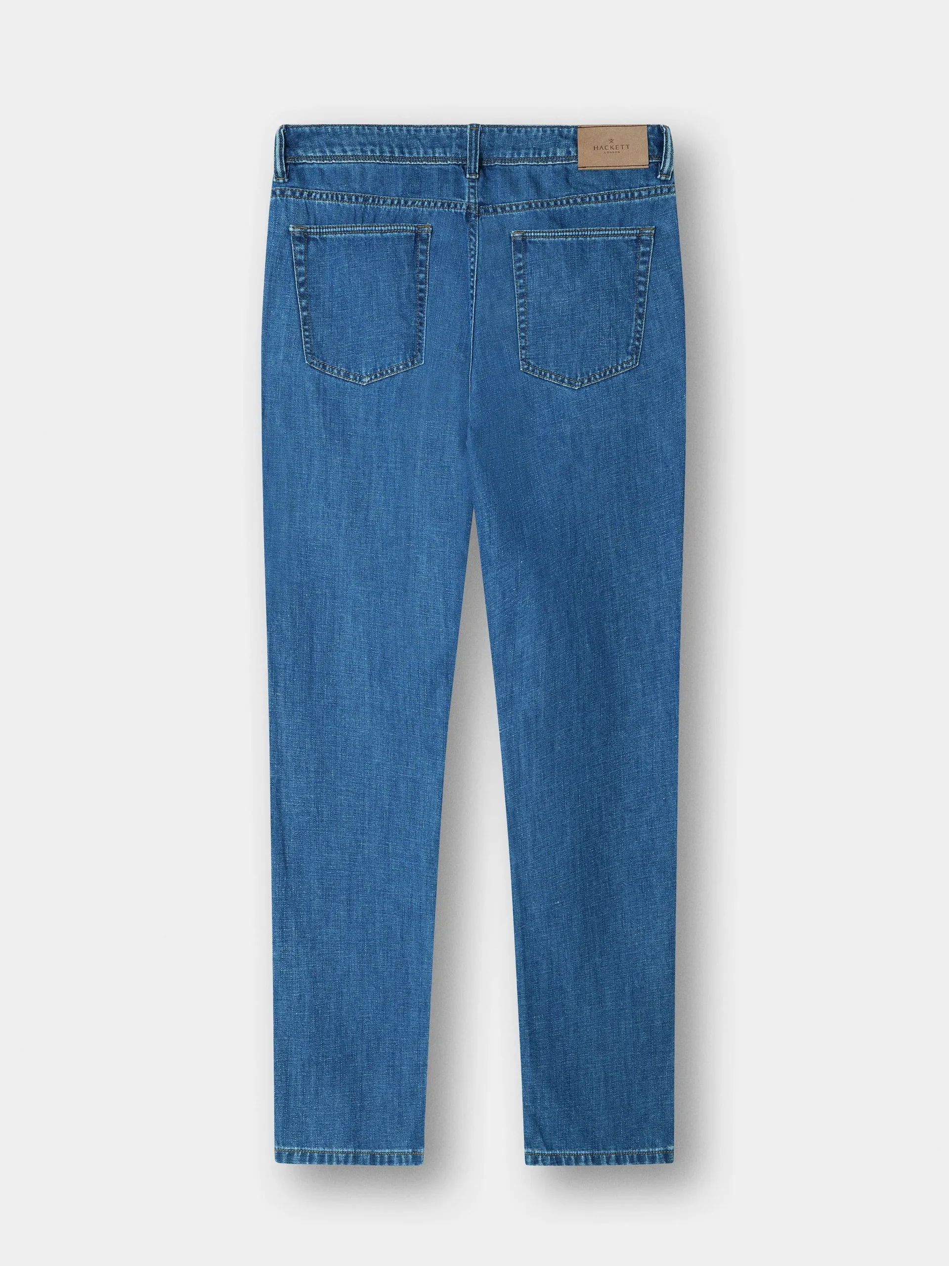 Мужские джинсы классического кроя со слегка зауженными книзу штанинами — универсальная база для летнего гардероба. Смесь хлопка и льна обеспечивает лёгкость, воздухопроницаемость и комфорт в жару. Идеальный выбор для города, офиса и отдыха.