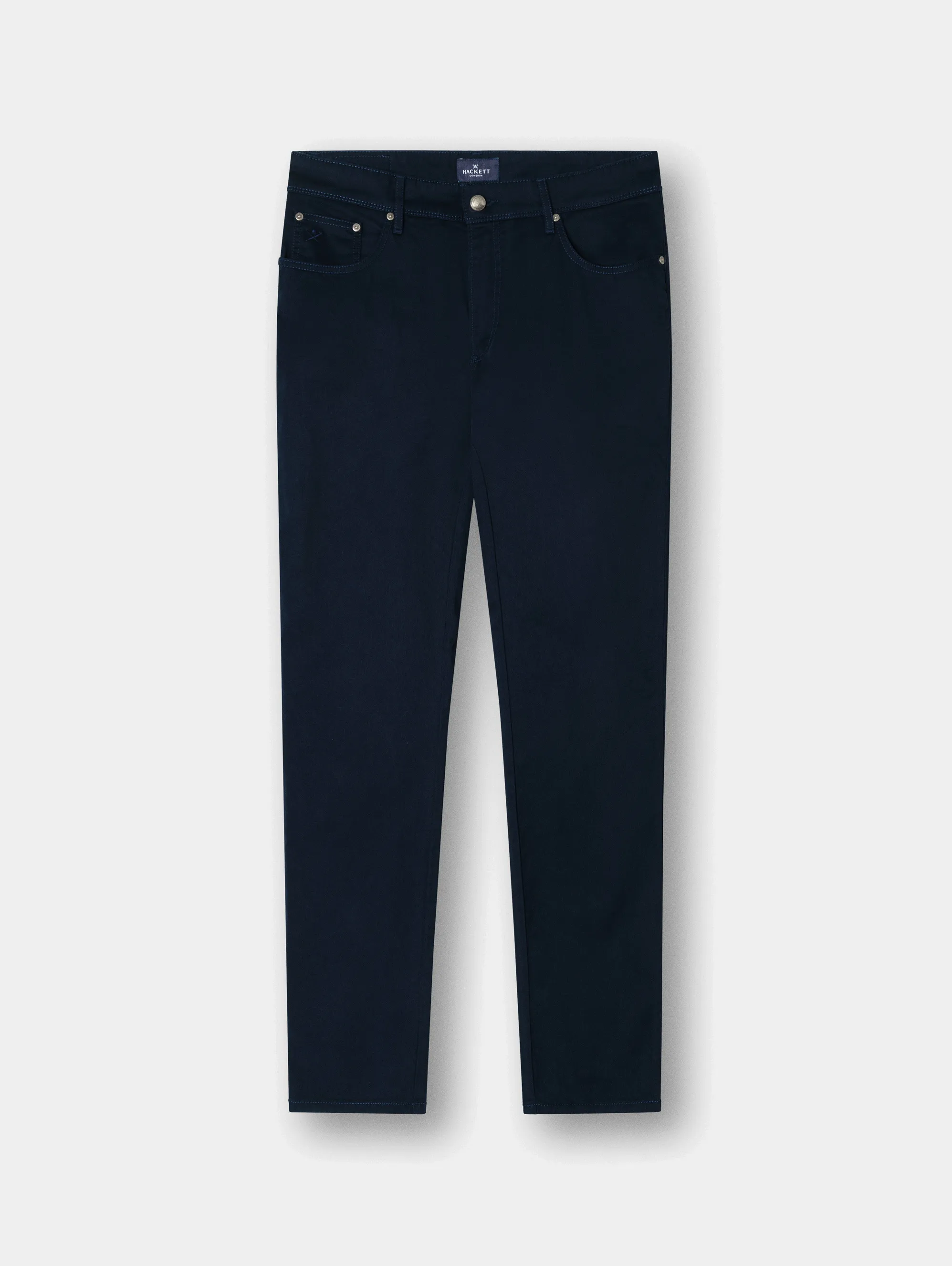 Классическая 5-карманная модель, выполненная из мягкого хлопкового твила с добавлением эластана. Прямой крой, слегка зауженный к низу — универсальный выбор на каждый день.