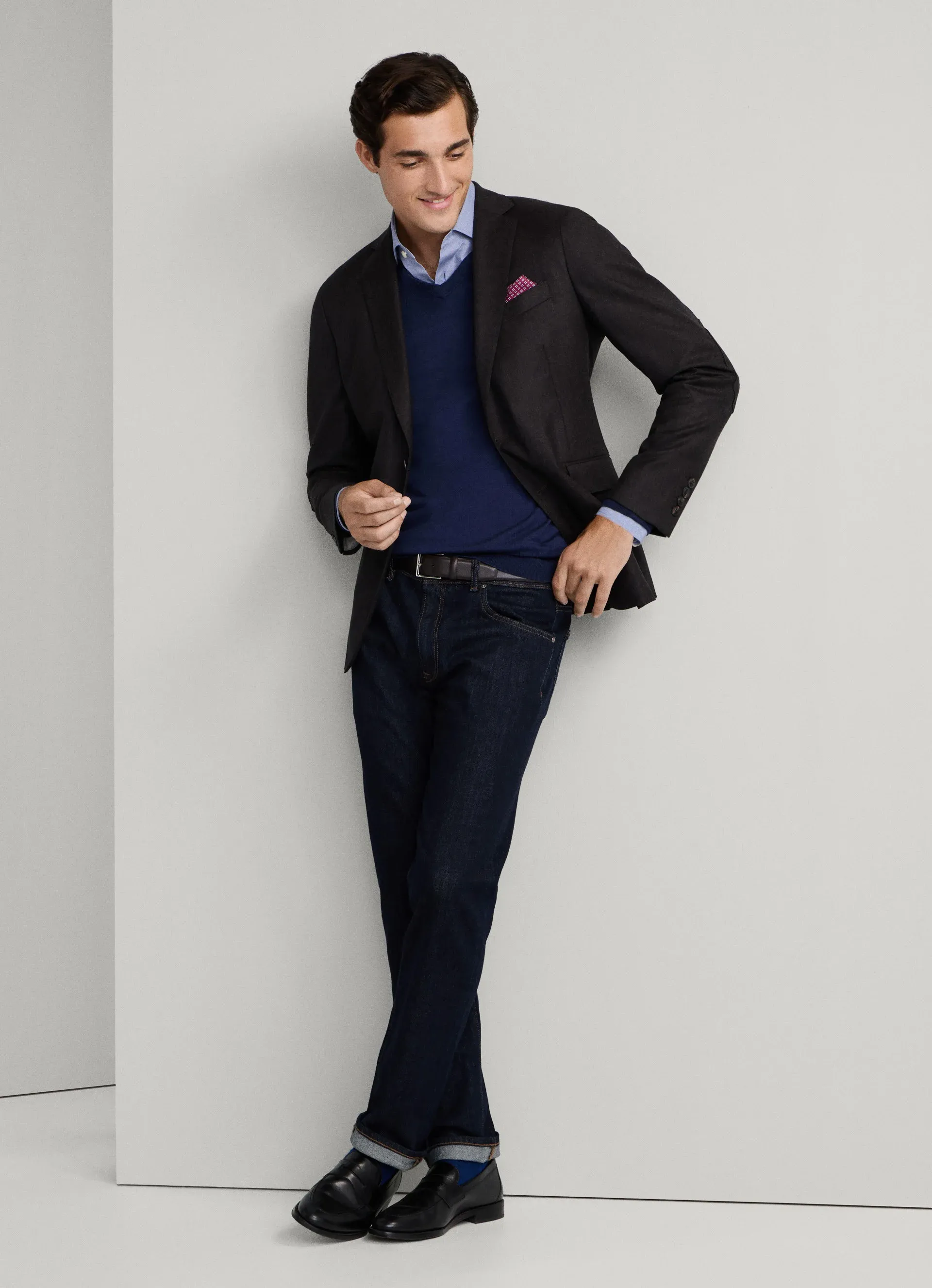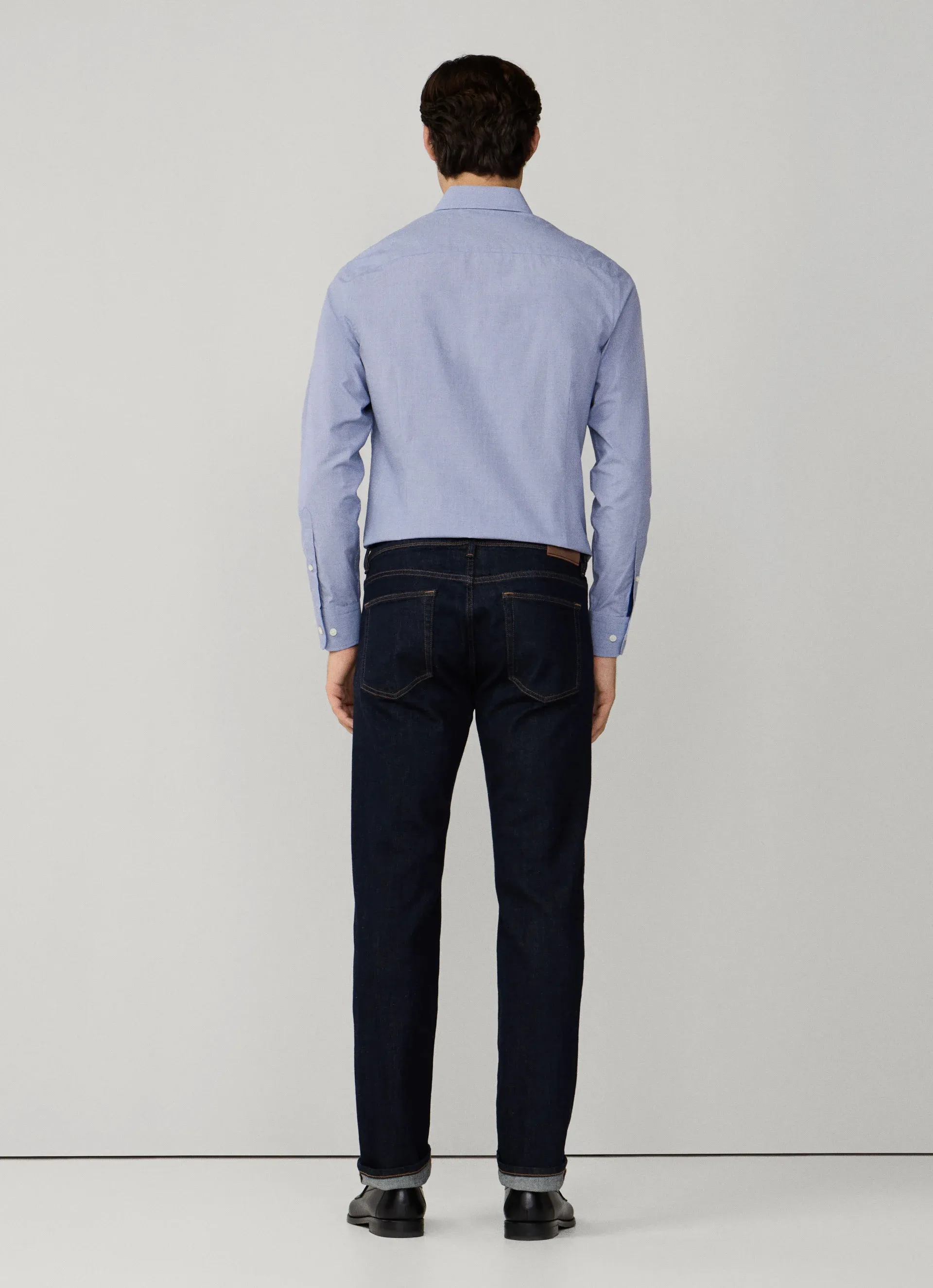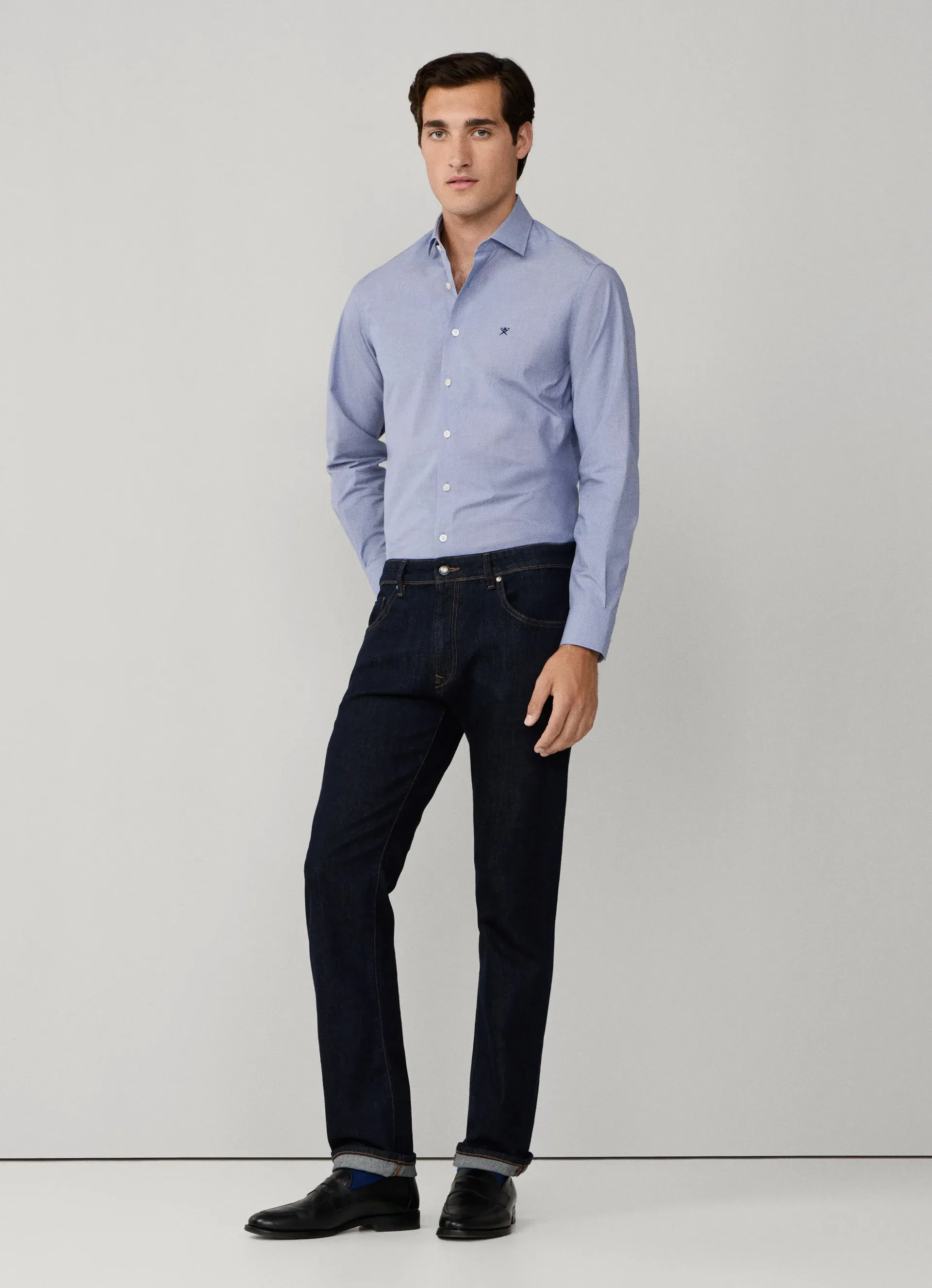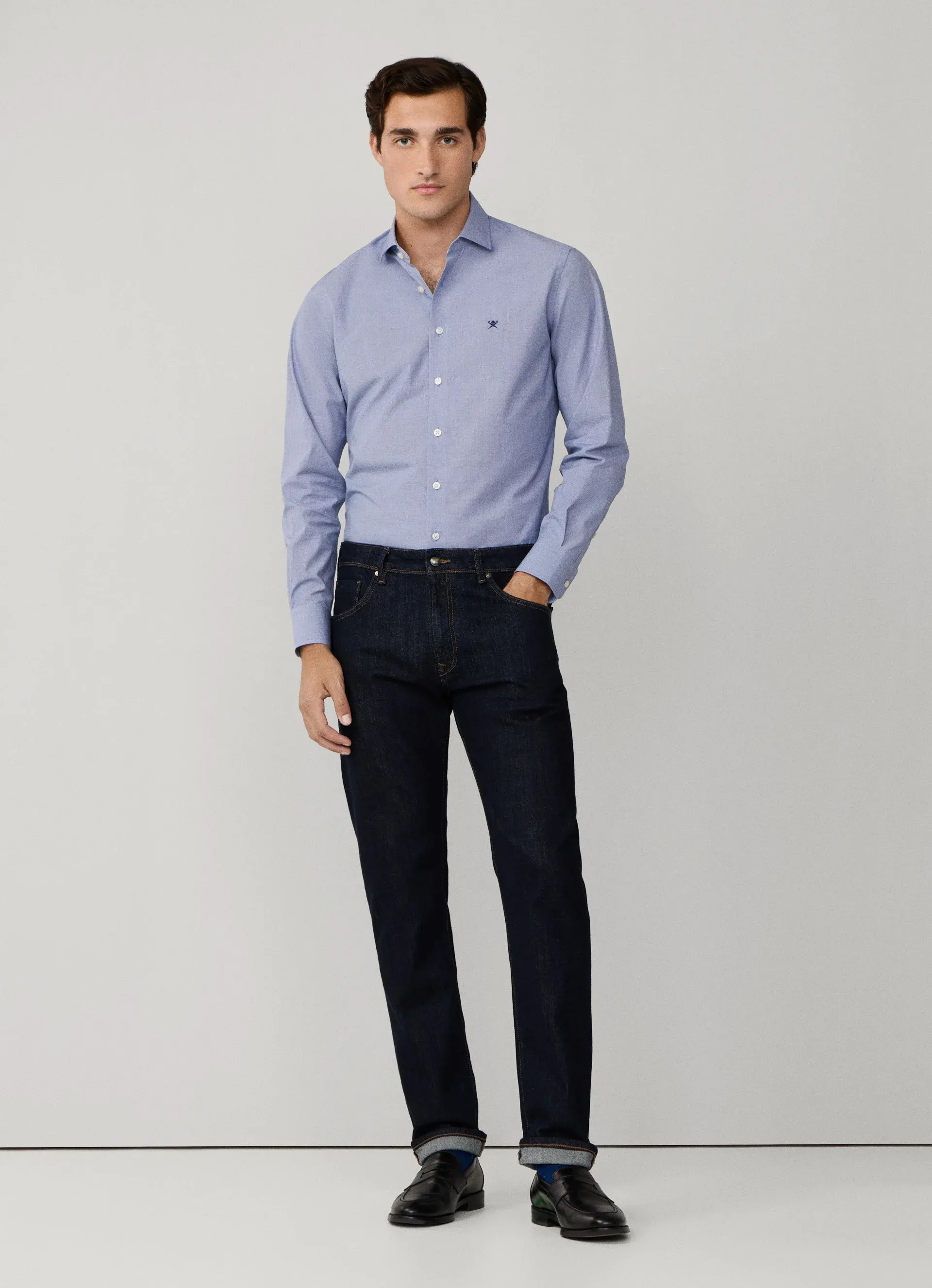 Мужские джинсы HACKETT из эластичного хлопка темно-синего цвета прямого кроя — отличный выбор для стильного гардероба. Модель оснащена пятью карманами, застежкой на молнию и накладными задними карманами. Цветная контрастная строчка, и кожаная нашивка на поясе подчеркивают фирменный стиль.