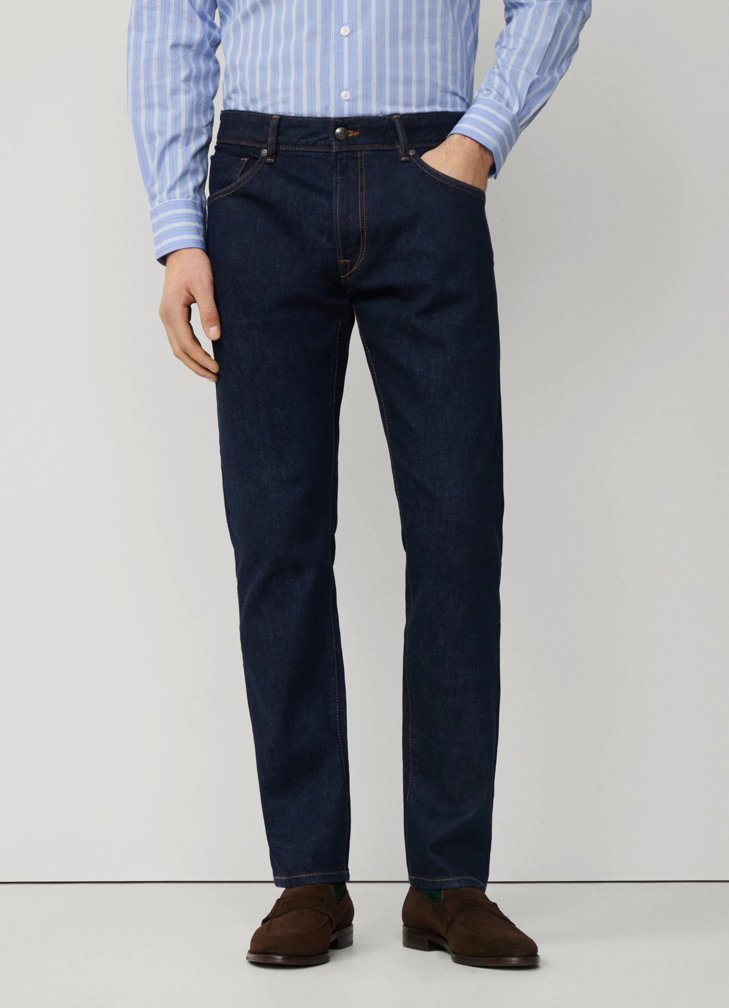 Мужские джинсы HACKETT из эластичного хлопка слегка зауженного кроя — отличный выбор для стильного гардероба. Модель оснащена пятью карманами, застежкой на молнию и накладными задними карманами. Цветная контрастная строчка, и кожаная нашивка на поясе подчеркивают фирменный стиль.