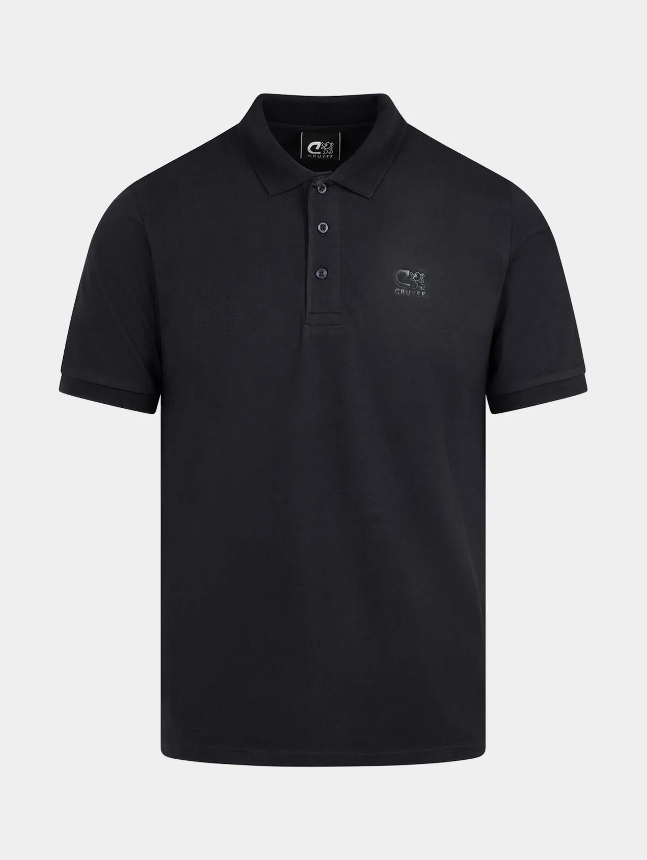 Мужское классическое поло Cruyff черного цвета выполнено из натурального дышащего хлопка. Модель застёгивается на три пуговицы и имеет декоративные боковые разрезы. Аккуратный логотип бренда на груди подчёркивает стиль и принадлежность к бренду.