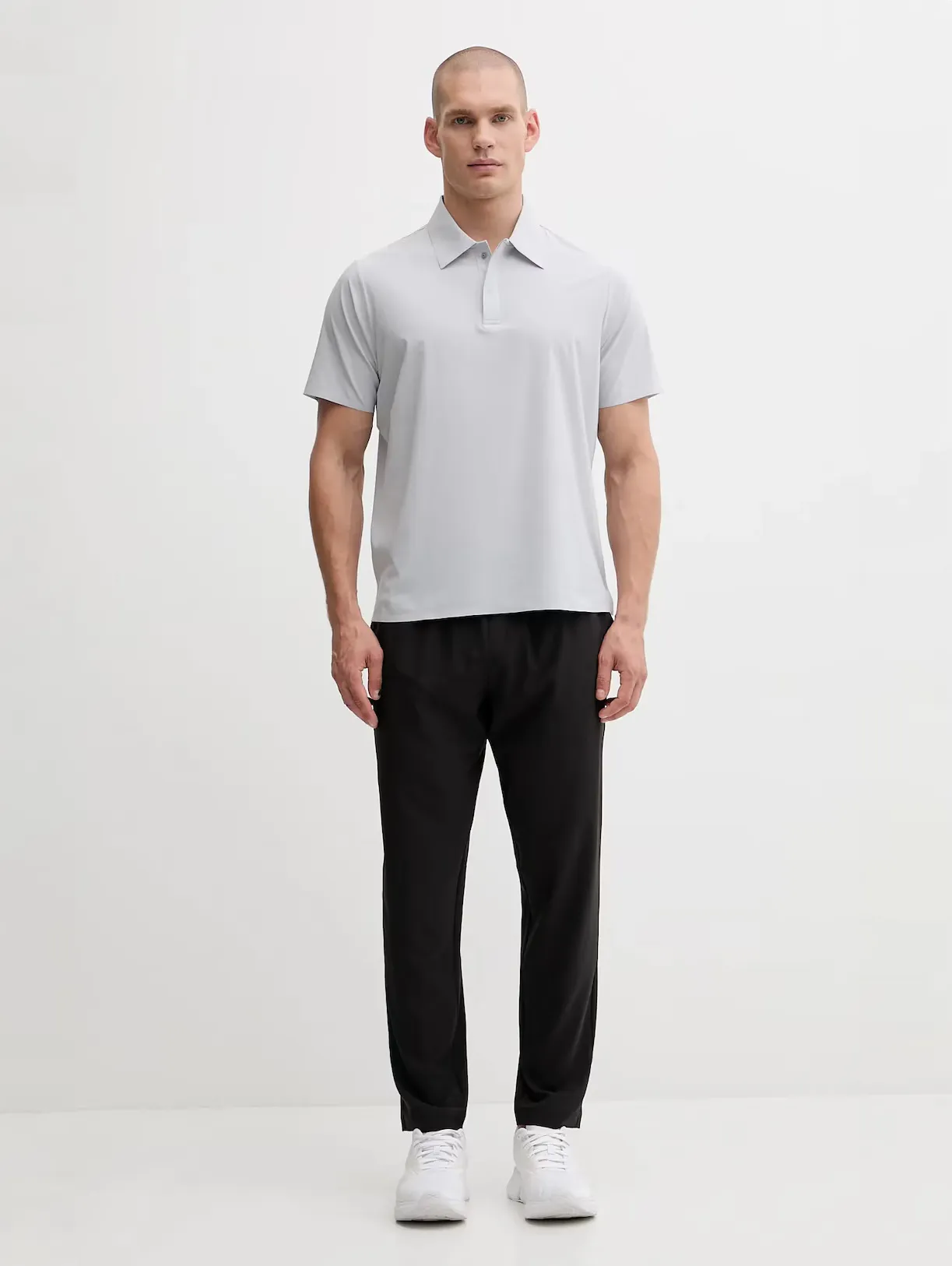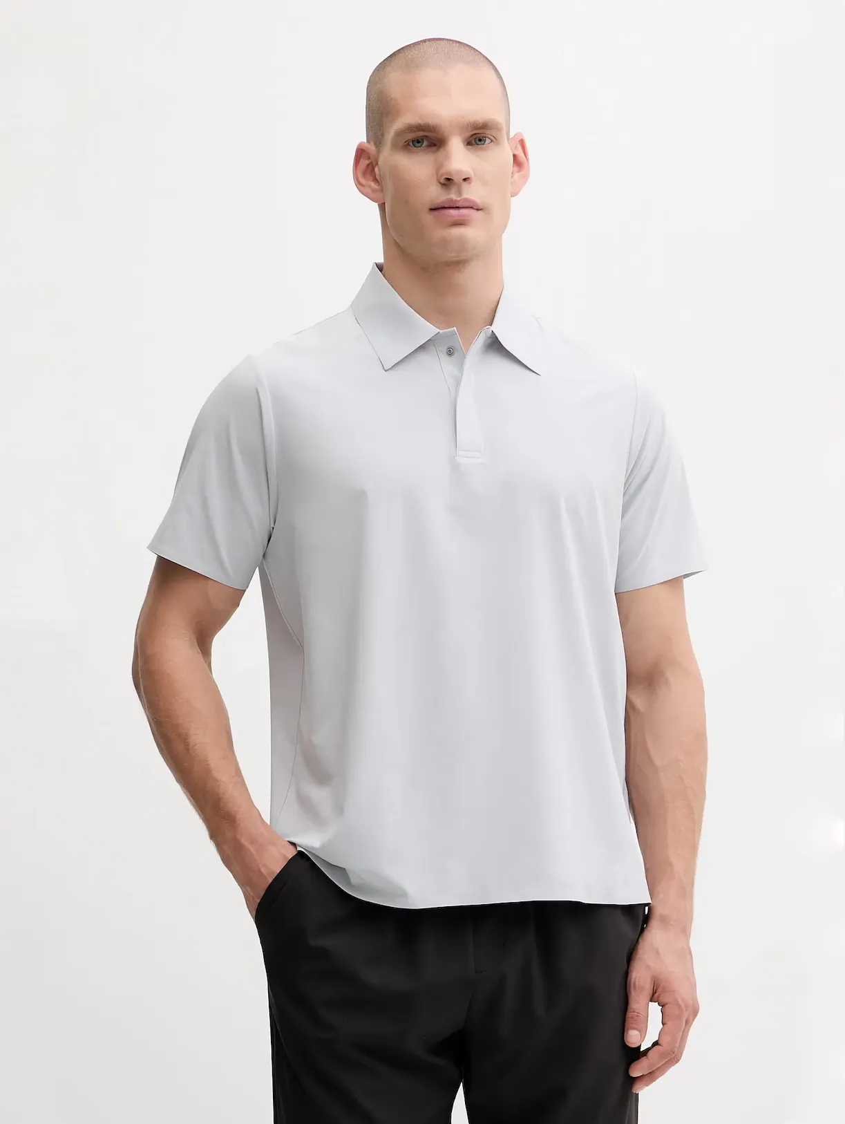 Мужская спортивная футболка поло из эластичного полиэстера с влагопоглощающими и быстросохнущими свойствами. Материал комфортен при активных нагрузках. Воротник выполнен со скрытой застежкой на кнопки.