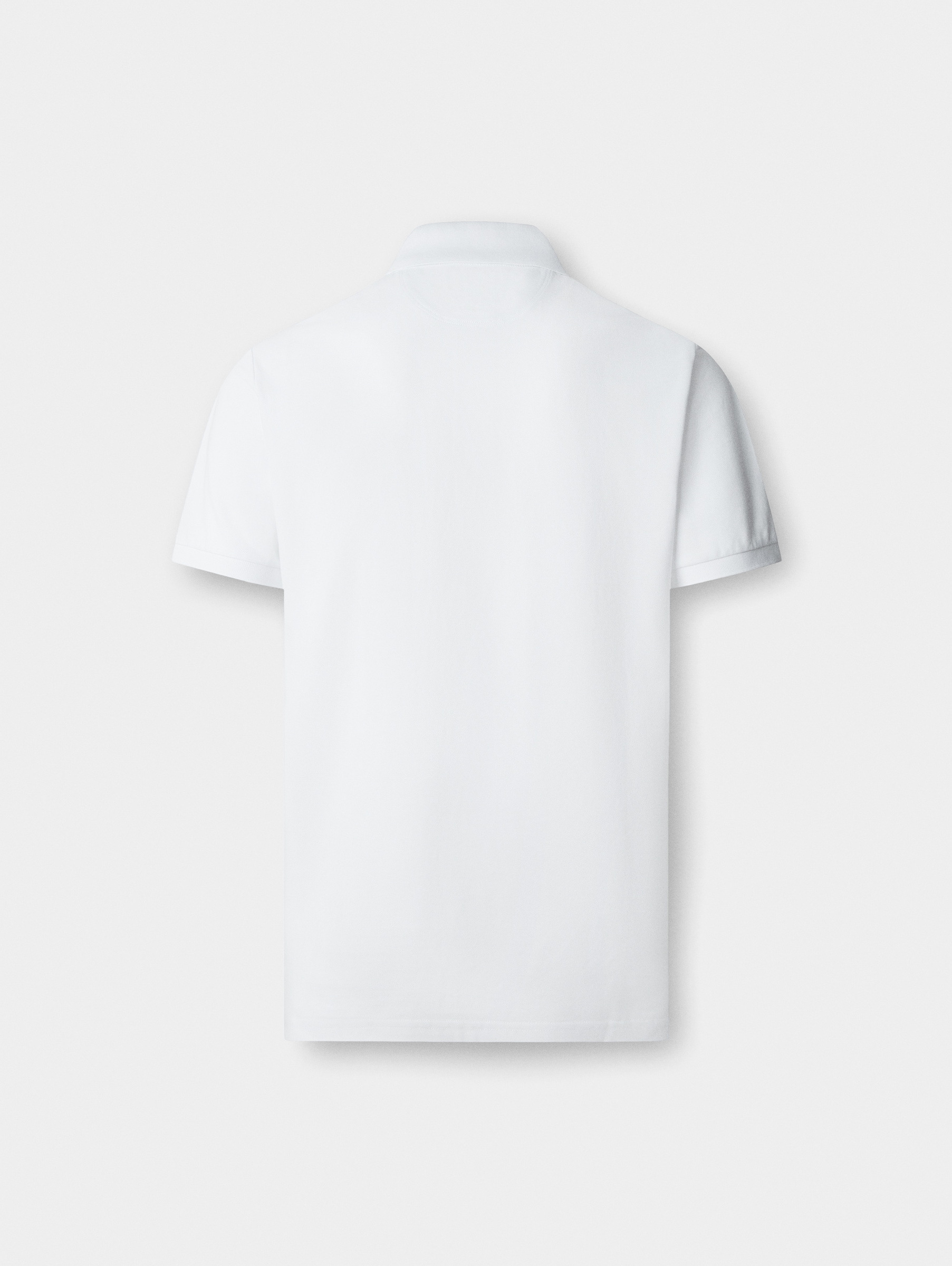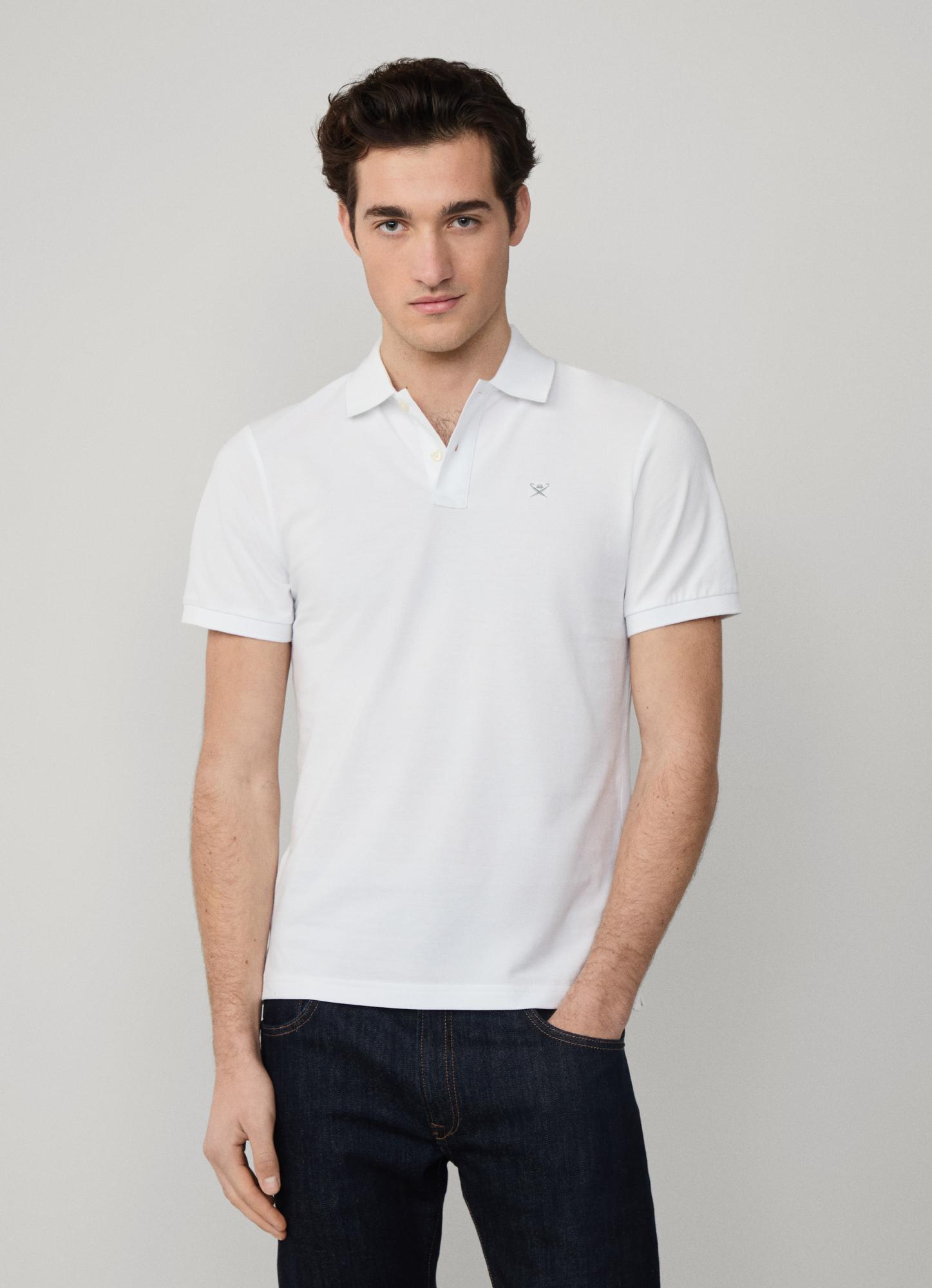 Мужское поло выполнено из 100 % хлопка. Модель имеет облегающий силуэт и короткие рукава, подчёркивающие фигуру. На груди — вышивка добавляющая фирменный акцент. Под воротником напечатан текст Hackett, а планка застёжки оснащена двумя пуговицами. Эта модель отлично подойдёт для создания как повседневных, так и более аккуратных образов.