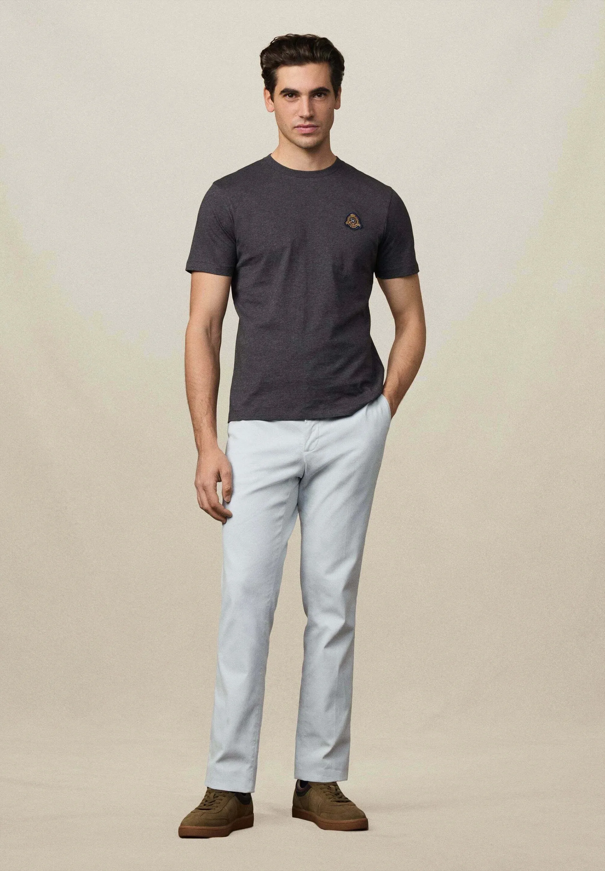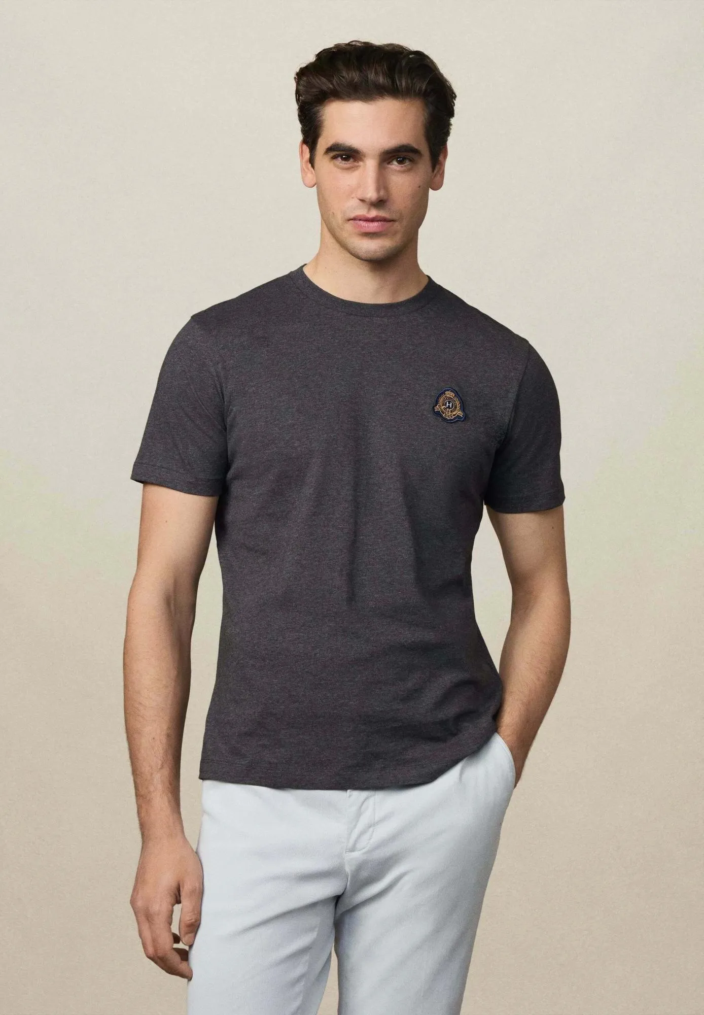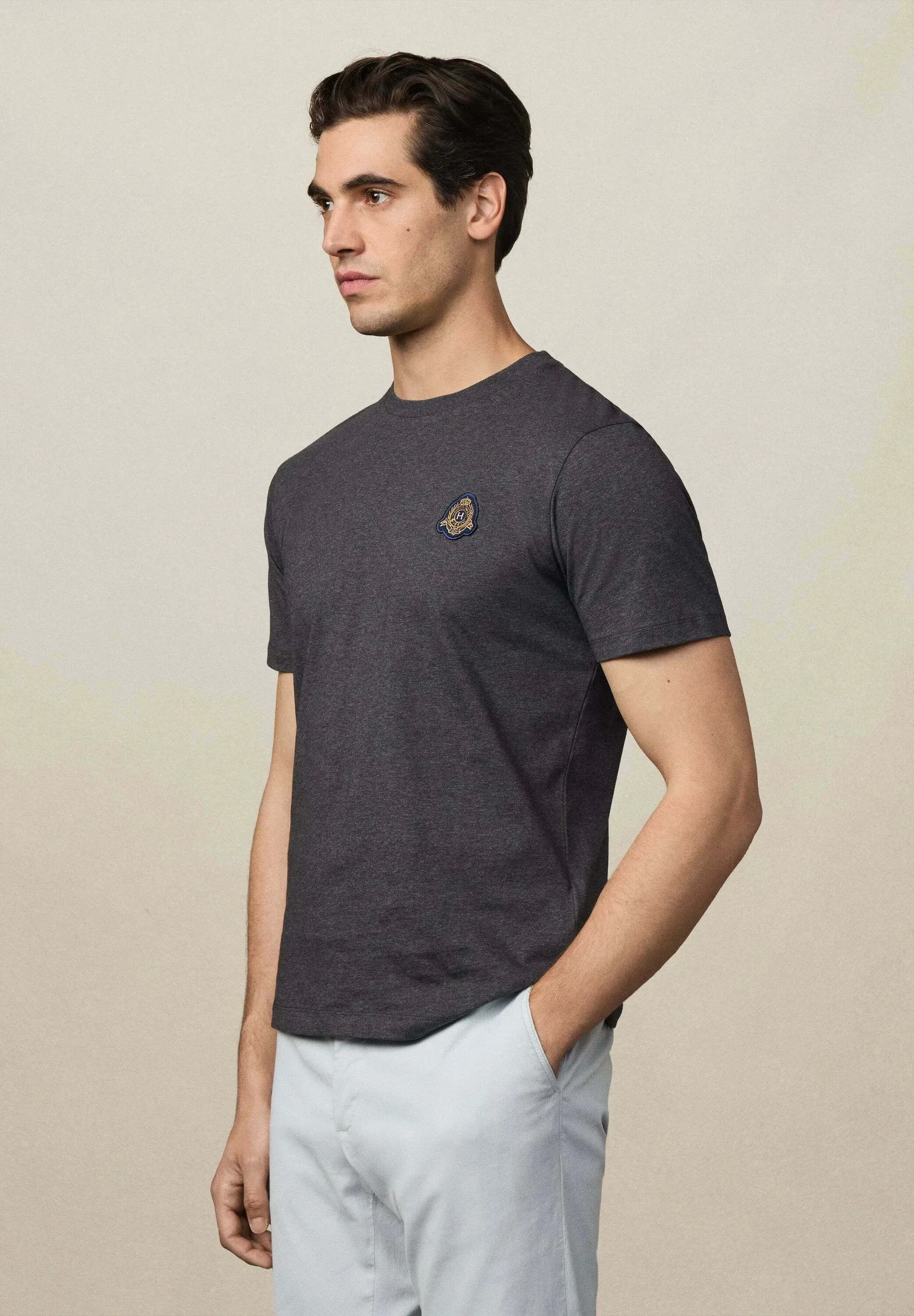 Мужская футболка Hackett London выполнена из плотного, но мягкого хлопка. Прямой крой, короткие рукава и круглая горловина обеспечивают комфортную посадку. На груди — фирменная нашивка с логотипом бренда. Лаконичный дизайн делает модель универсальной для повседневного и элегантного образа.