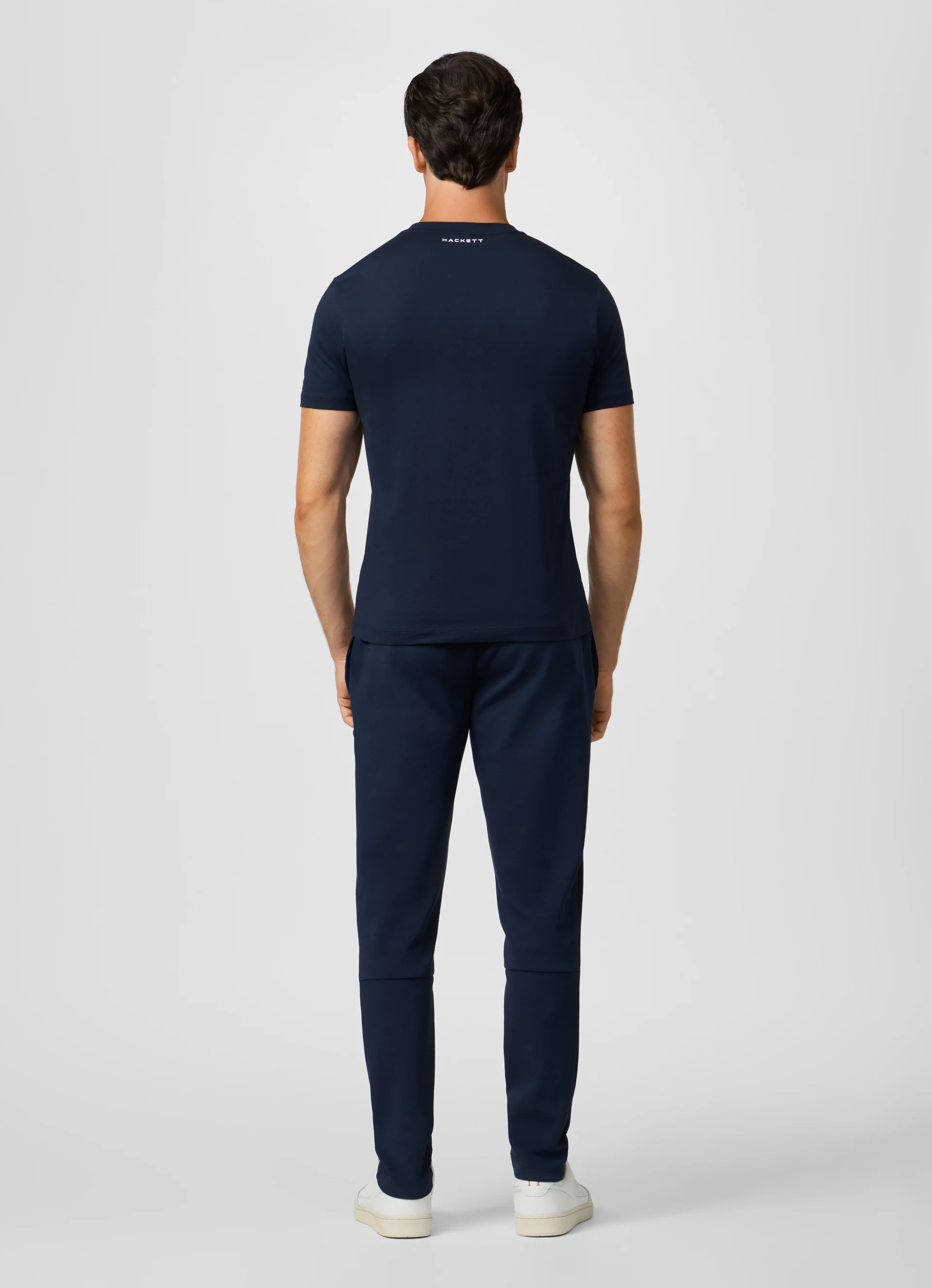 Мужская футболка Hackett London выполнена из плотного, но мягкого хлопка. Облегающий крой, короткие рукава и круглая горловина обеспечивают комфортную посадку. На груди размещен фирменный логотип бренда. Лаконичный дизайн делает модель универсальной для повседневного образа.