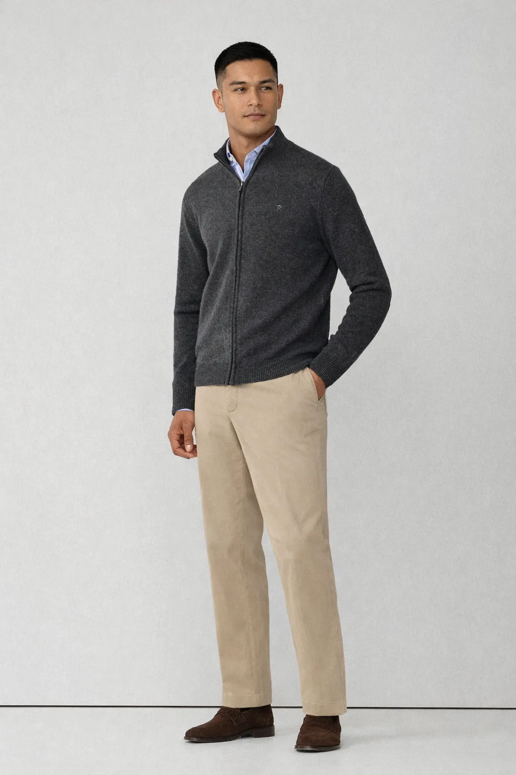 Мужской кардиган на молнии Hackett London изготовлен из эластичного трикотажа средней плотности с добавлением натуральной шерсти, обеспечивающей оптимальный температурный комфорт. Прямой крой не ограничивает движений, воротник-стойка защищает от холода. Модель дополнена эластичными манжетами и подолом, декоративными накладками на локтях и аккуратным вышитым логотипом.