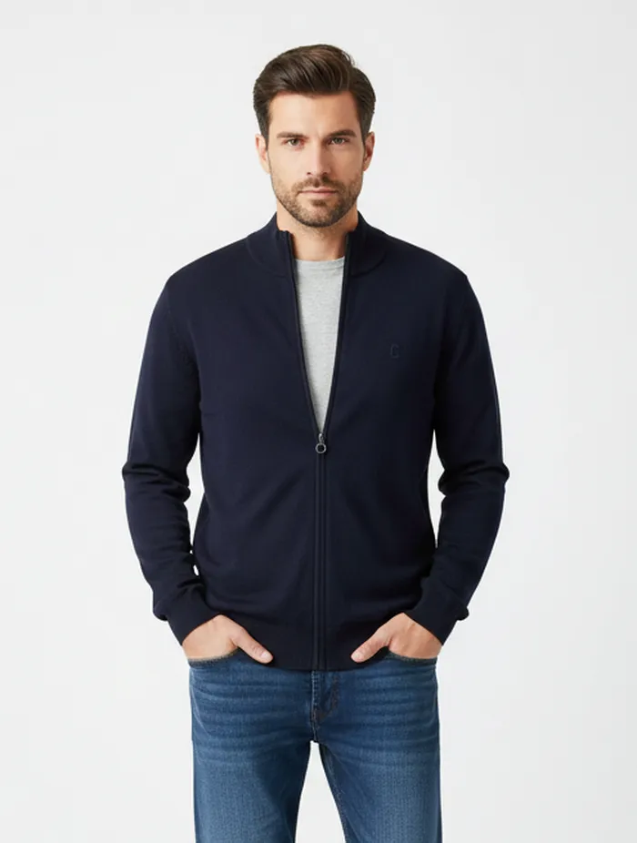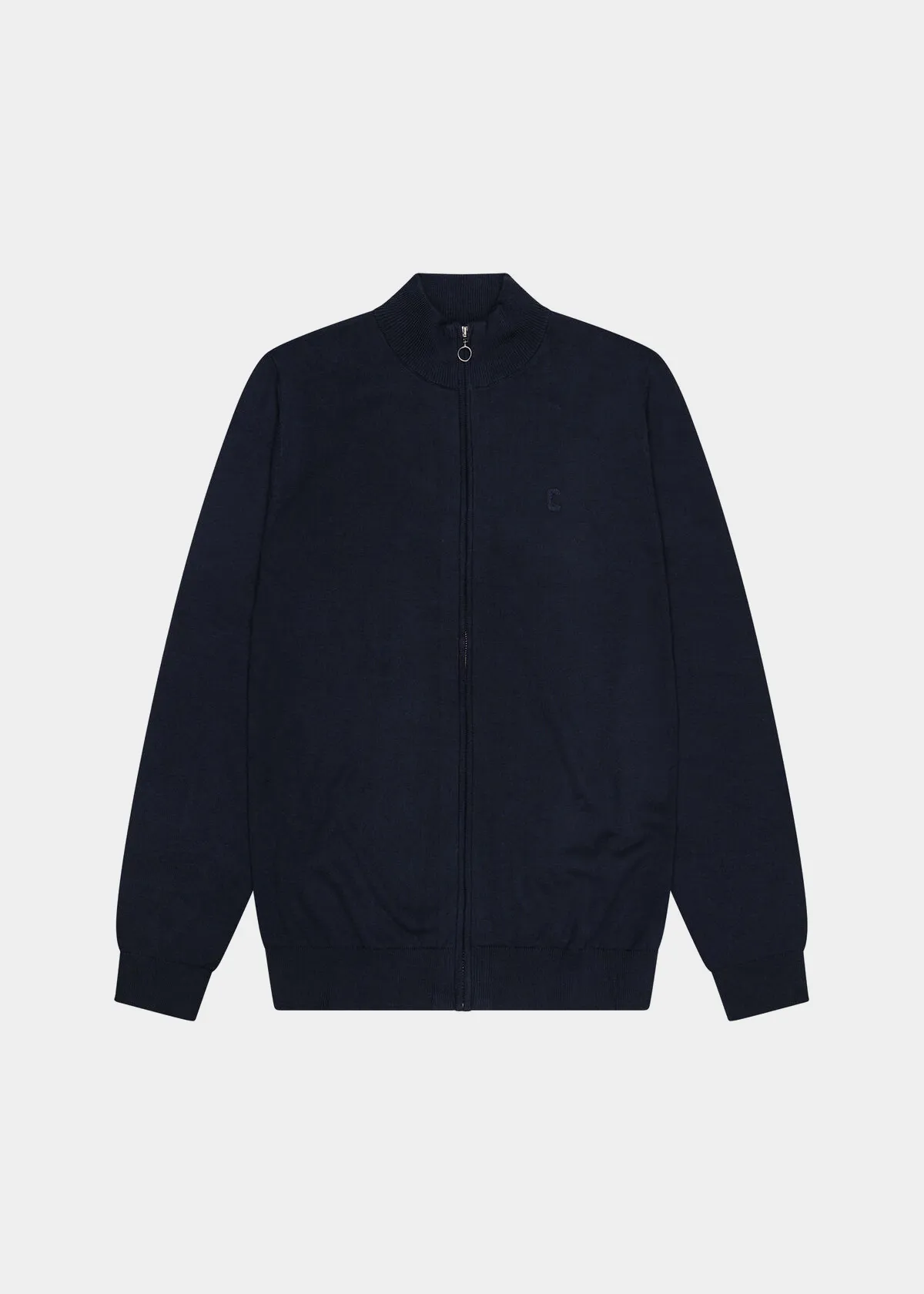 Мужской кардиган Cruyff JC Full Zip Knitted в темно-синем цвете — сочетание комфорта и элегантности. Выполнен из плотного хлопкового трикотажа, имеет прямой крой, трикотажные манжеты и воротник. Застежка-молния и вышивка «C» на груди дополняют стильный образ.