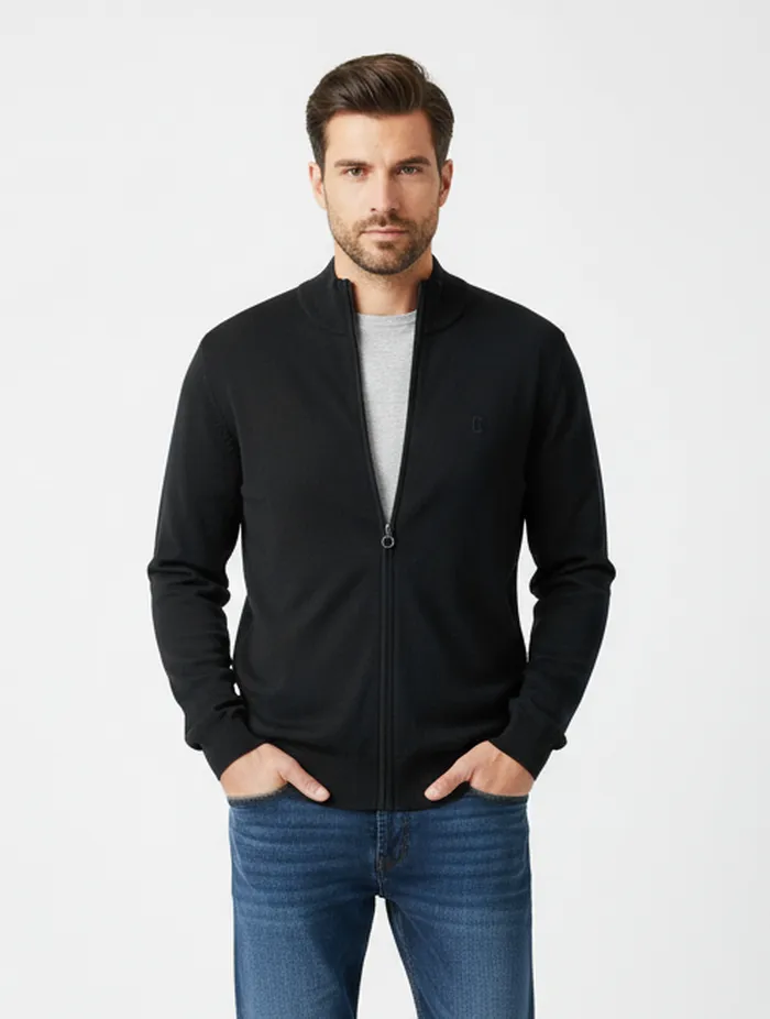 Мужской кардиган Cruyff JC Full Zip Knitted в черном цвете — сочетание комфорта и элегантности. Выполнен из плотного хлопкового трикотажа, имеет прямой крой, трикотажные манжеты и воротник. Застежка-молния и вышивка «C» на груди дополняют стильный образ.