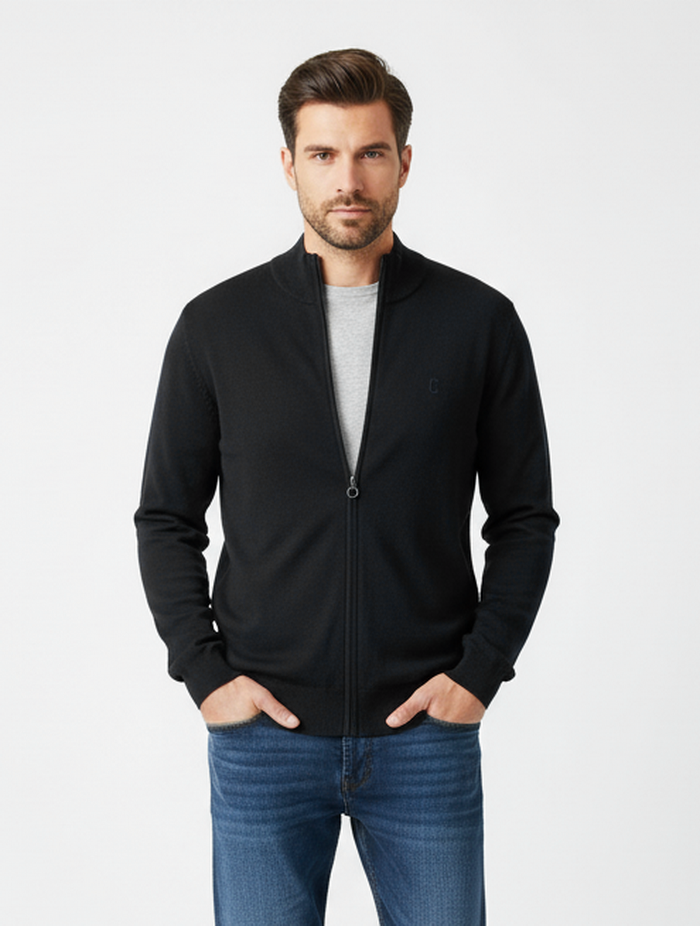 Мужской кардиган Cruyff JC Full Zip Knitted в черном цвете — сочетание комфорта и элегантности. Выполнен из плотного хлопкового трикотажа, имеет прямой крой, трикотажные манжеты и воротник. Застежка-молния и вышивка «C» на груди дополняют стильный образ.