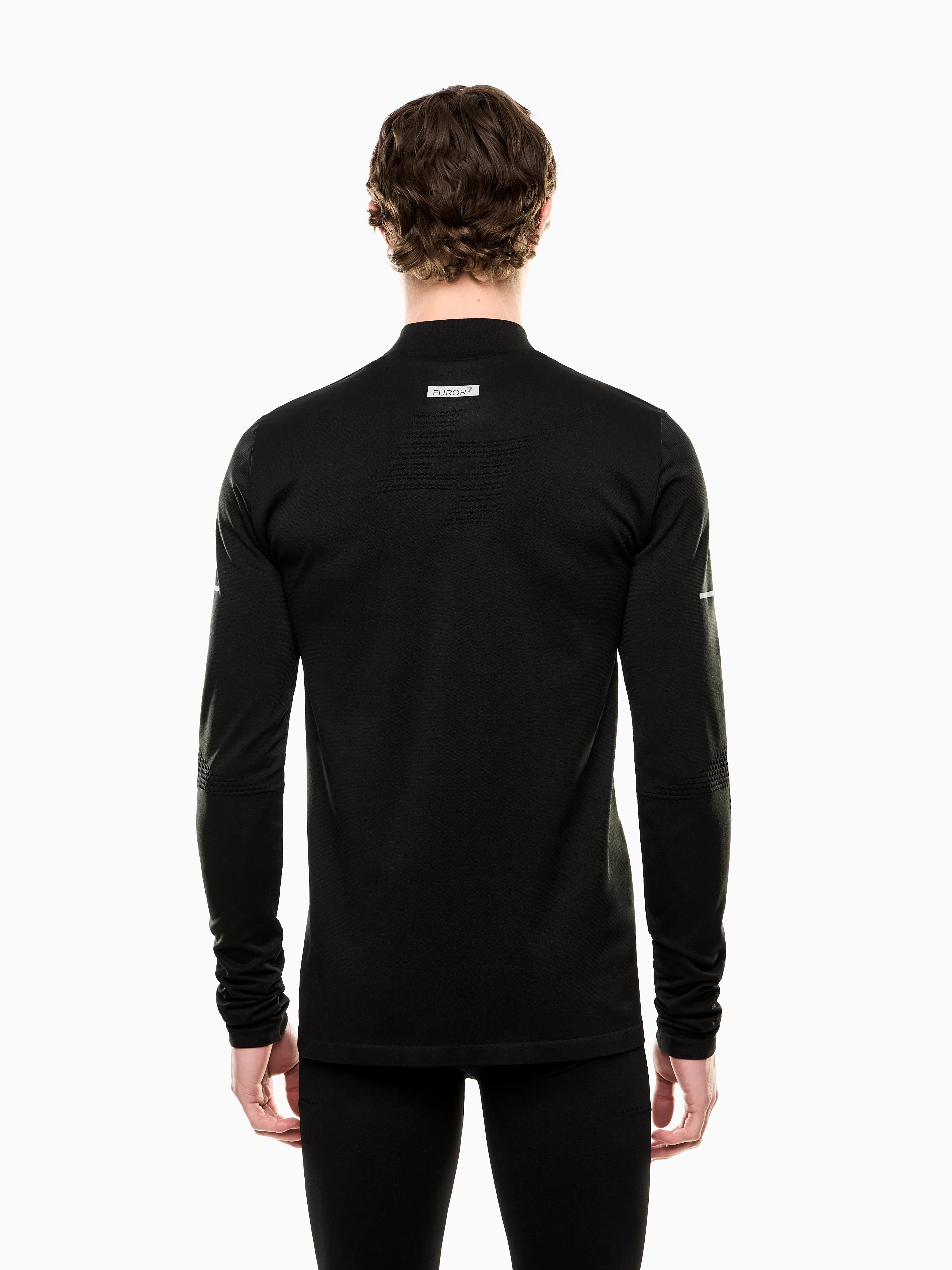 Супертонкий облегающий мужской лонгслив со светоотражающими элементами из инновационной ткани FUROR7 создан для тренировок в холодную погоду. Материал сочетает терморегуляцию и компрессионные свойства с тёплым утеплителем ARDOR7 и тонким водоотталкивающим слоем. Идеален для активных спортсменов, ценящих комфорт, защиту и свободу движений на открытом воздухе.