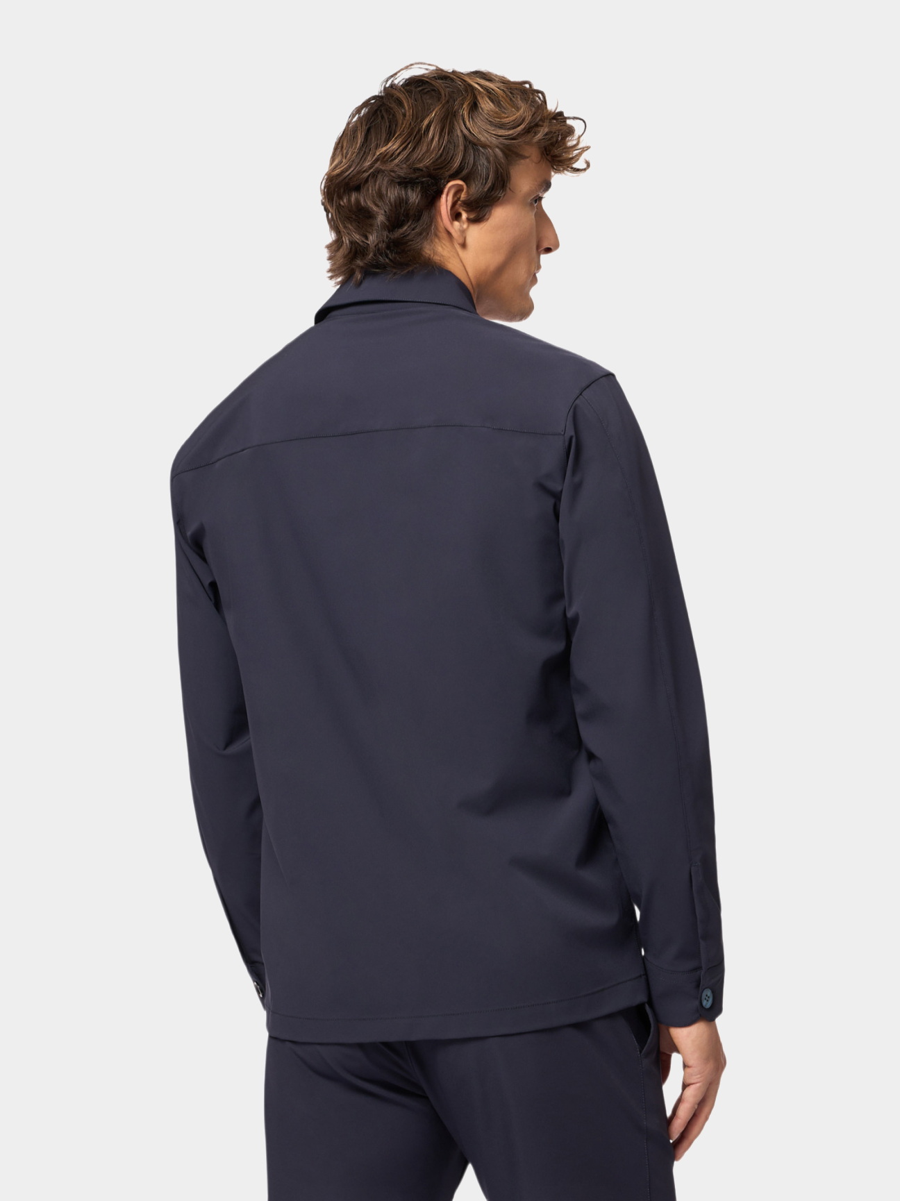 Стильная мужская рубашка выполнена из плотного гладкого материала с лёгким блеском. Модель с классическим воротником и застёжкой на пуговицы дополнена двумя накладными карманами на груди с клапанами. Прямой крой обеспечивает комфорт и свободу движений, а универсальный тёмно-синий оттенок делает рубашку идеальным выбором как для делового образа, так и для повседневного стиля.