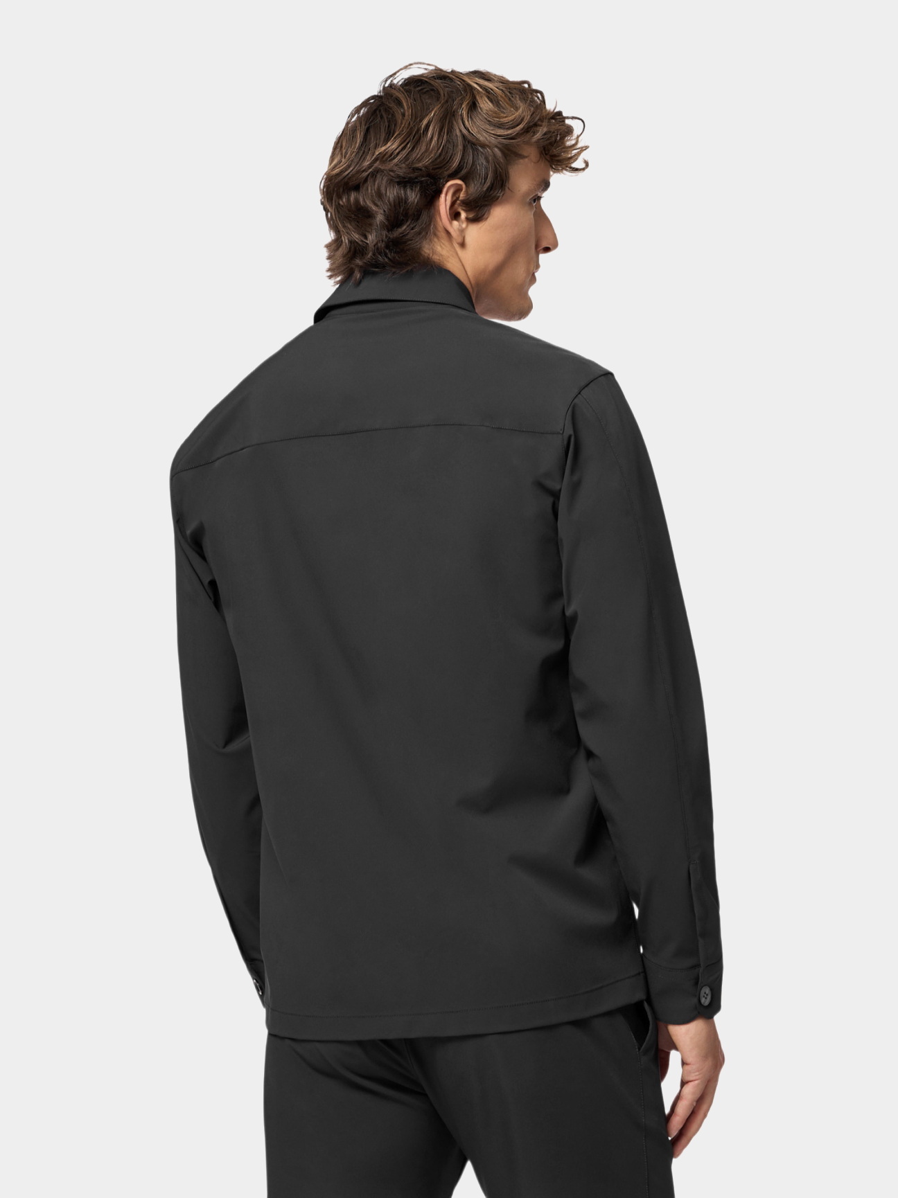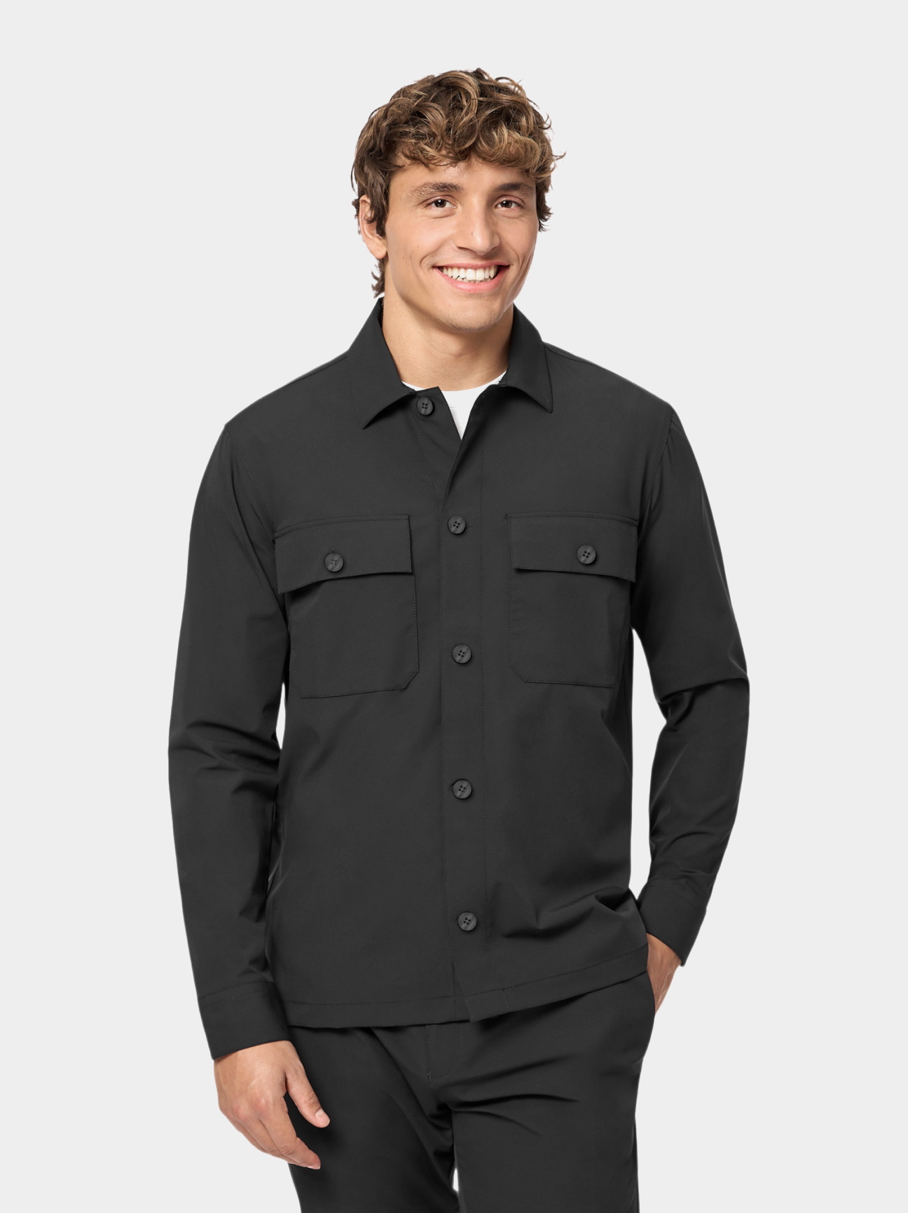 Стильная мужская рубашка прямого кроя выполнена из прочного и мягкого материала, который держит форму и обеспечивает комфорт в течение дня. Классический воротник, застёжка на пуговицы и два накладных нагрудных кармана придают модели современный и лаконичный вид. Универсальный чёрный цвет делает рубашку идеальной как для повседневных образов, так и для стильных городских сочетаний.