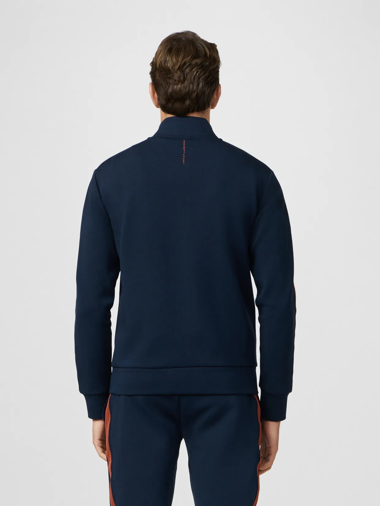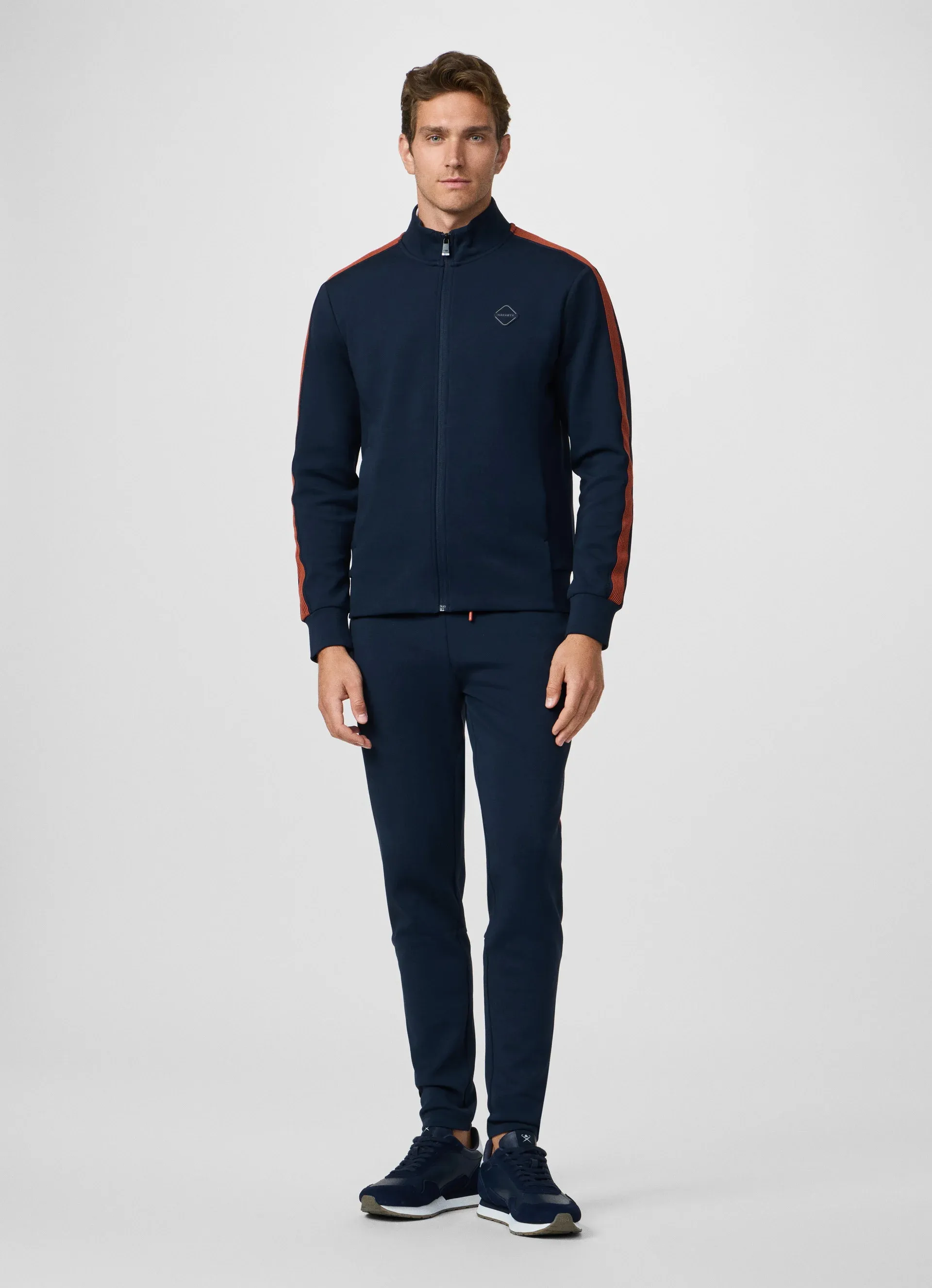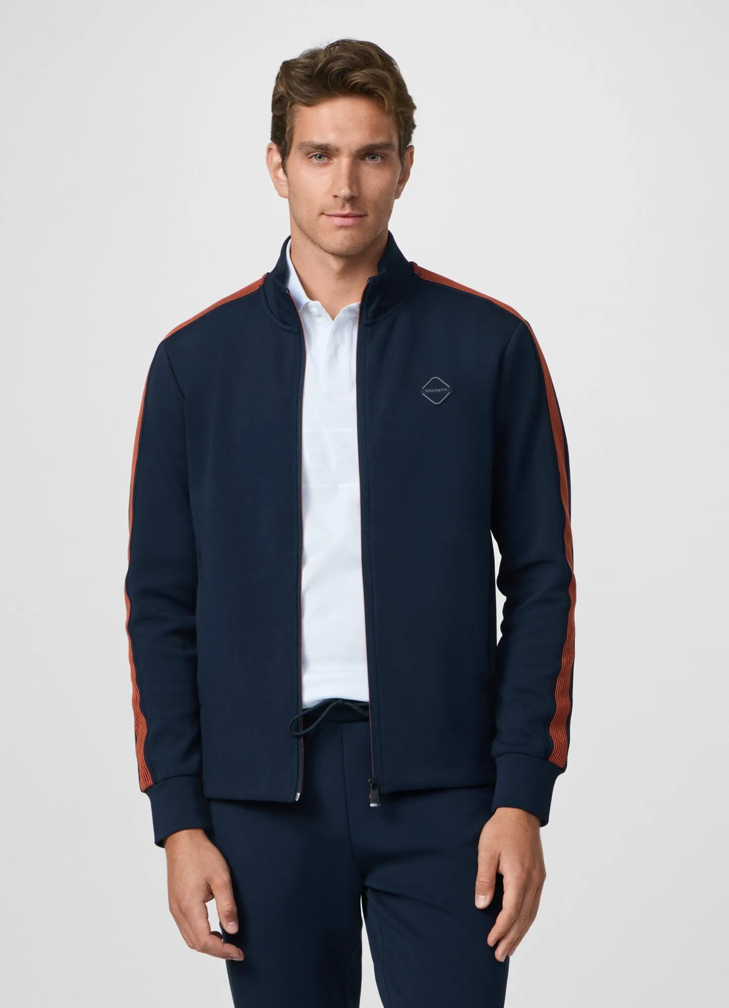Мужская толстовка выполнена из мягкого трикотажа, который обеспечивает комфорт, эластичность и приятные тактильные ощущения. Модель оснащена застёжкой-молнией по всей длине, боковыми карманами и контрастными вставками вдоль рукавов. Это универсальная вещь, которая одинаково хорошо сочетается с джоггерами и кроссовками, а также с другими элементами гардероба, добавляя стилю динамичности и комфорта.