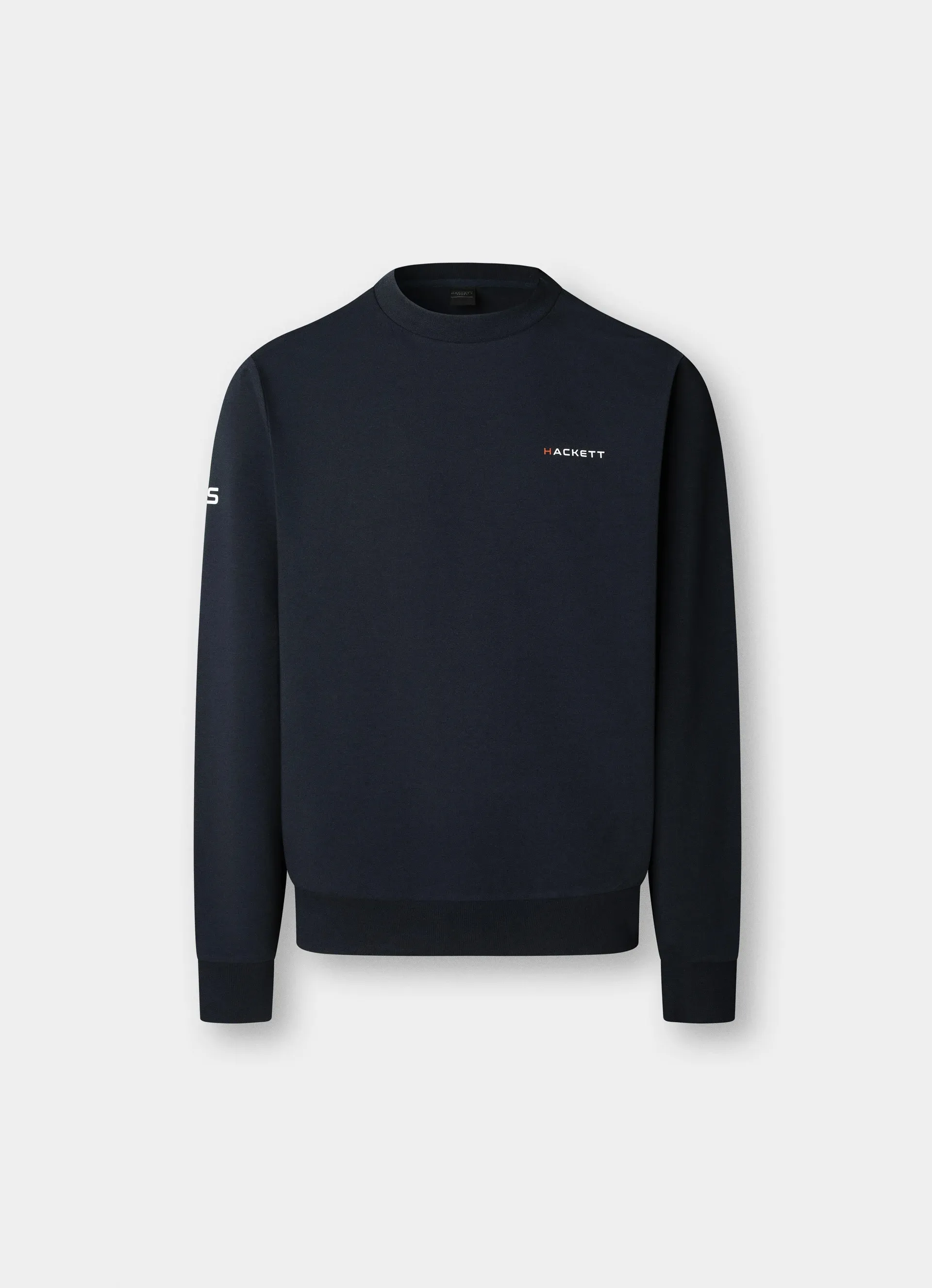 Мужской свитшот Hackett Sport с фирменным логотипом выполнен из эластичного хлопка. Модель с прямым лаконичным кроем, круглым трикотажным воротом и эластичными манжетами и низом обеспечивает комфорт.