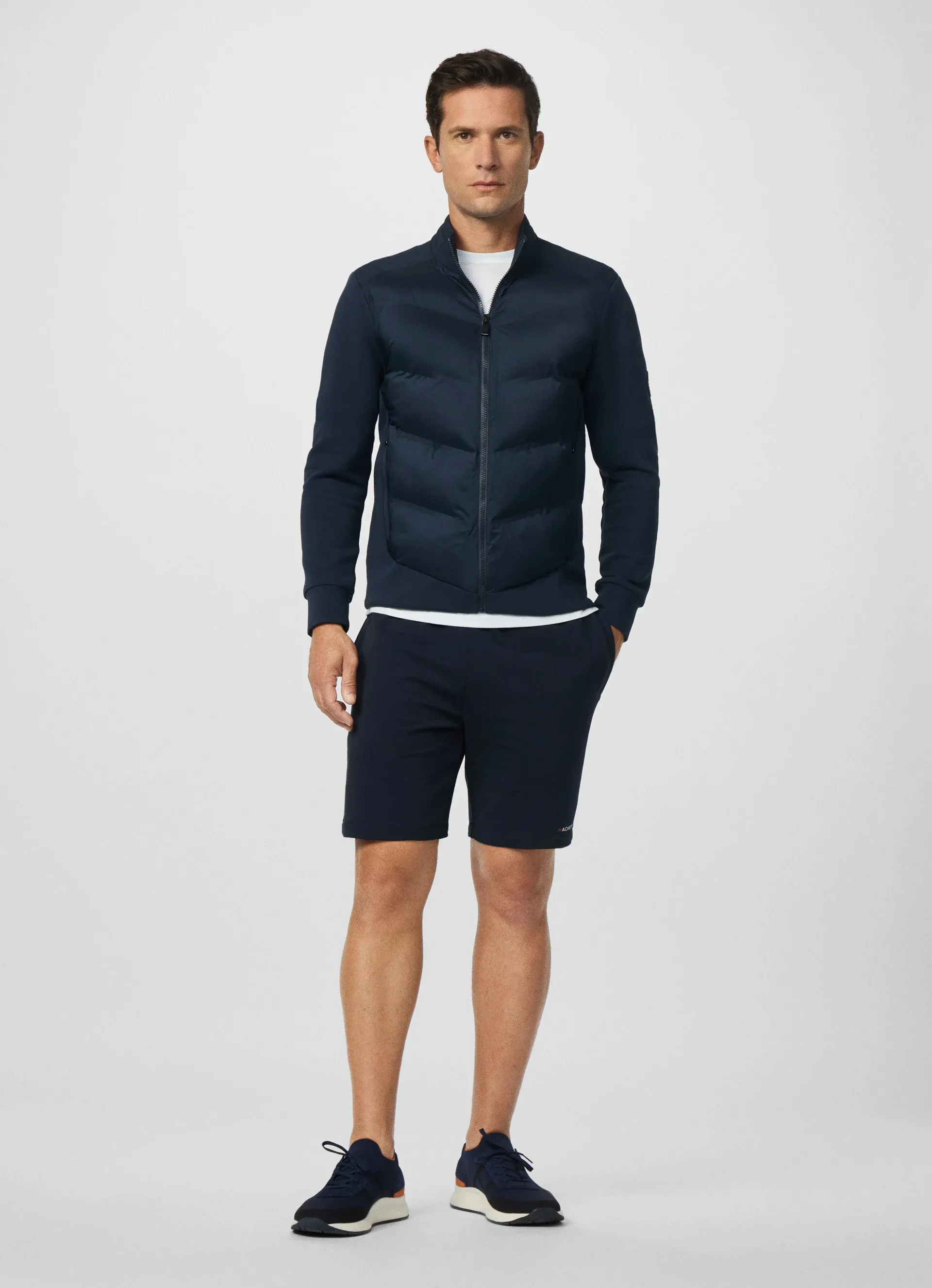 Гибридная конструкция идеально подходит для переменчивой осенне-весенней погоды. Воротник-стойка, застёжка на молнию и боковые карманы подчёркивают лаконичный дизайн. Hackett London переосмысливает британские спортивные традиции, добавляя технические детали для современной повседневной жизни.