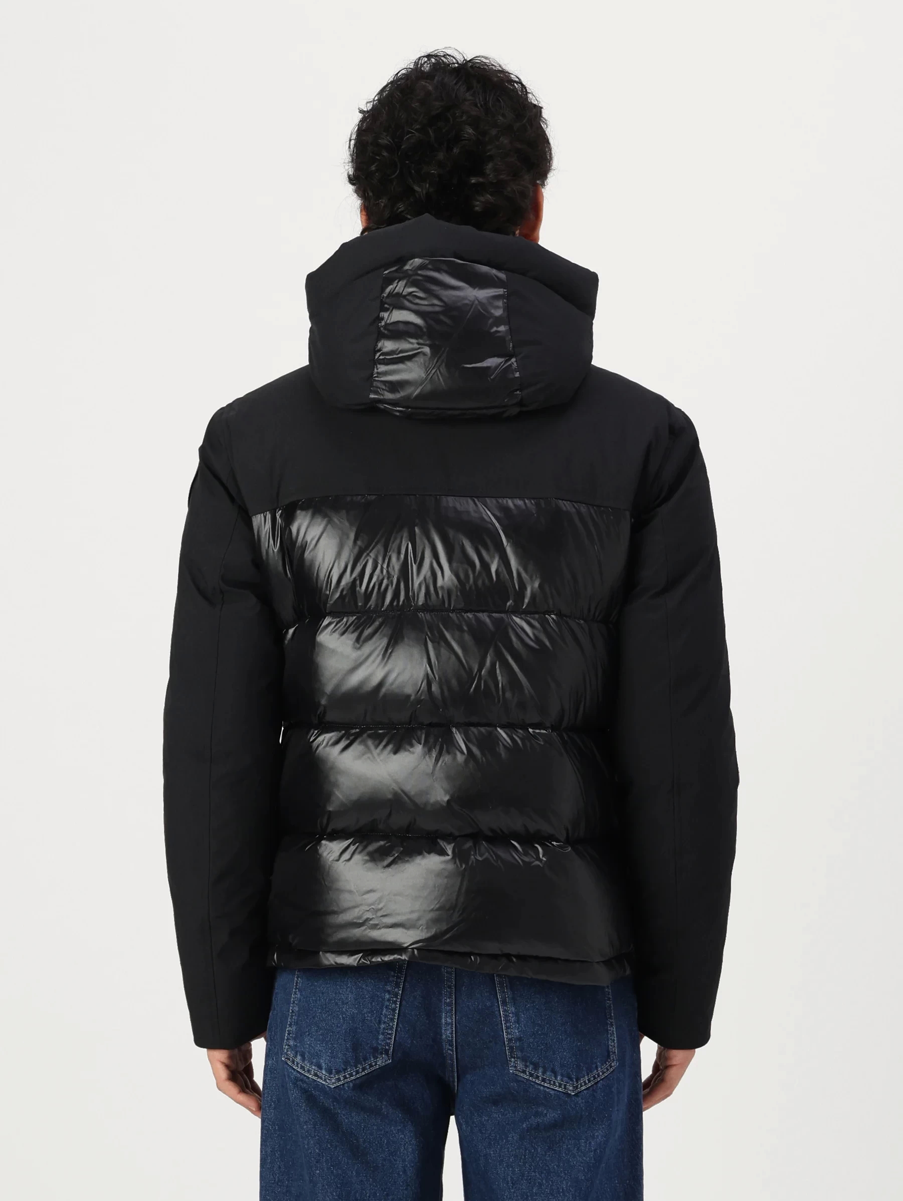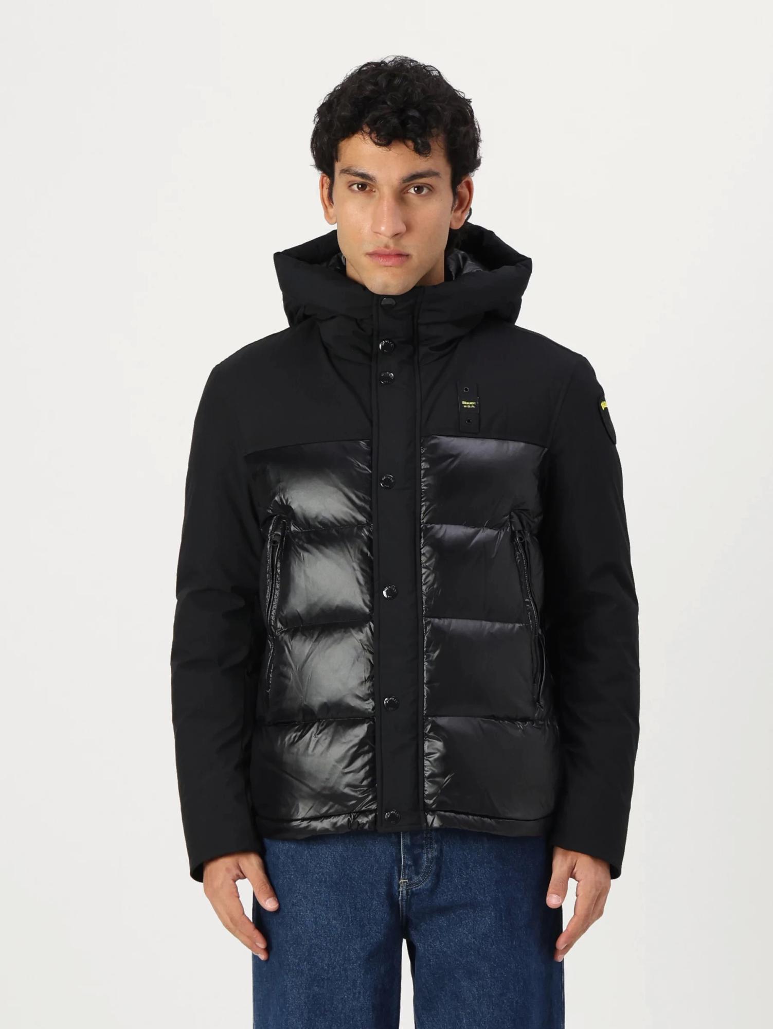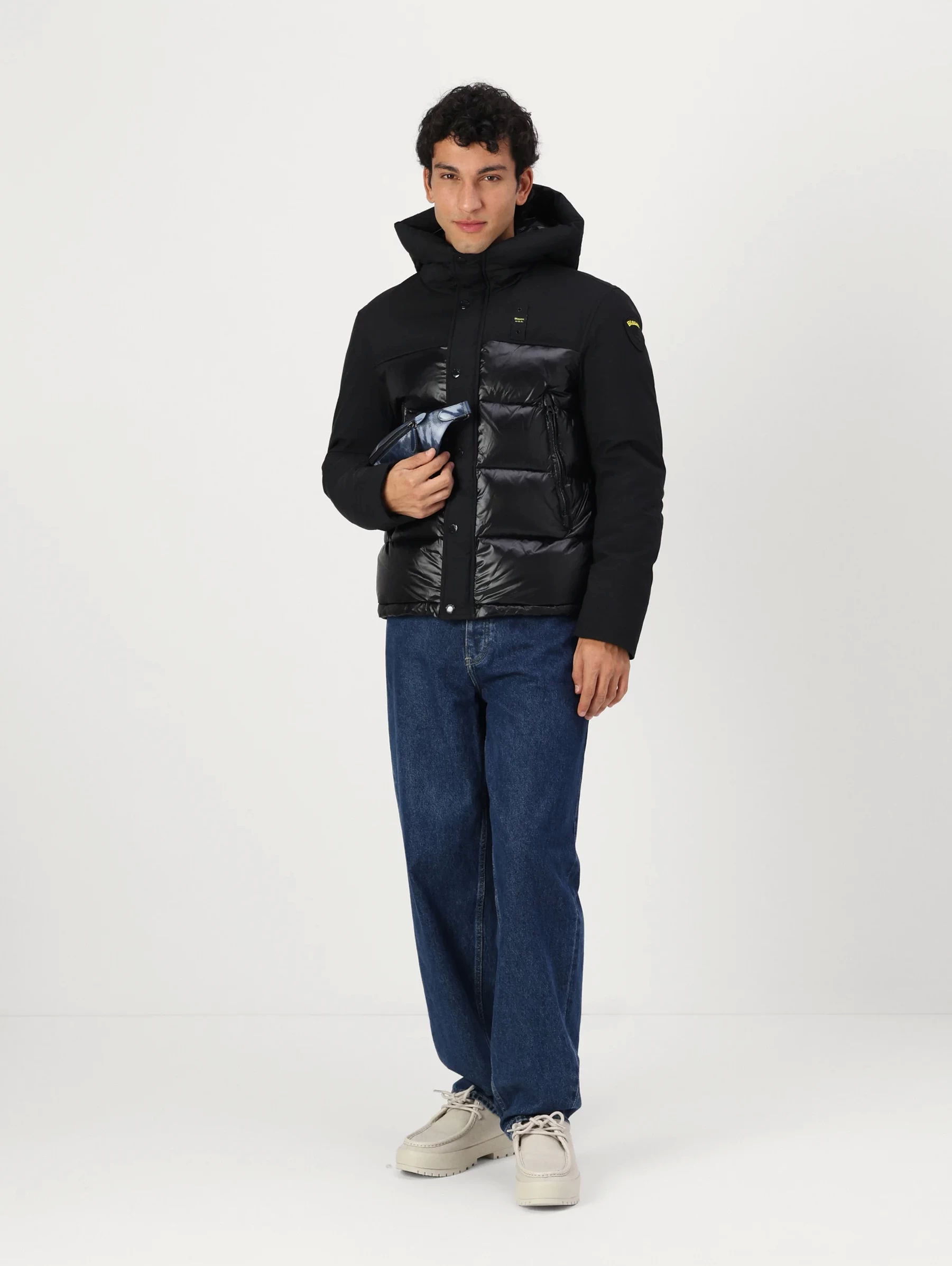Мужской стёганый пуховик с капюшоном BROOK от BLAUER выполнен из нейлона черного цвета и утеплён натуральным пухом 90/10. Застёжка на молнию и кнопки обеспечивает защиту от холода, а боковые карманы на молнии добавляют удобства. Лёгкая и тёплая модель в лаконичном стиле идеально подойдёт для зимнего сезона.