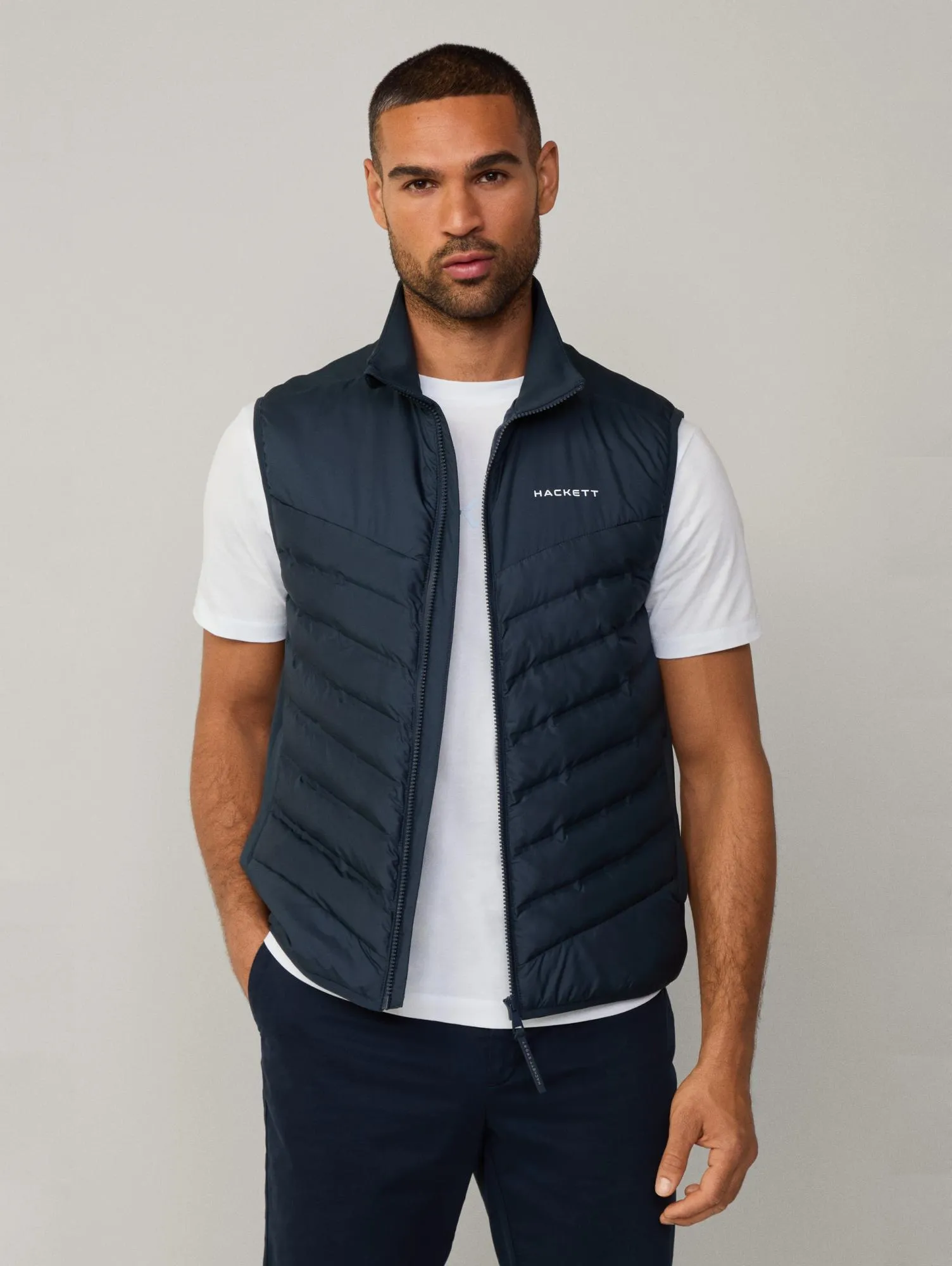 Лёгкий и удобный жилет Hackett — отличный выбор для активных дней. Мягкая стёжка, эластичные вставки по бокам и спине дают свободу движений. Классический крой, контрастный логотип на груди и практичные карманы на молнии делают этот жилет стильным и удобным. Подходит для весны, осени и прохладных дней. Универсальный вариант на каждый день.