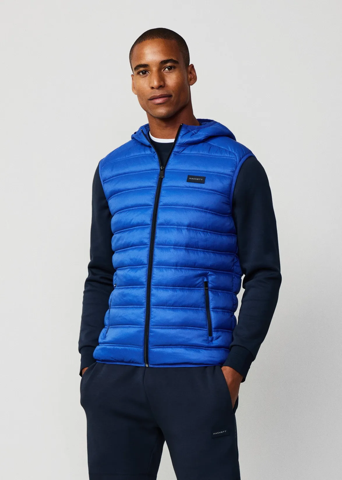 Мужской утепленный жилет HACKETT SPORT с капюшоном, синего цвета — стильная защита от холода. Стеганый жилет из нейлона. Молния по всей длине, боковые карманы на молнии. Логотип на груди подчеркивает фирменный стиль.