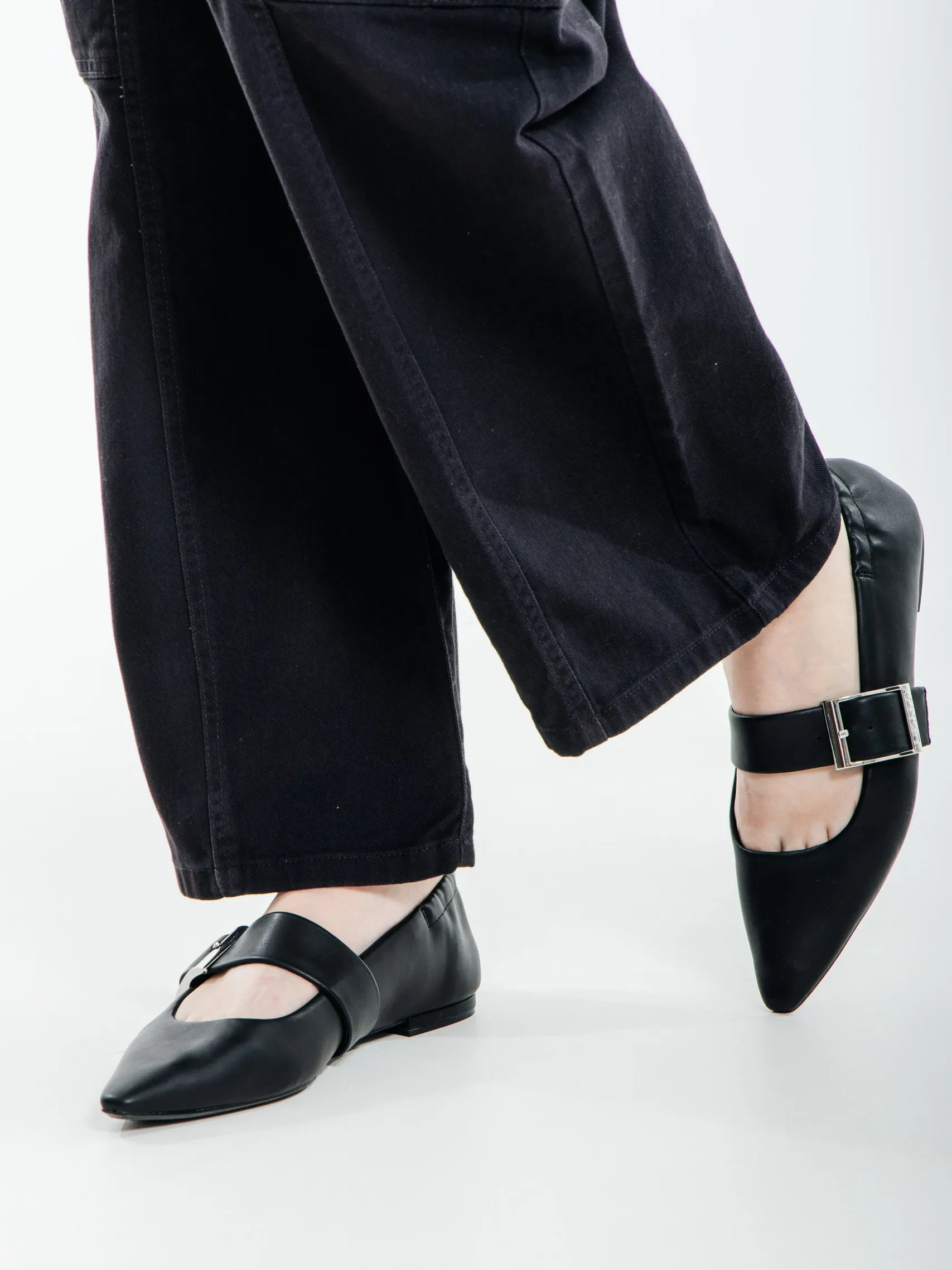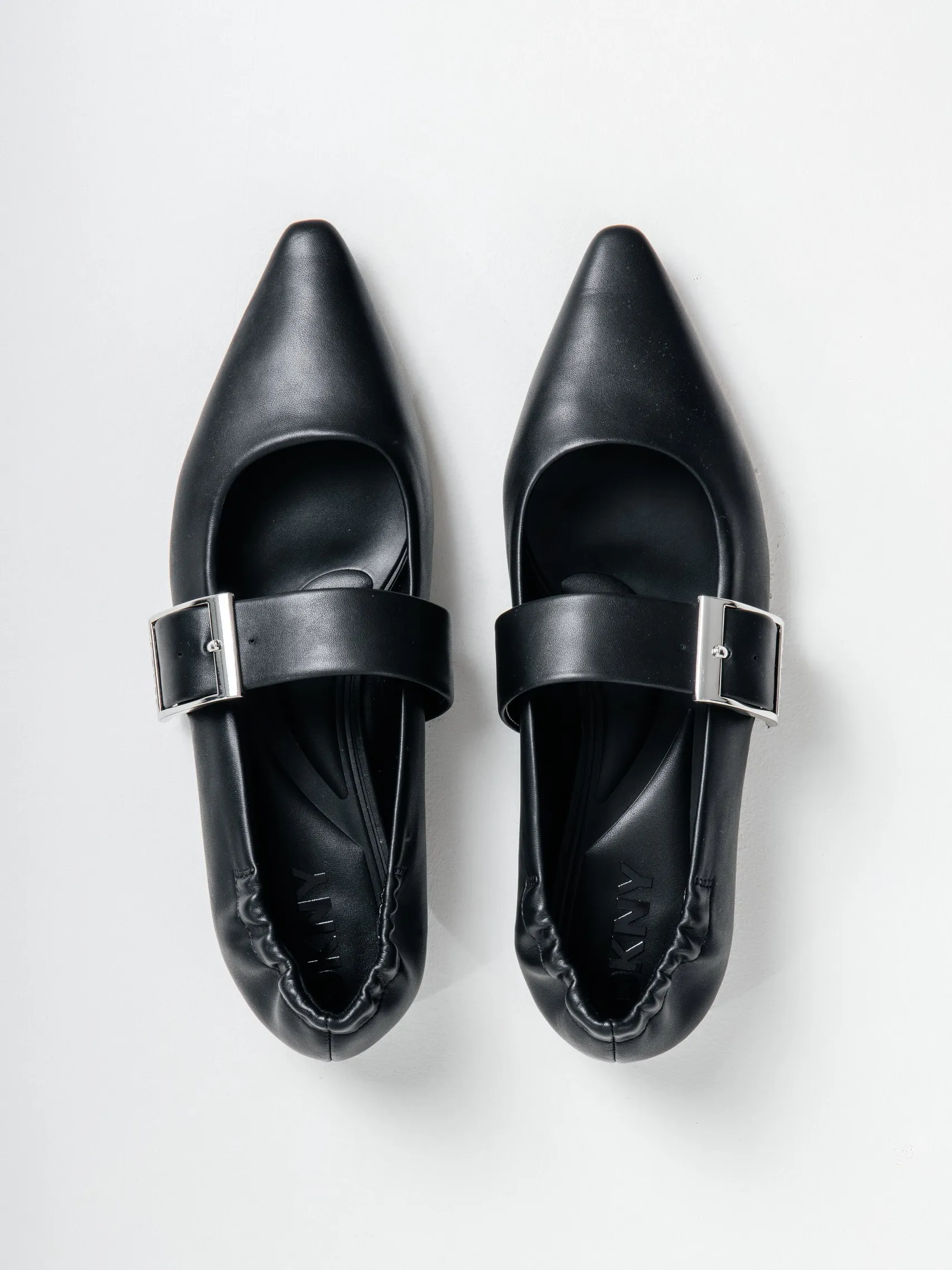 Женские балетки DKNY из чёрной экокожи с острым носком и эластичным задником, который бережёт пятку от натираний. Профилированная стелька поддерживает свод стопы и дарит комфорт на протяжении всего дня. Прочная резиновая подошва устойчива к износу, а застёжка на пряжке позволяет подогнать посадку по ноге.
