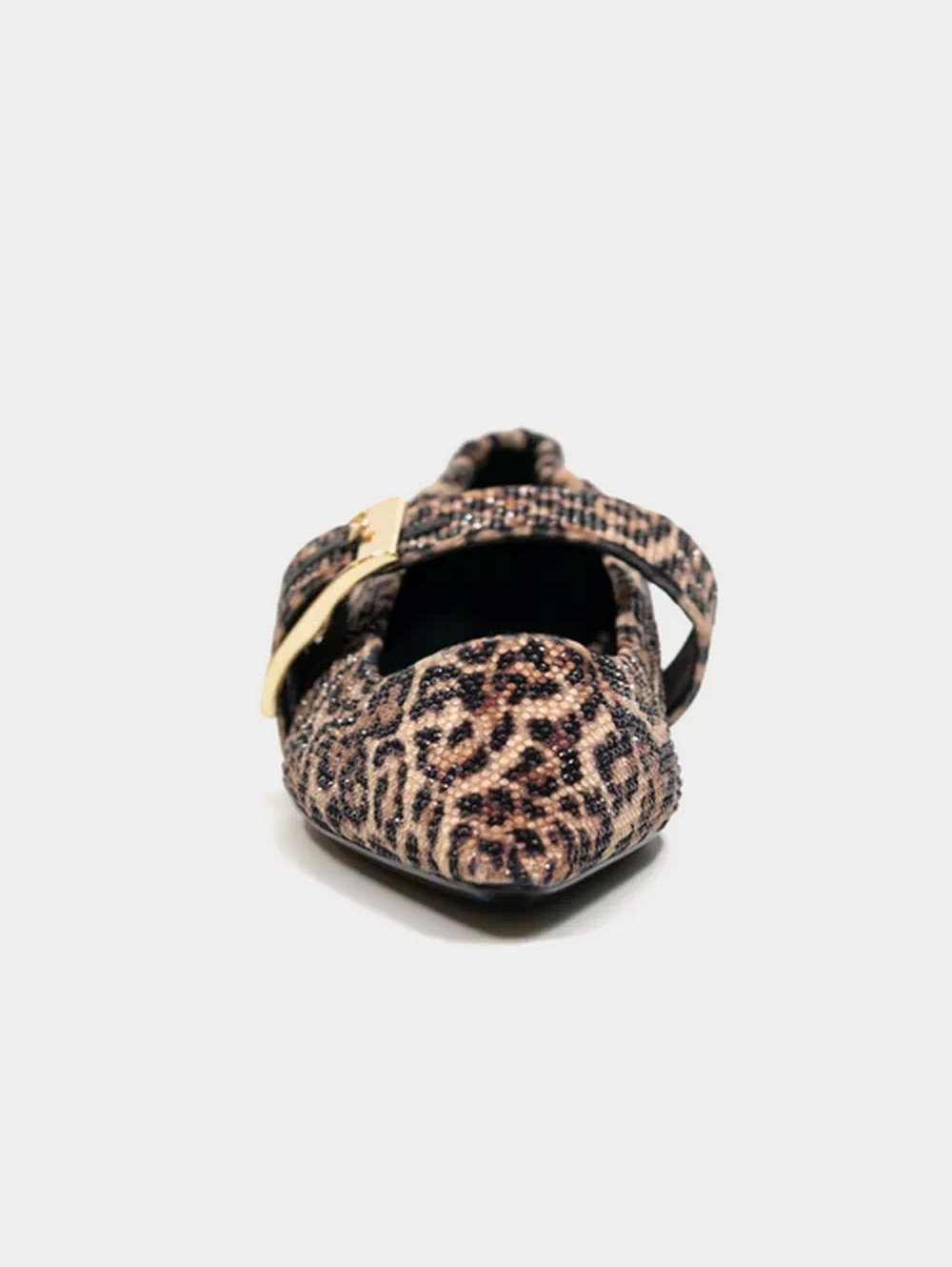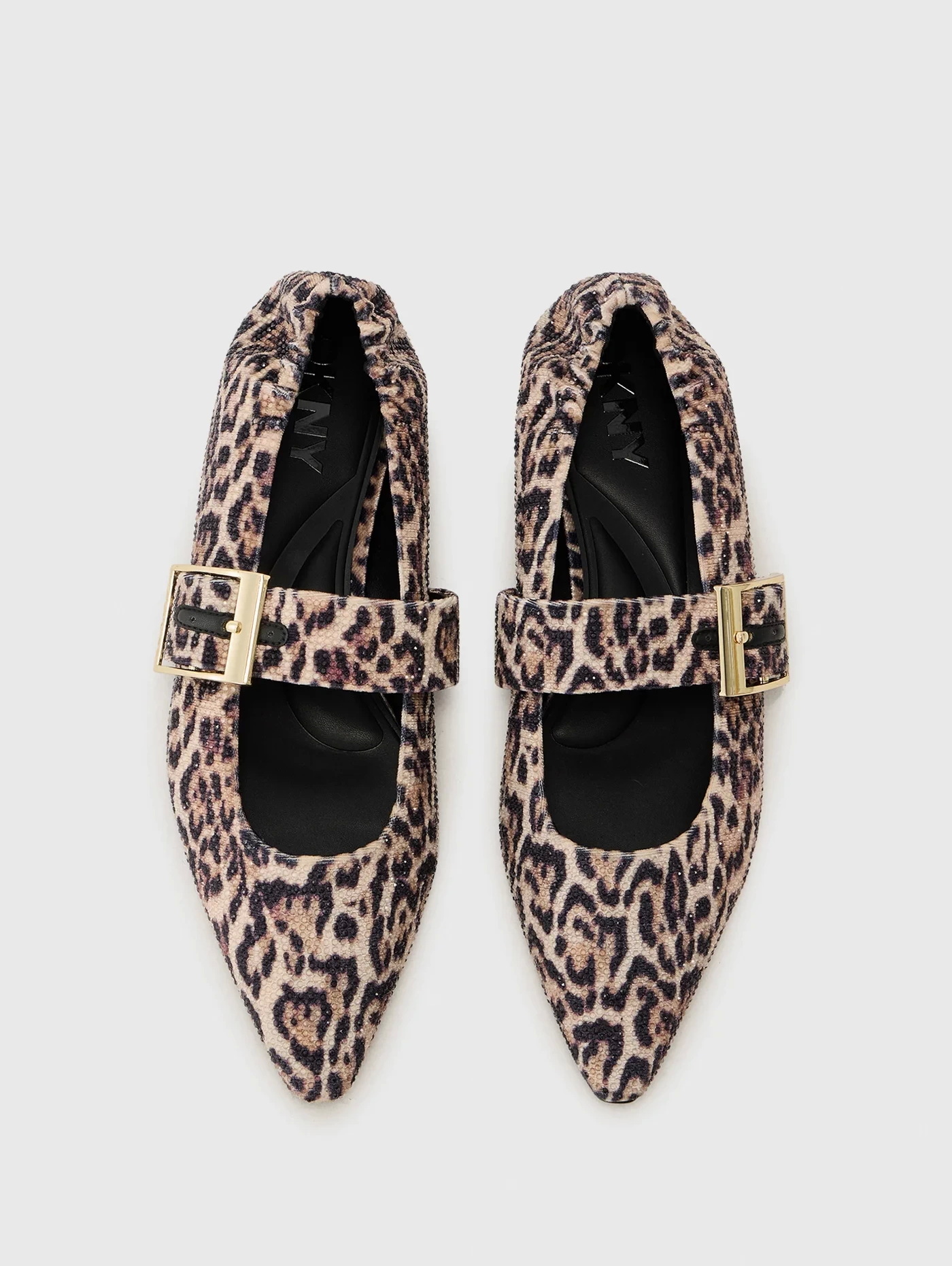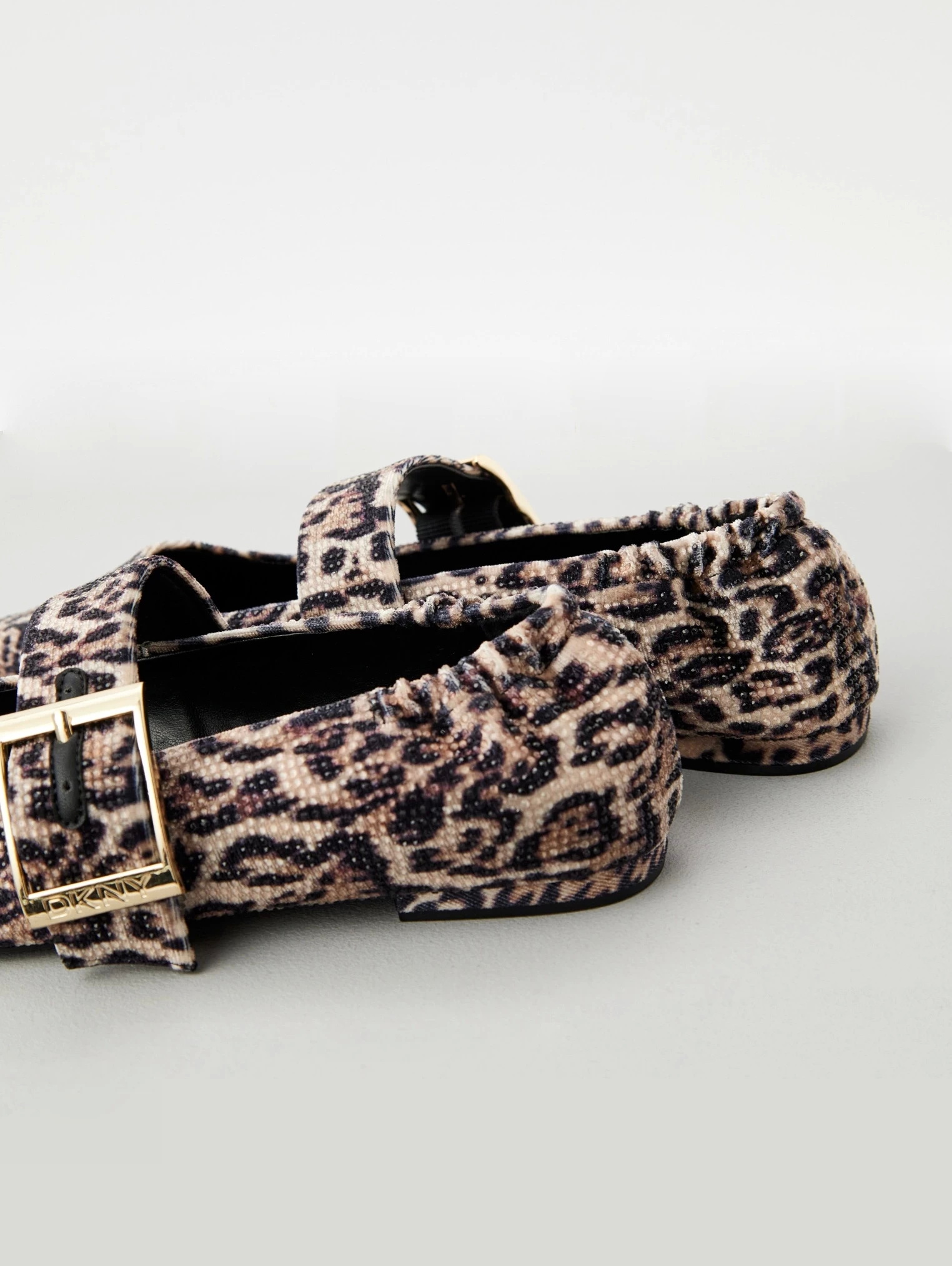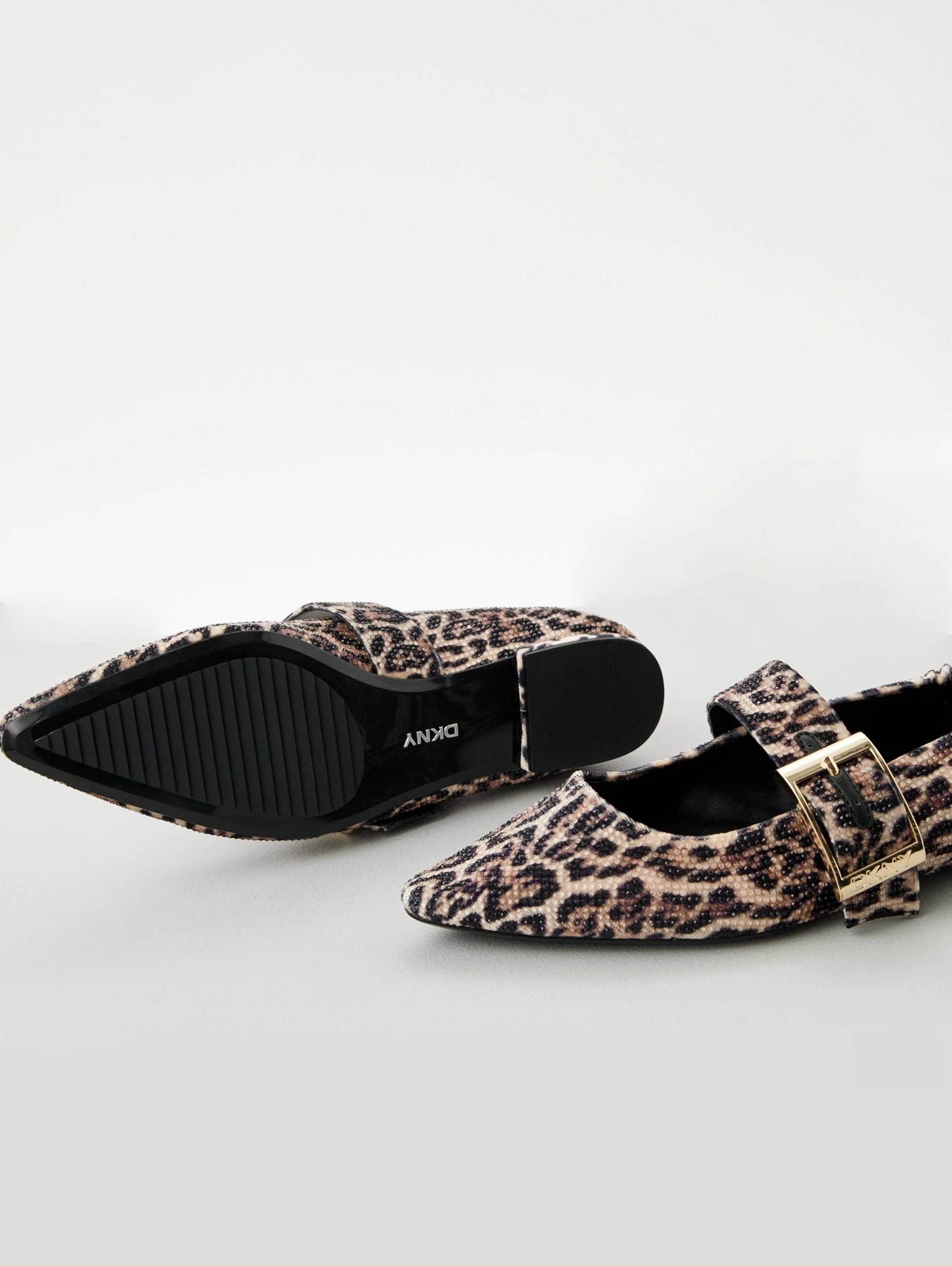 Женские балетки DKNY с леопардовым принтом, декорированы стразами.