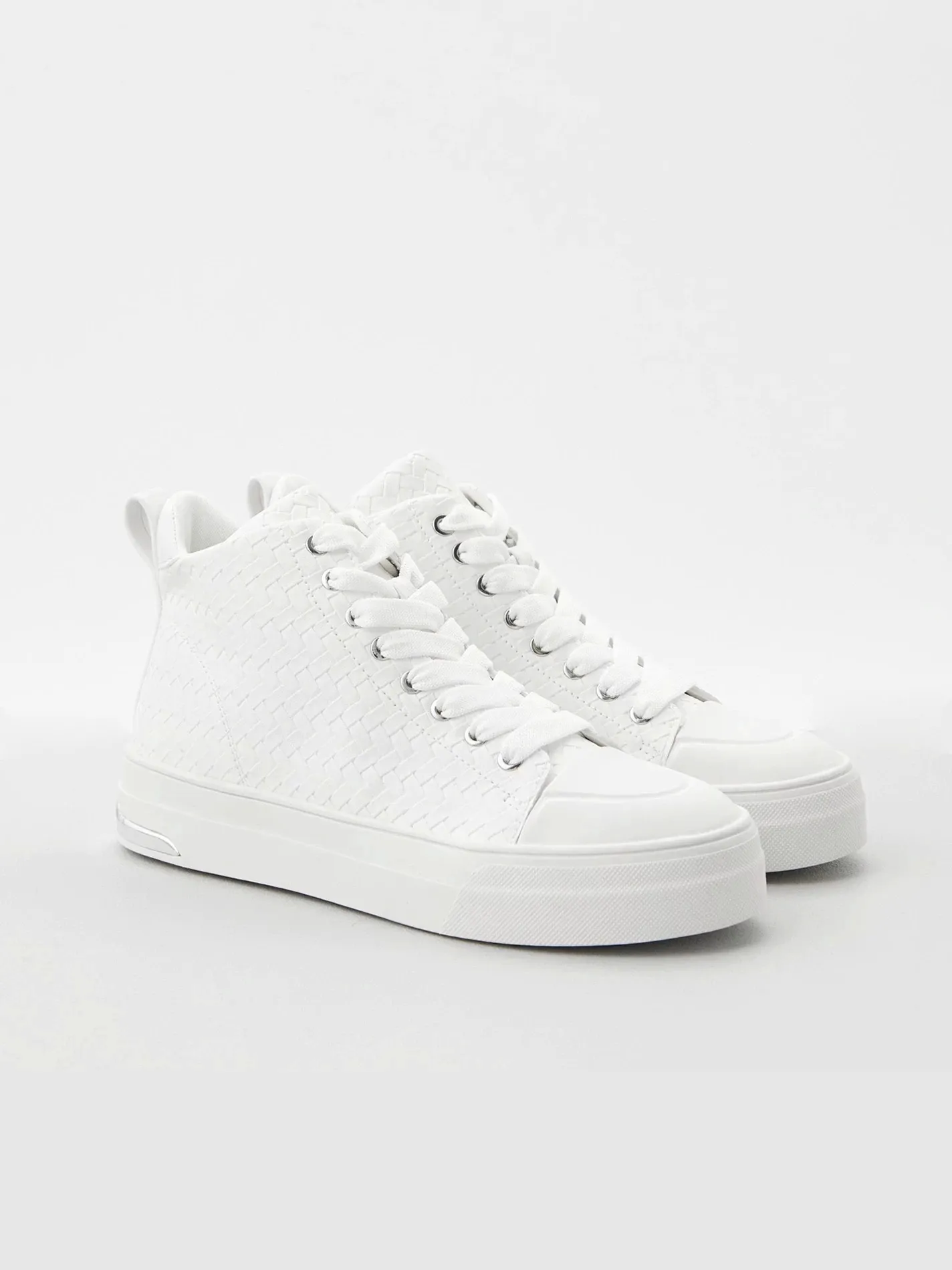 Стильные женские высокие кеды из искусственной кожи с фирменным декором бренда. Удобные и лёгкие, подходят для активных прогулок и комфортного ношения каждый день.