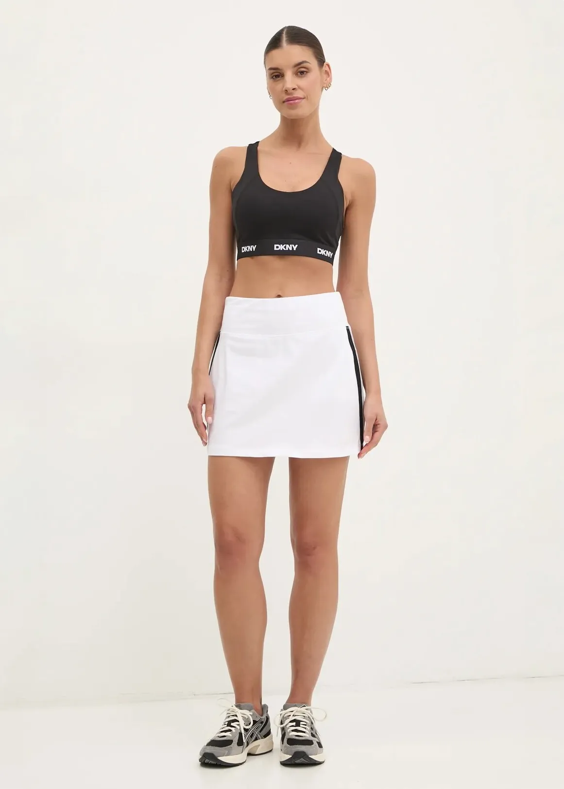 Спортивное бра DKNY выполнено из дышащего материала и дополнено подкладкой для непрозрачности и комфорта. Съёмные чашечки поддерживают и фиксируют грудь. Эластичная резинка и мягкие нерегулируемые бретели обеспечивают надёжную посадку без лишних деталей.